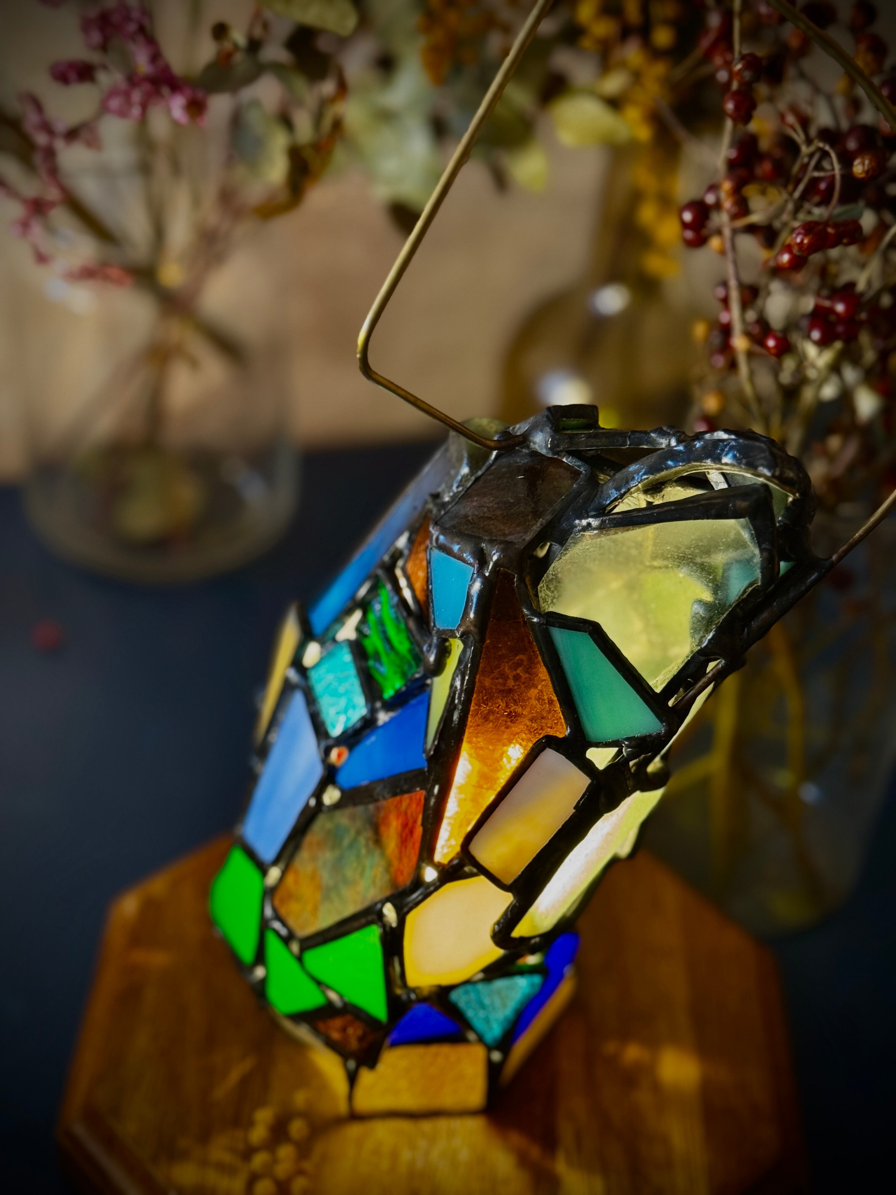 ハンダ部分は時間の経過と共に色が褪せてきます。艶出し・錆止めも含め、専用のポリワックス(jujo ステンドグラス仕上げ用ポリワックス)で定期的にメンテナンスをお願いいたします。