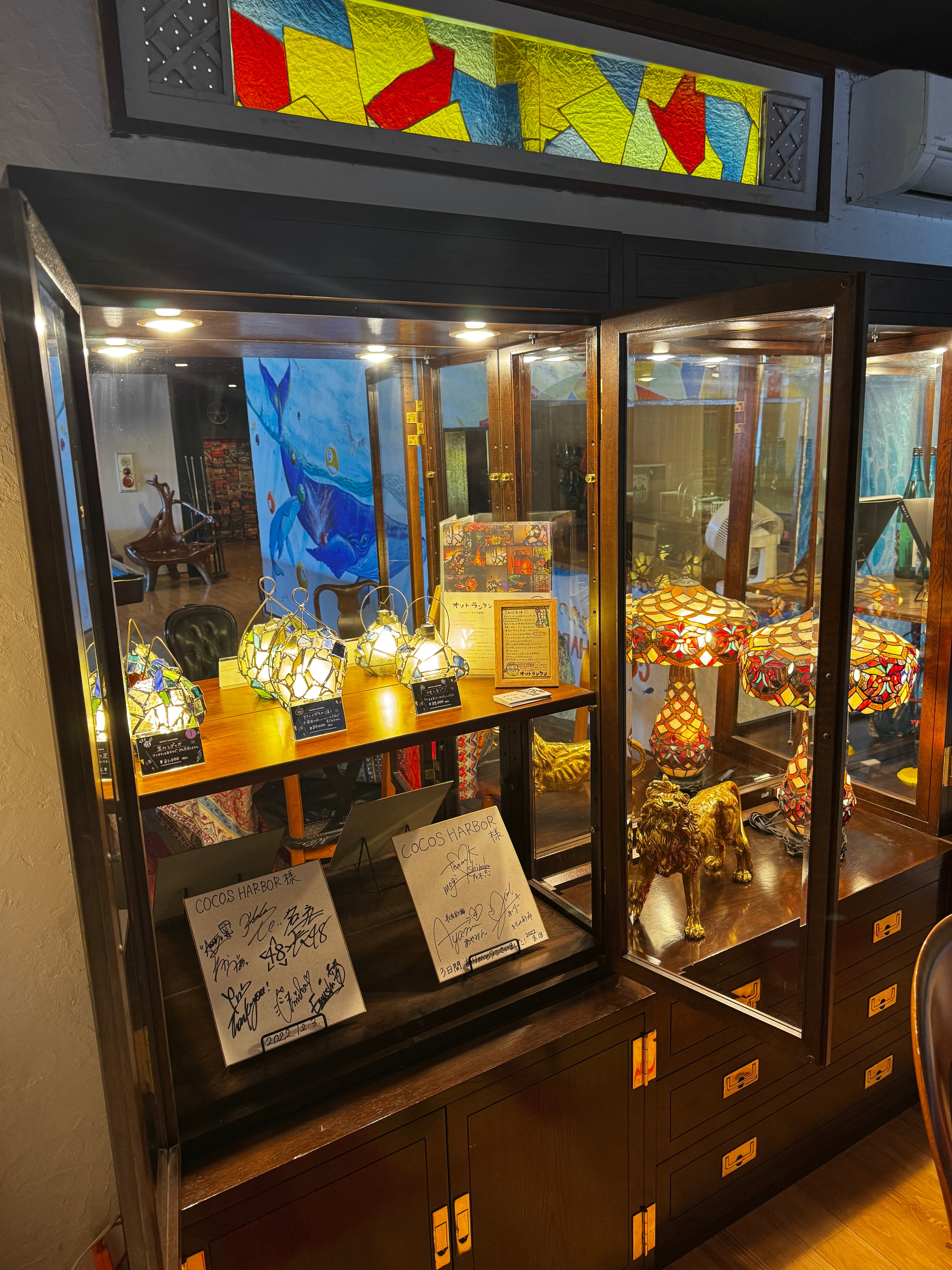 ハンダ部分は時間の経過と共に色が褪せてきます。艶出し・錆止めも含め、専用のポリワックス(jujo ステンドグラス仕上げ用ポリワックス)で定期的にメンテナンスをお願いいたします。
