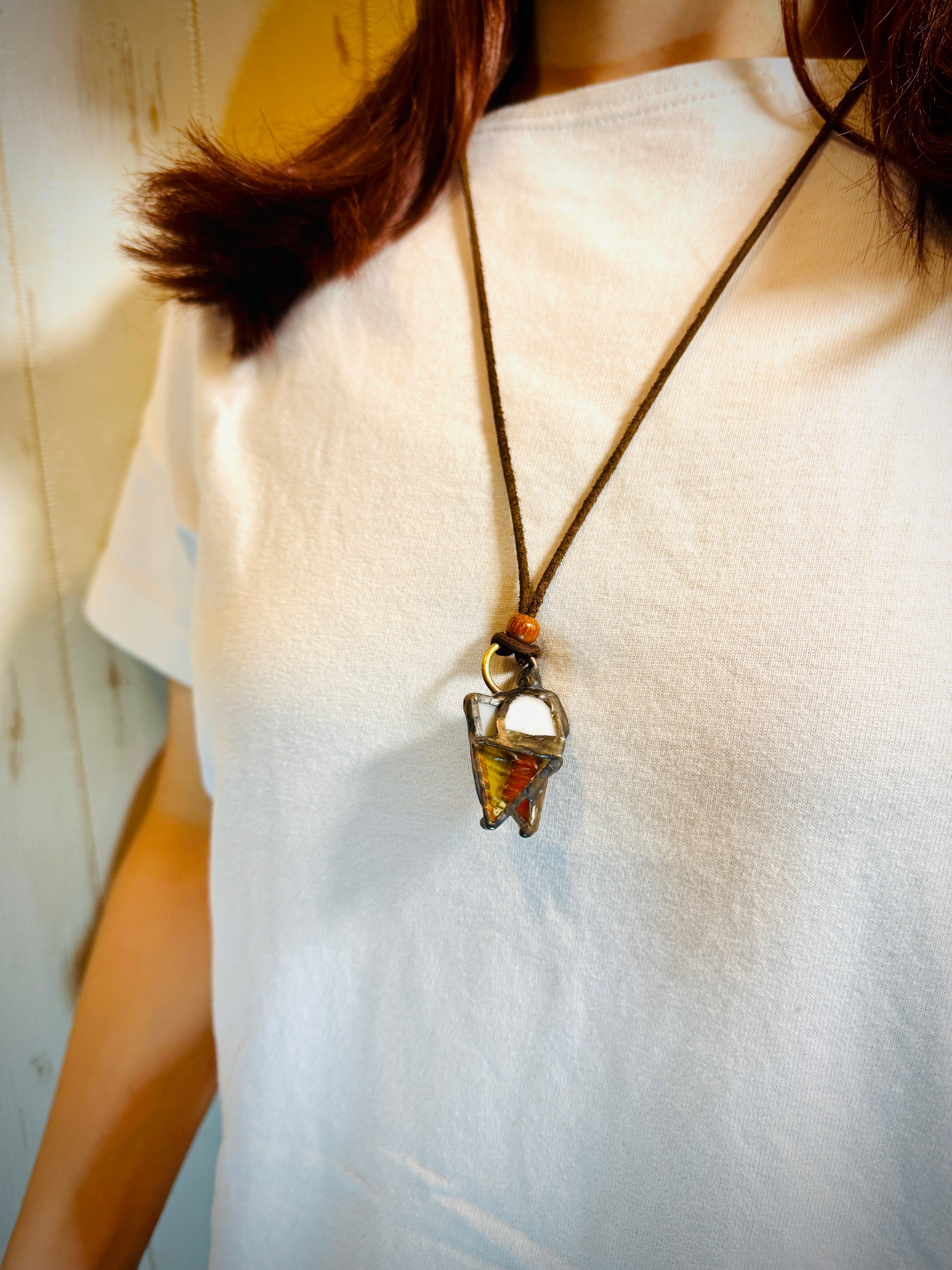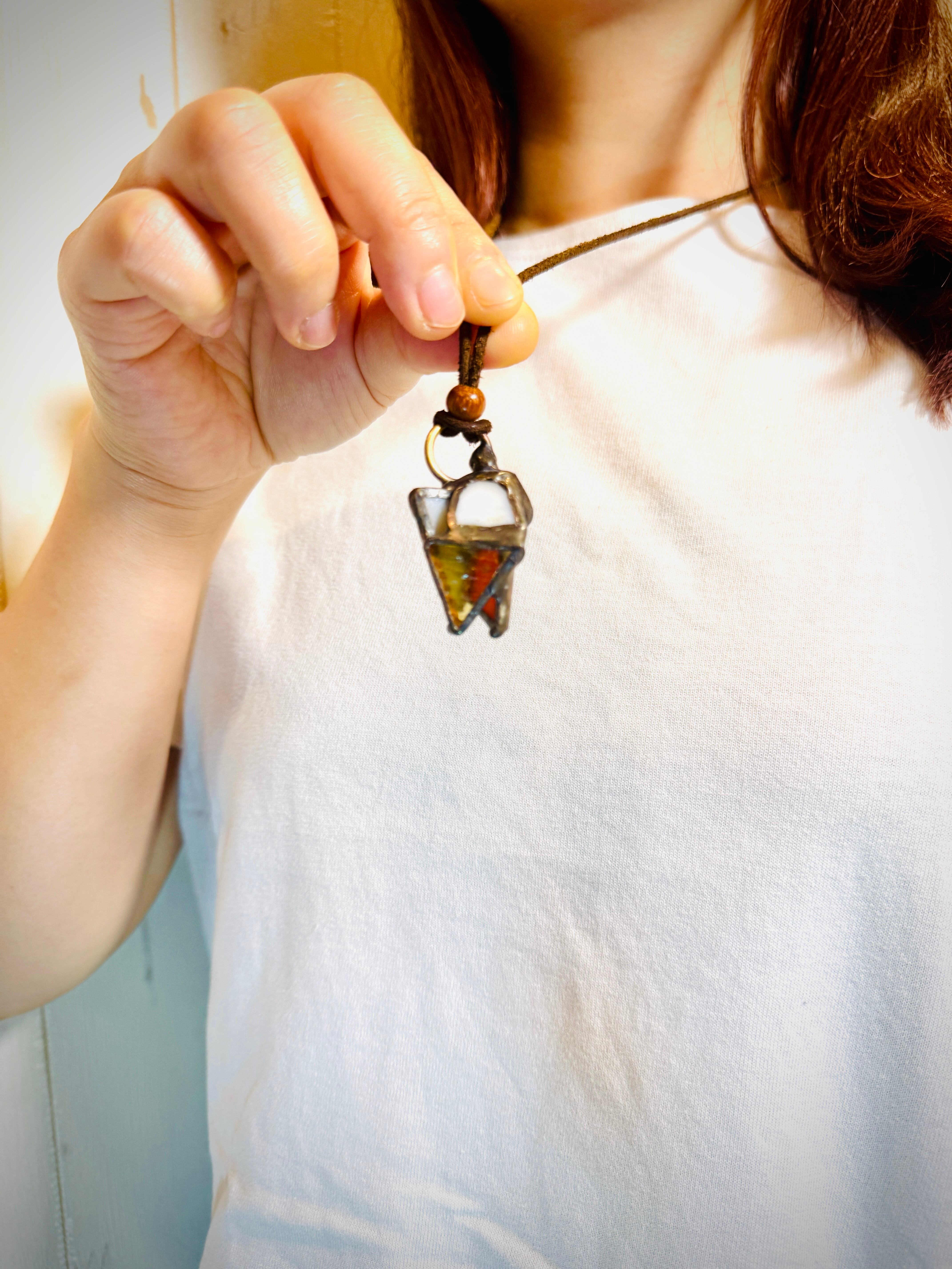 これはステンドグラスのペンダントです。