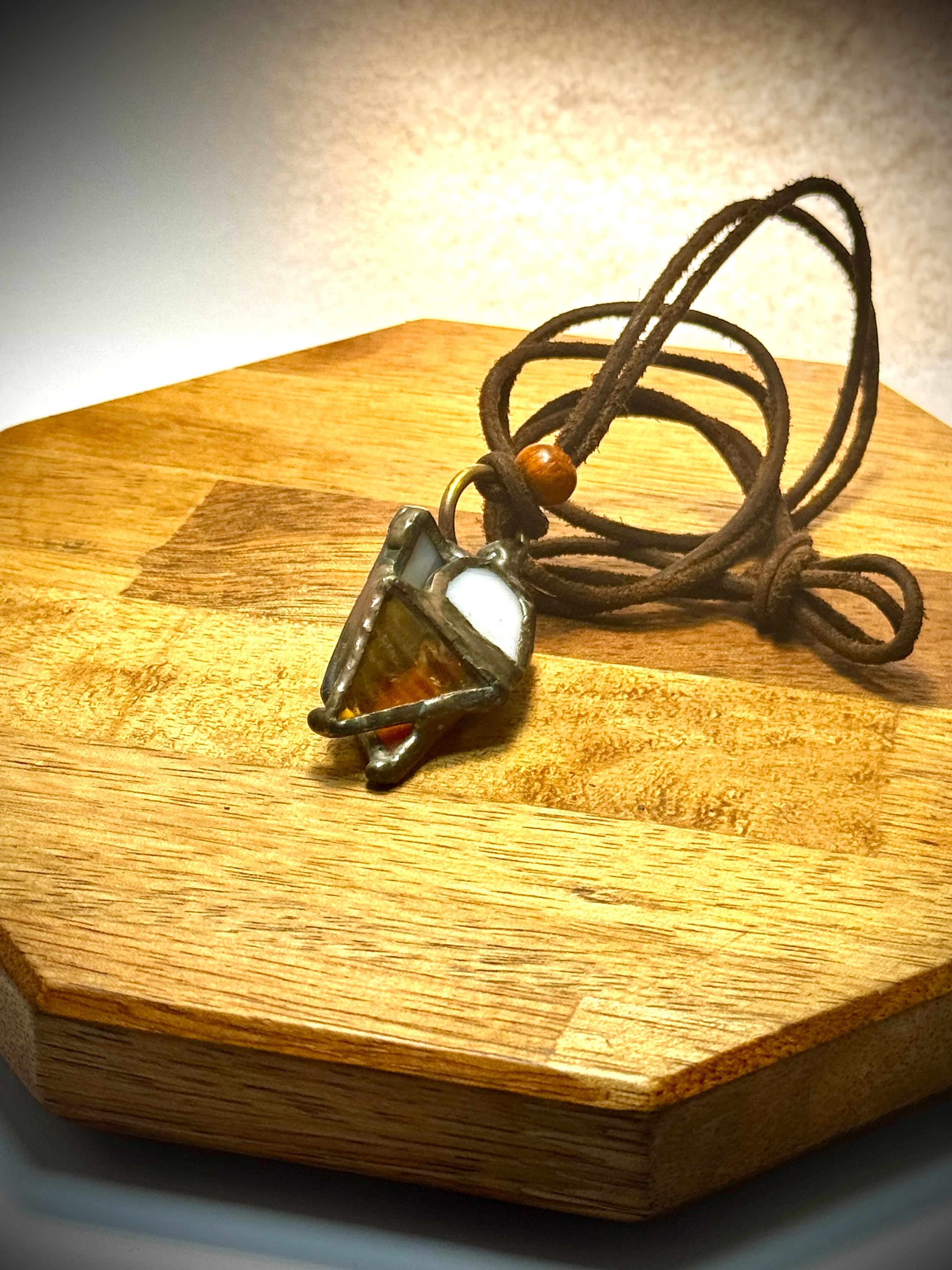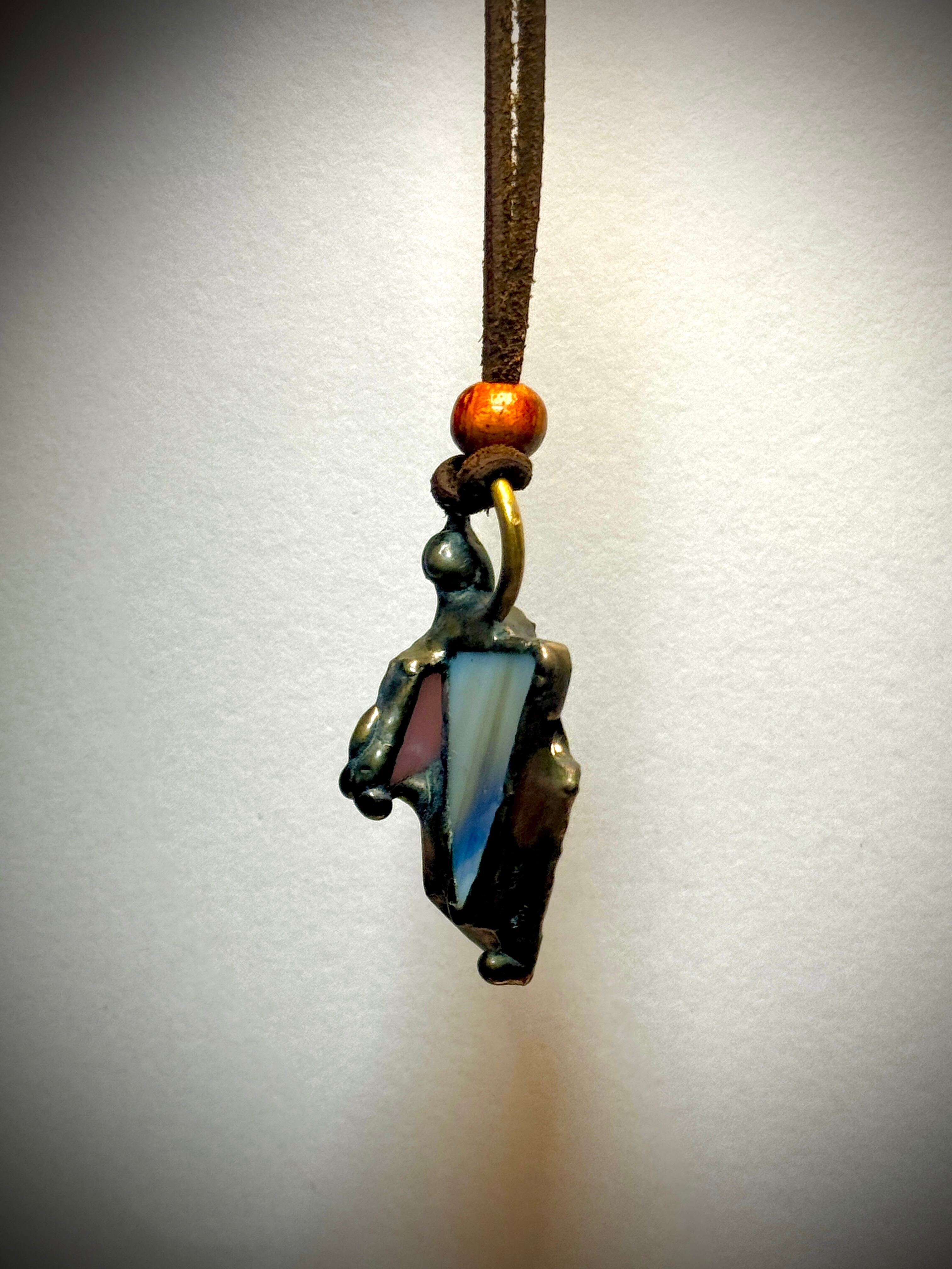 ガラス、ハンダ(すず・鉛)、水牛皮紐(太さ2mm)、