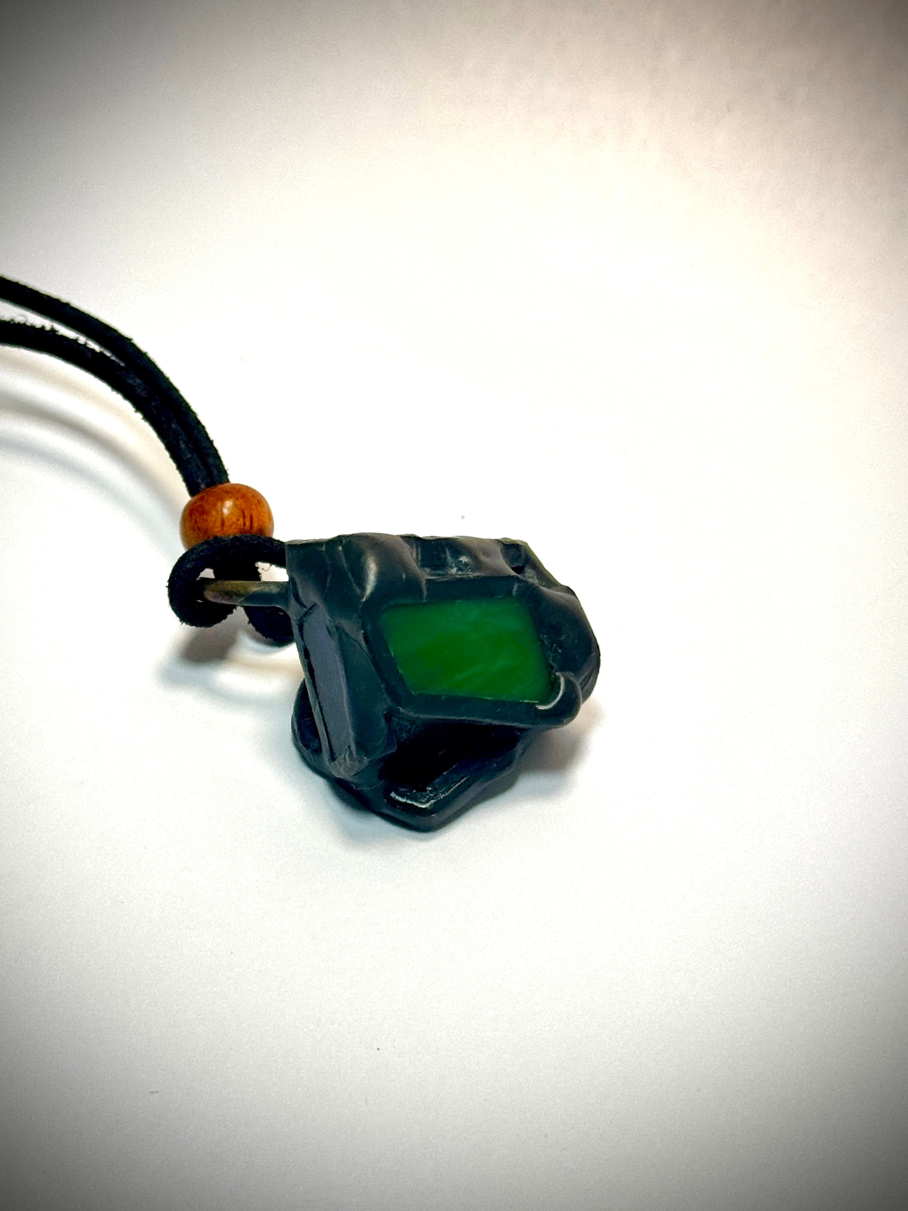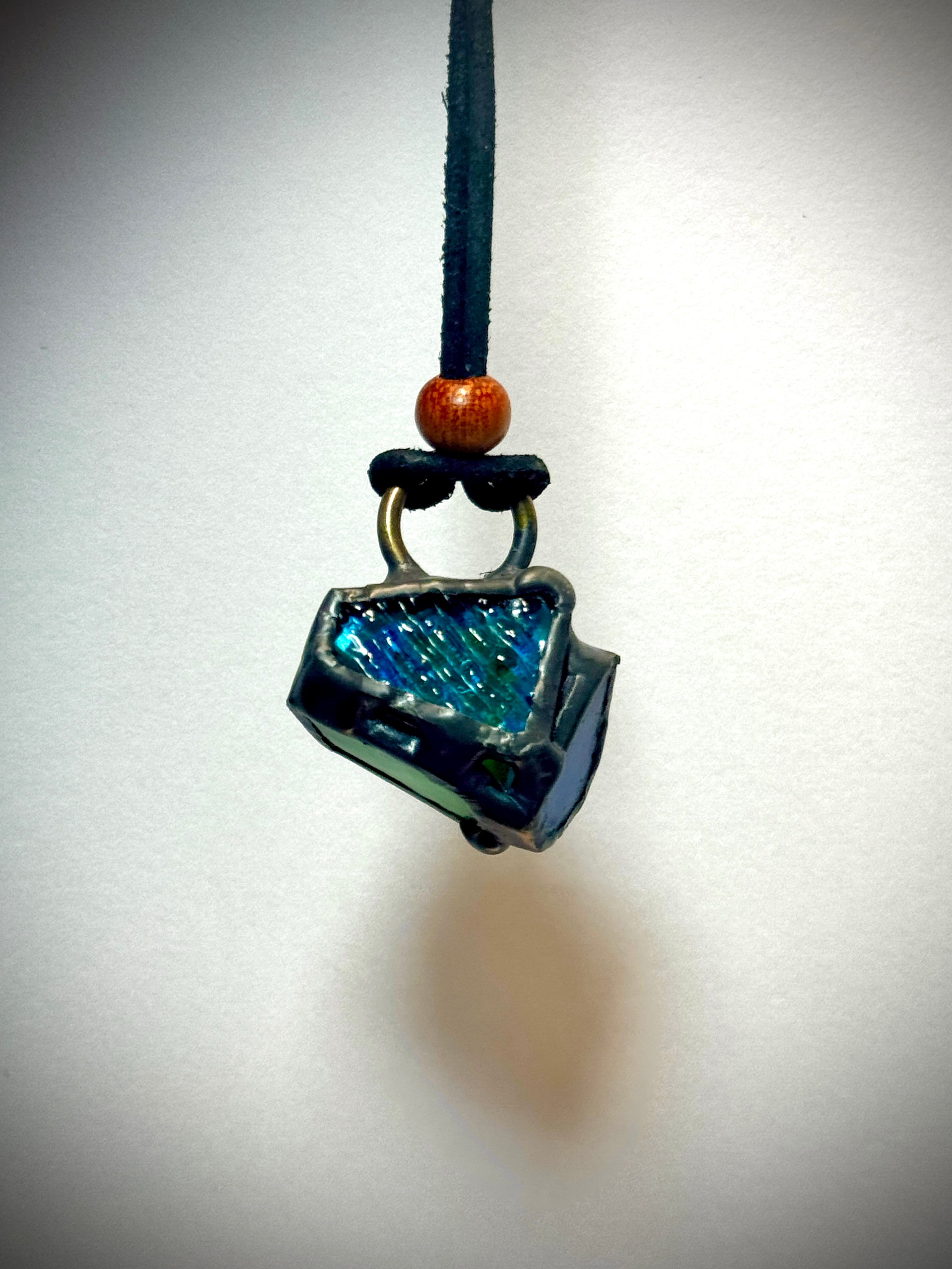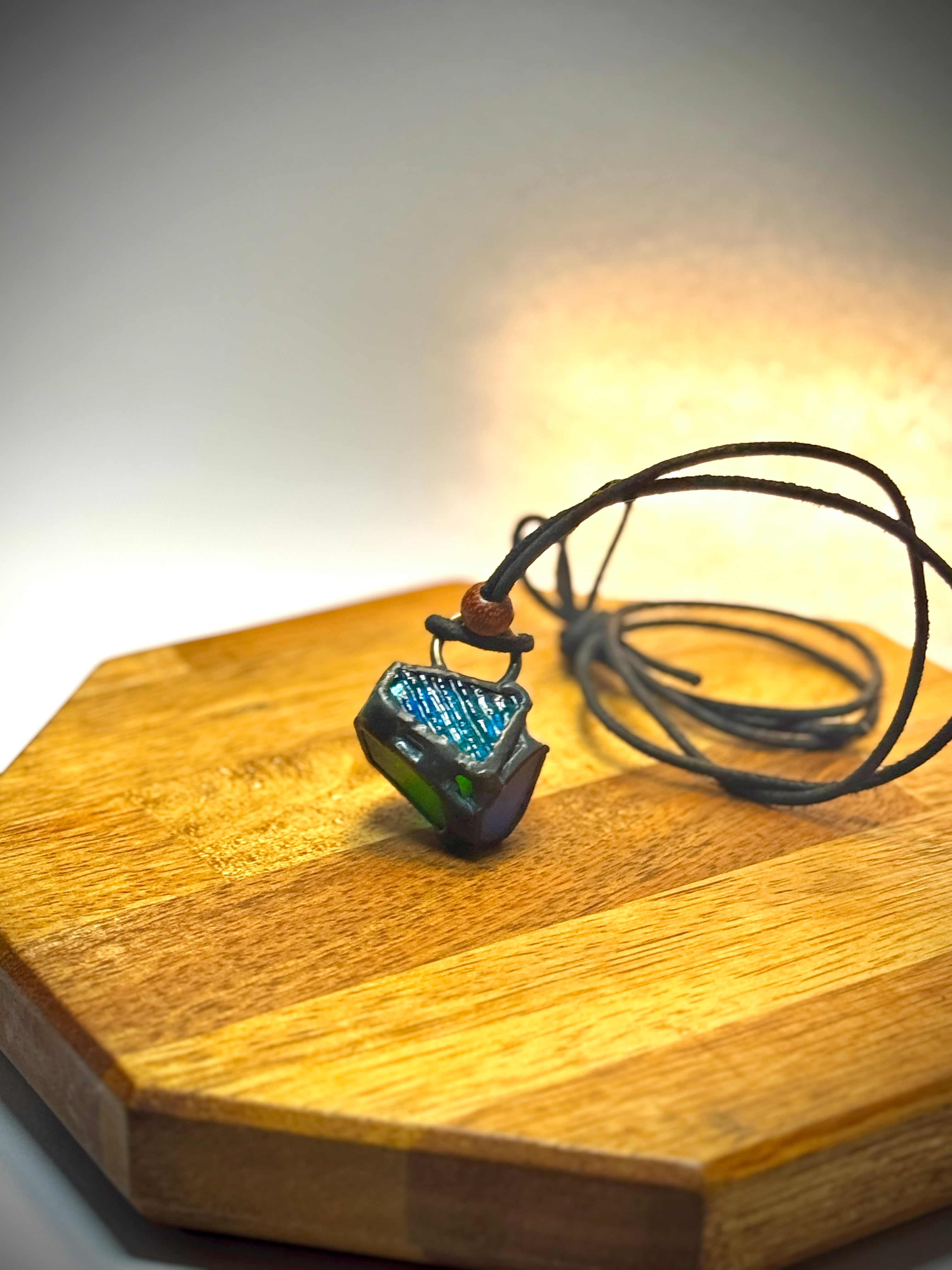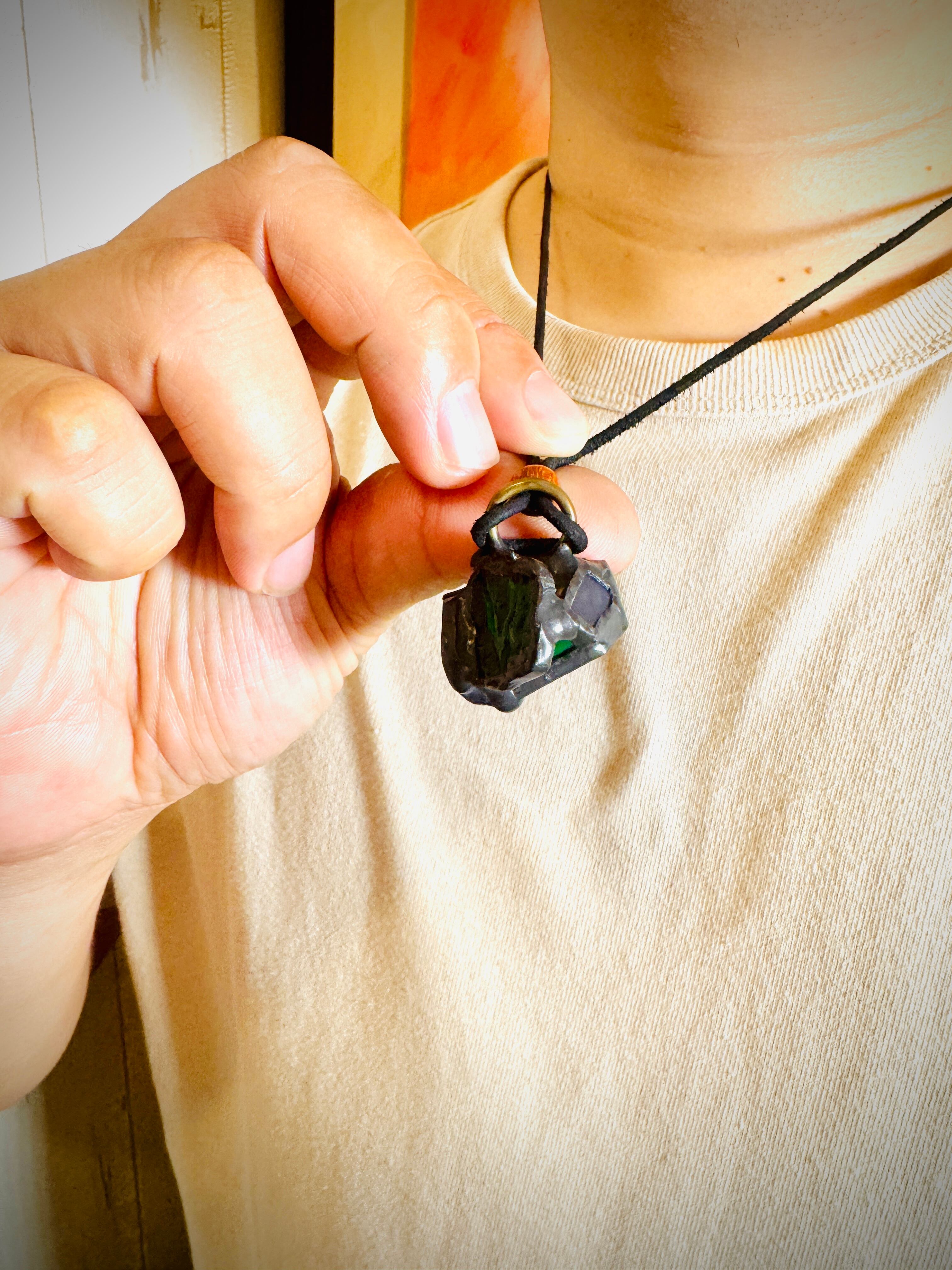 ガラス、ハンダ(すず・鉛)、水牛皮紐(太さ2mm)、