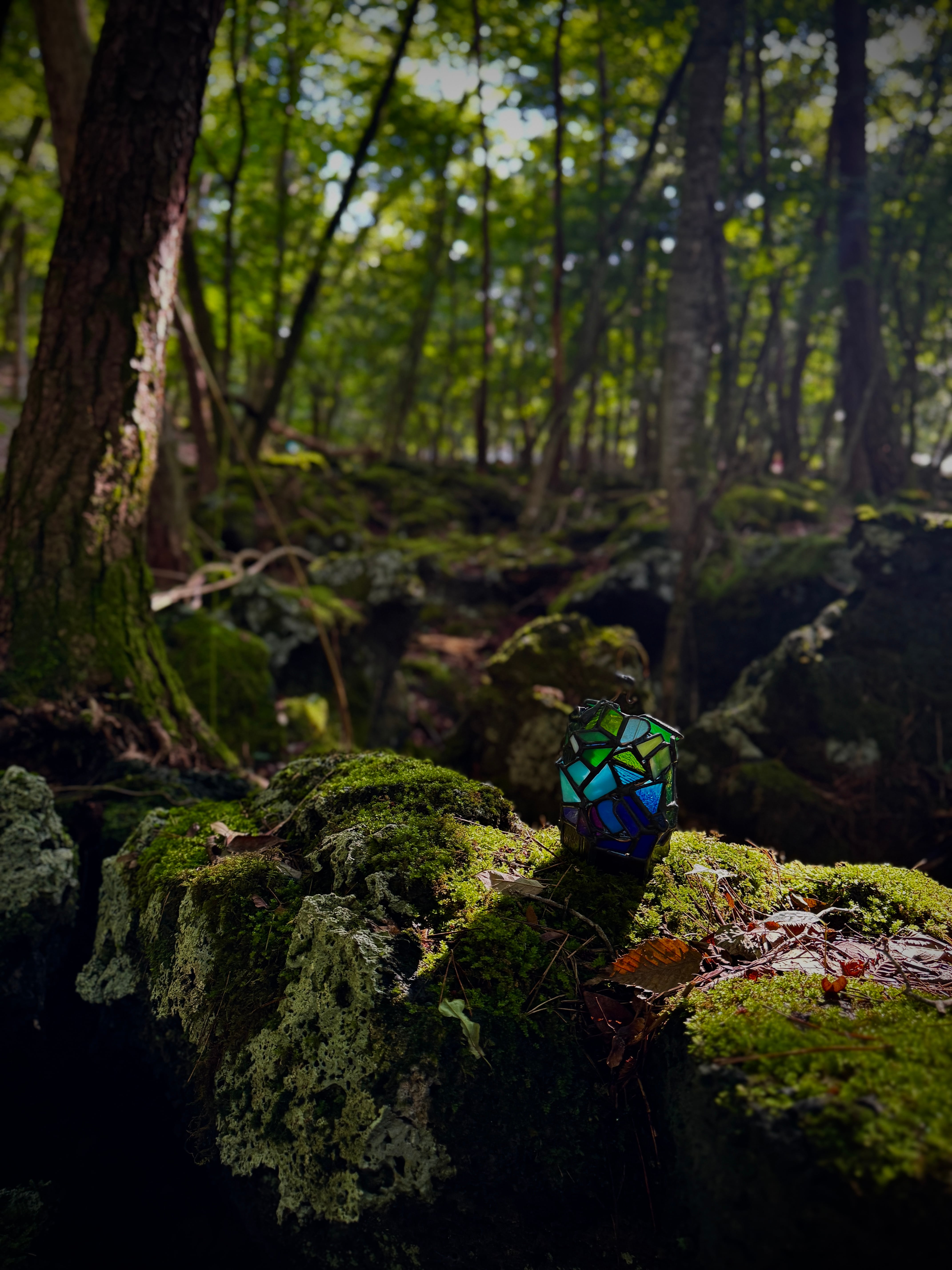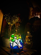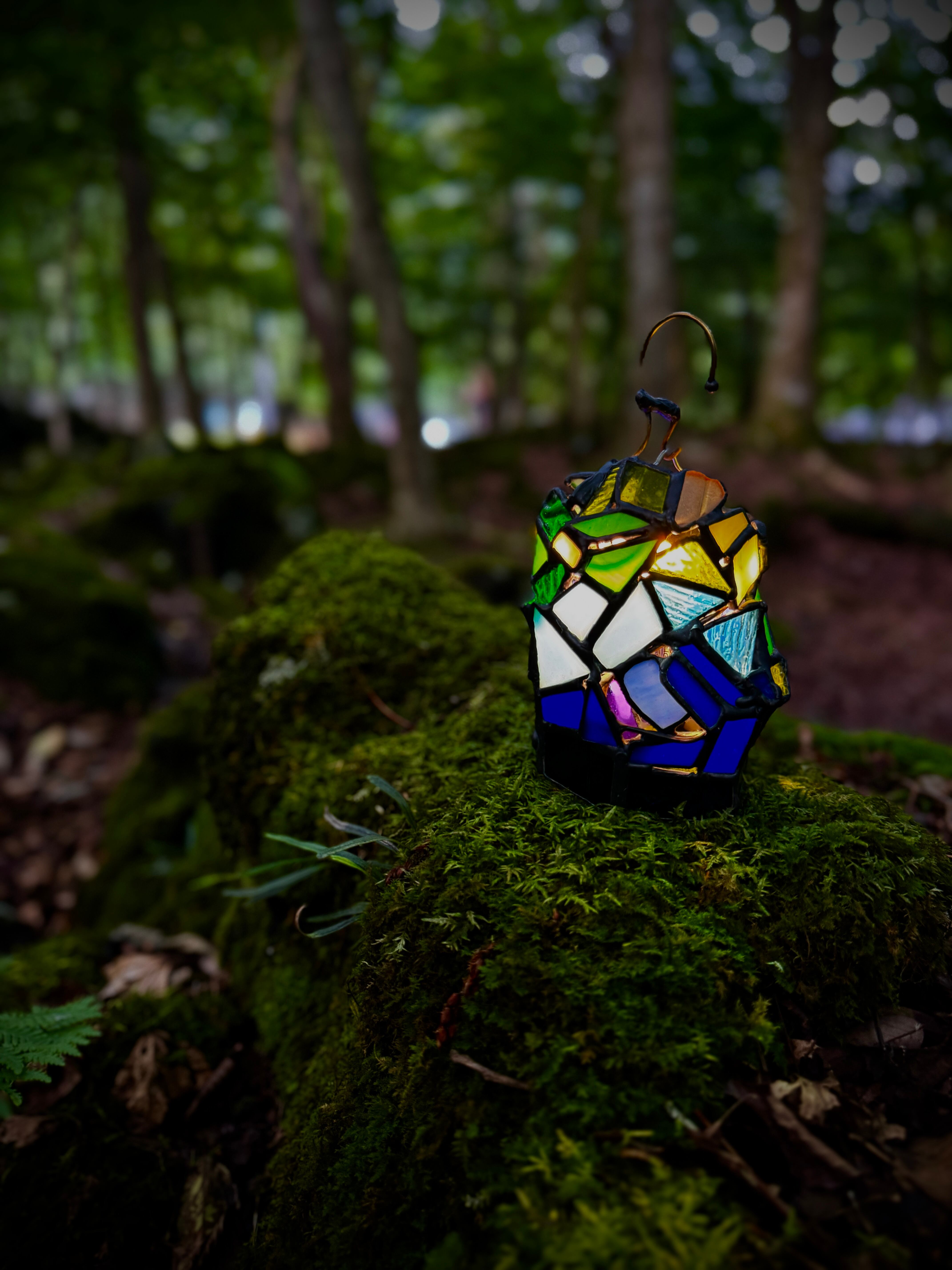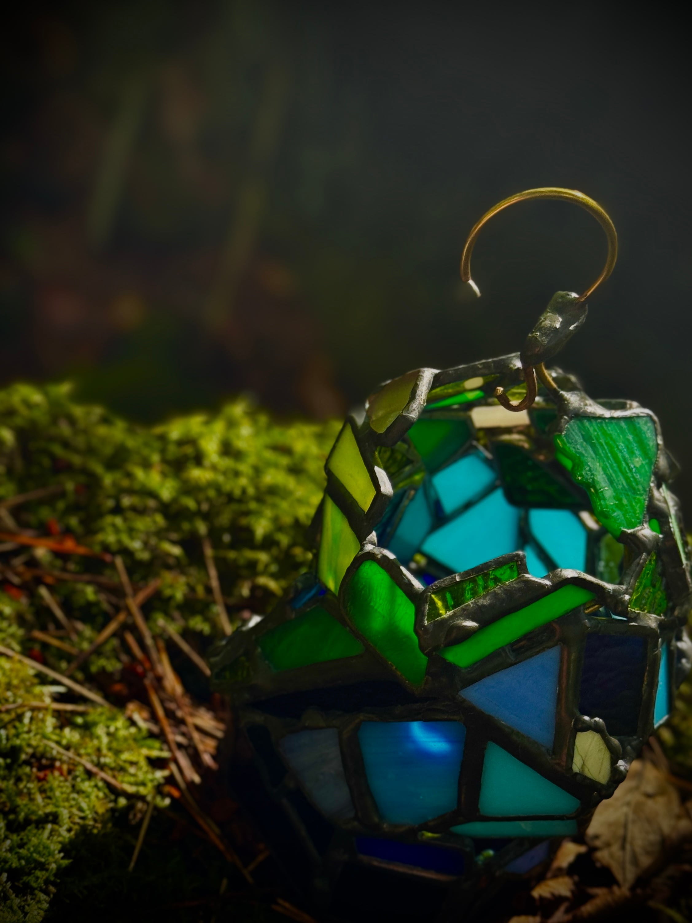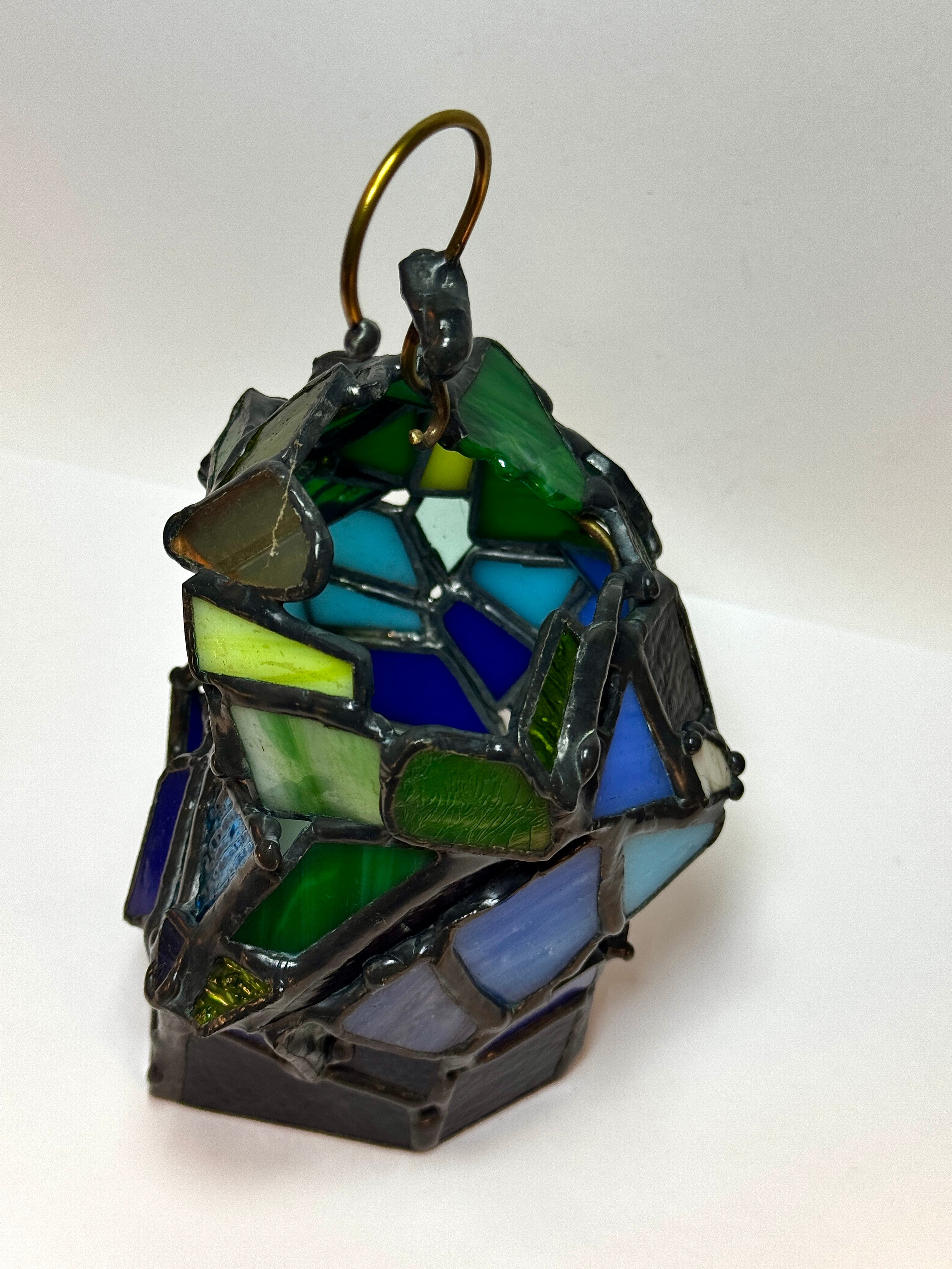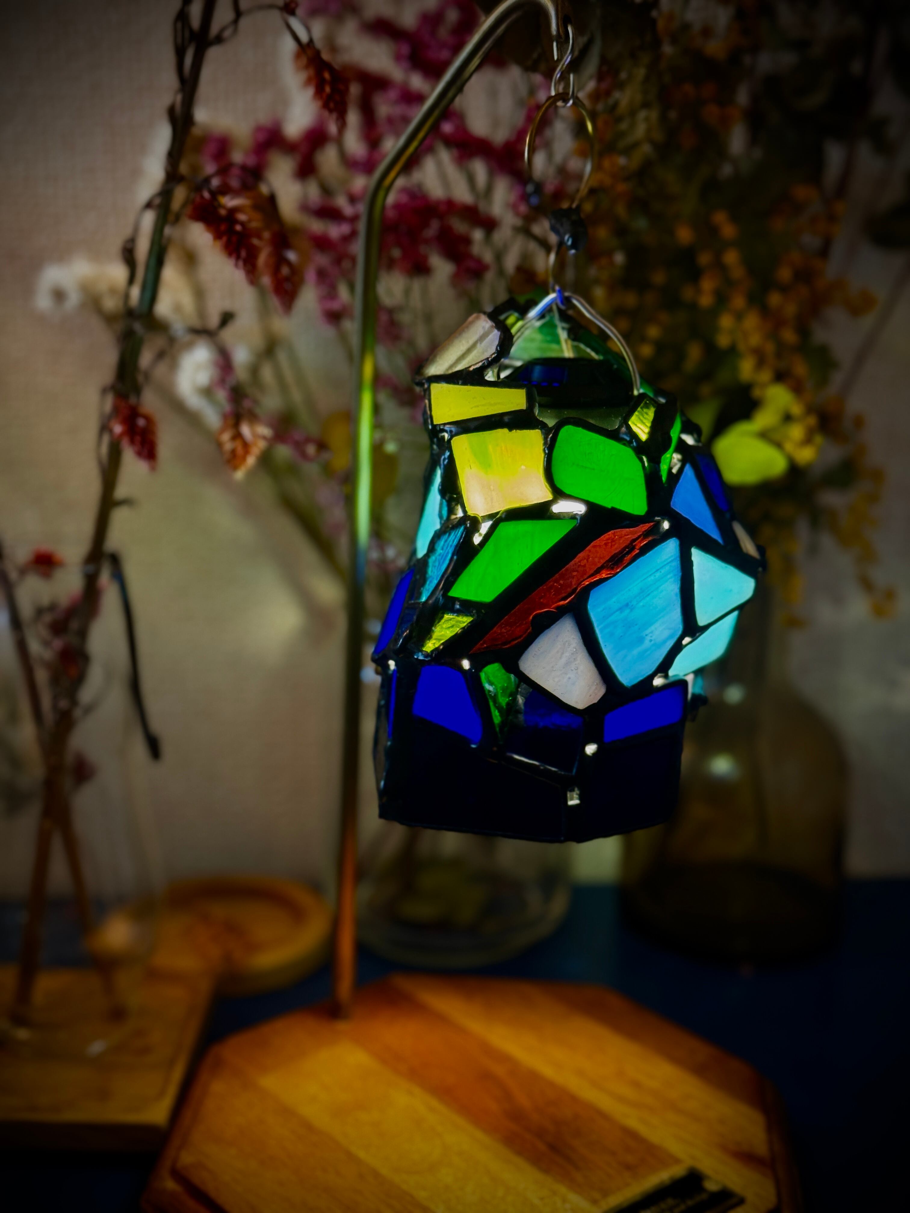 ハンダはガラスの鮮やかな青や緑が際立つように真っ黒にしてあります。