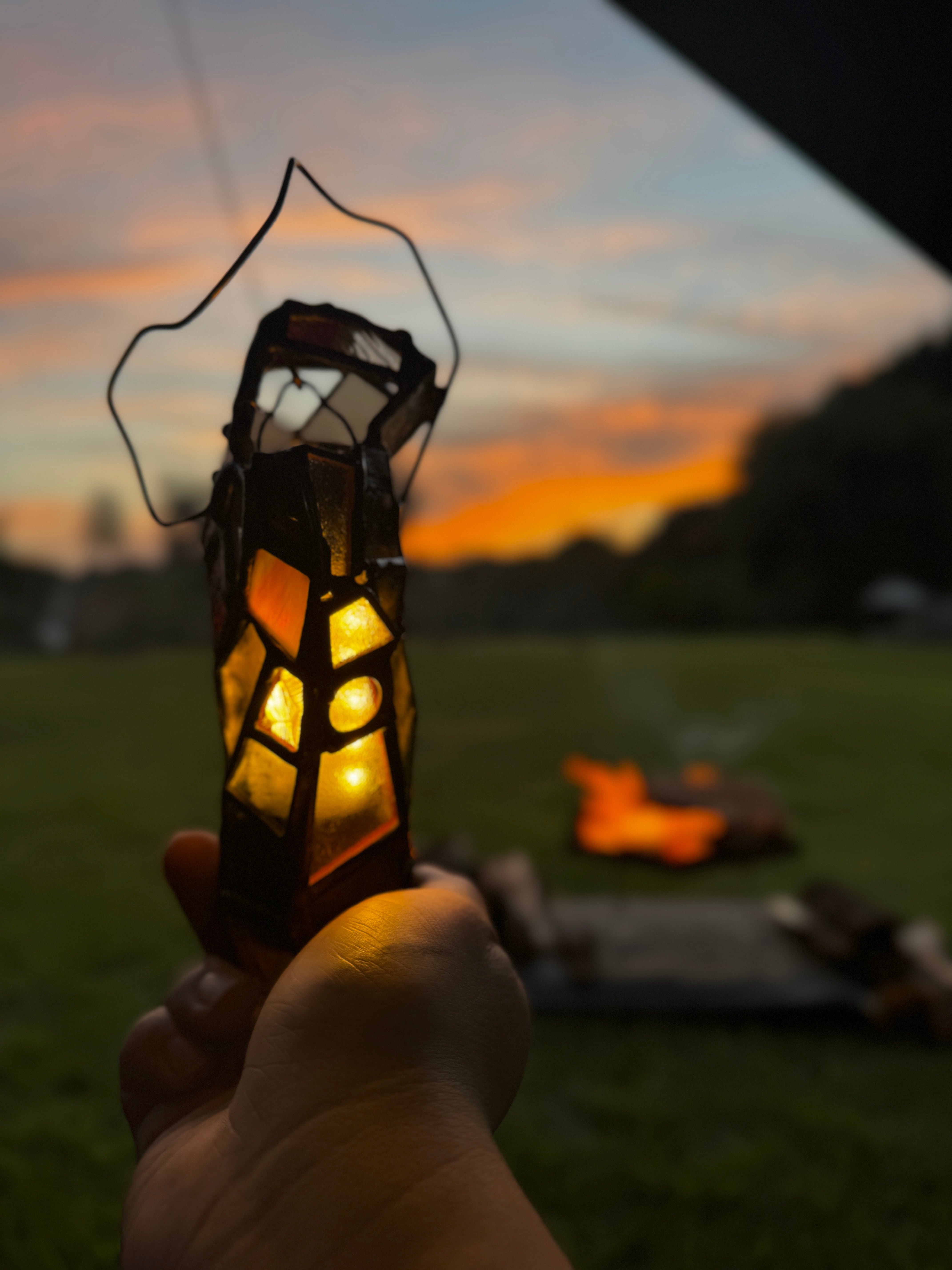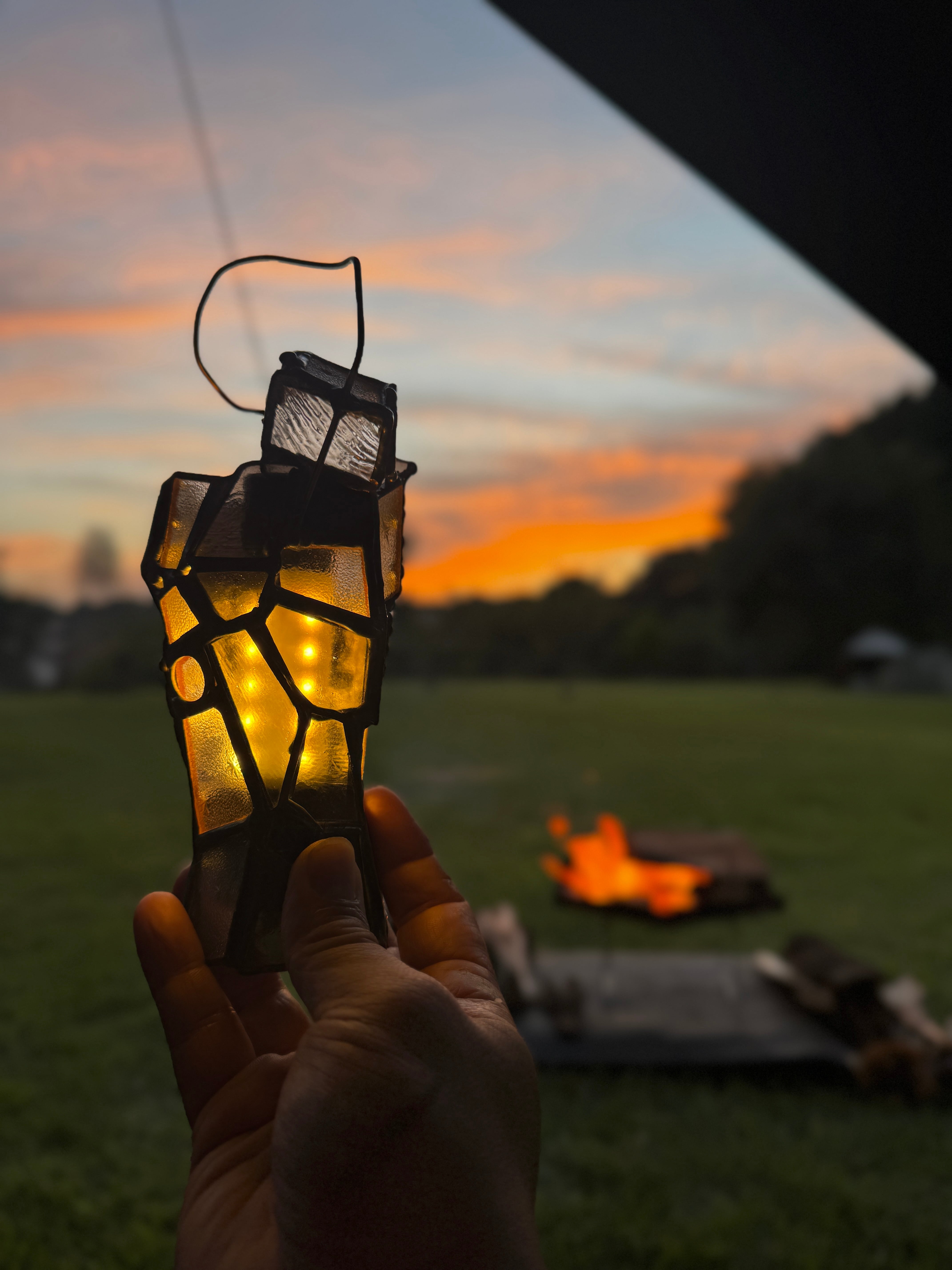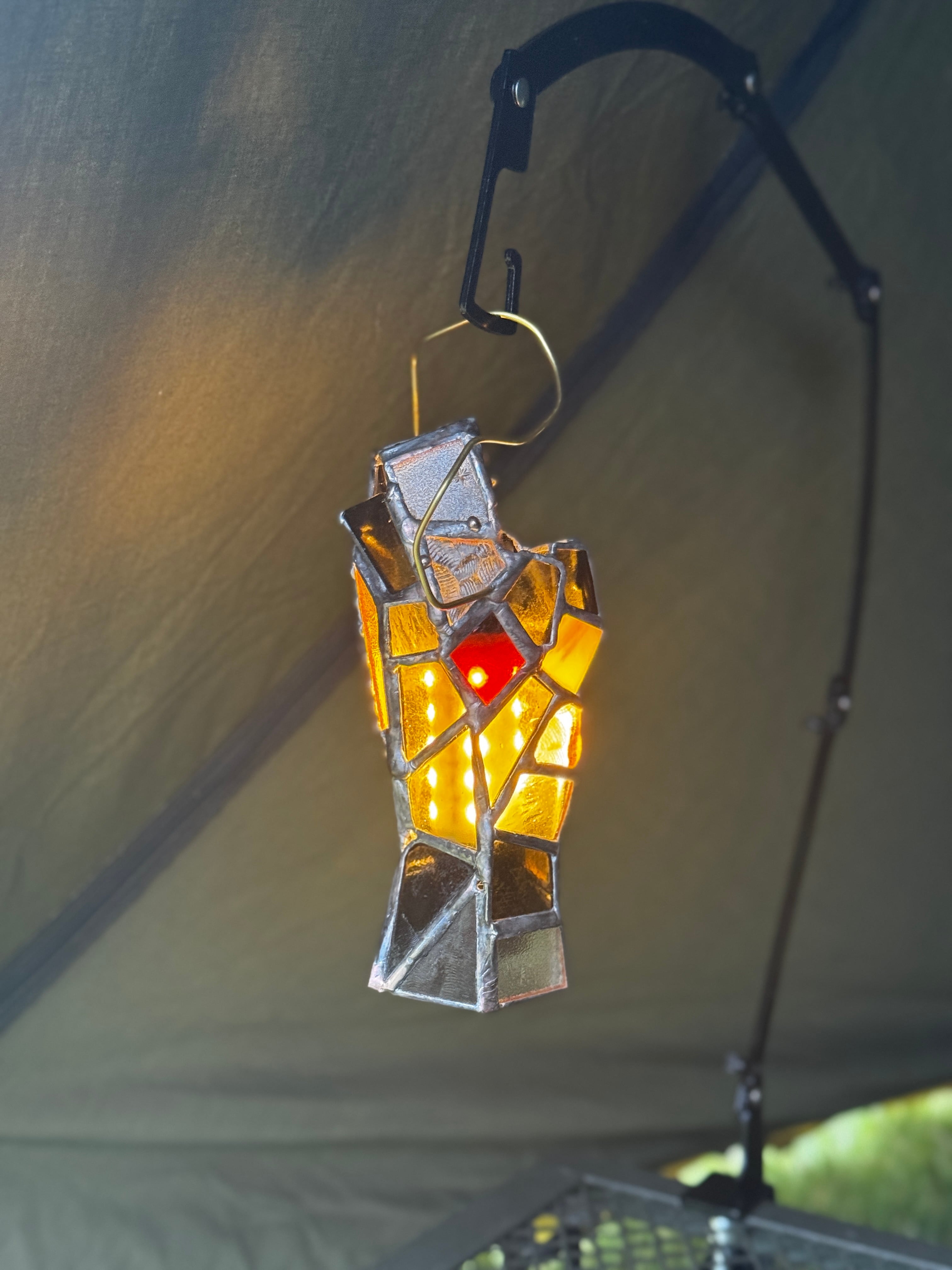 魔界のある一定のクラスの妖怪や悪魔たちがさりげなく持っているトーチという設定のランタンシエードです。富樫先生の幽遊白書に出てくる魔界A級とS級クラスの側近たちが、寝室や出窓の所に置いてることが多いです。無骨な道具やブラック系のギアを使っている方に似合いそうだなと思っています。妖艶マダムとかが持っていても良さそうです。