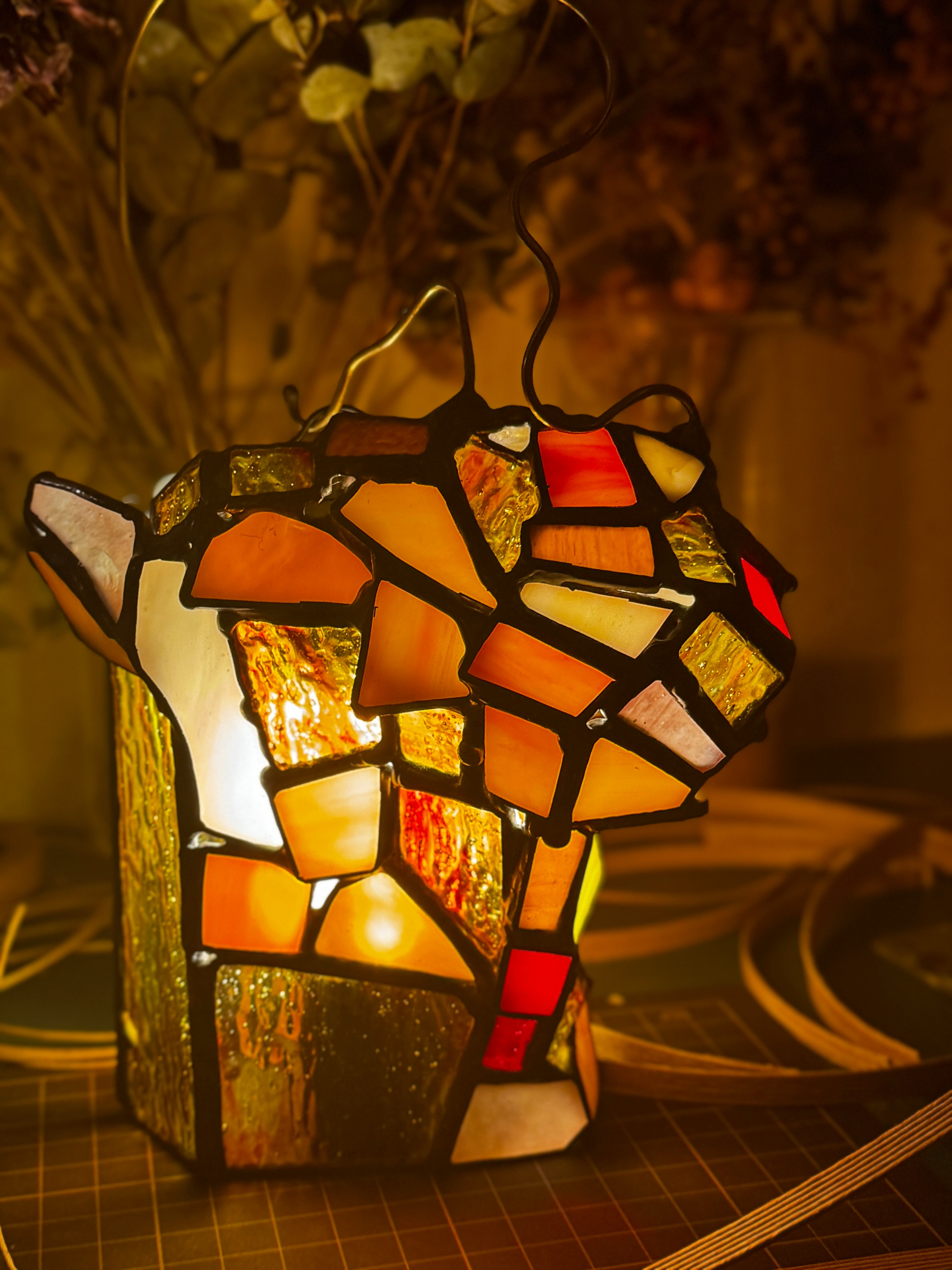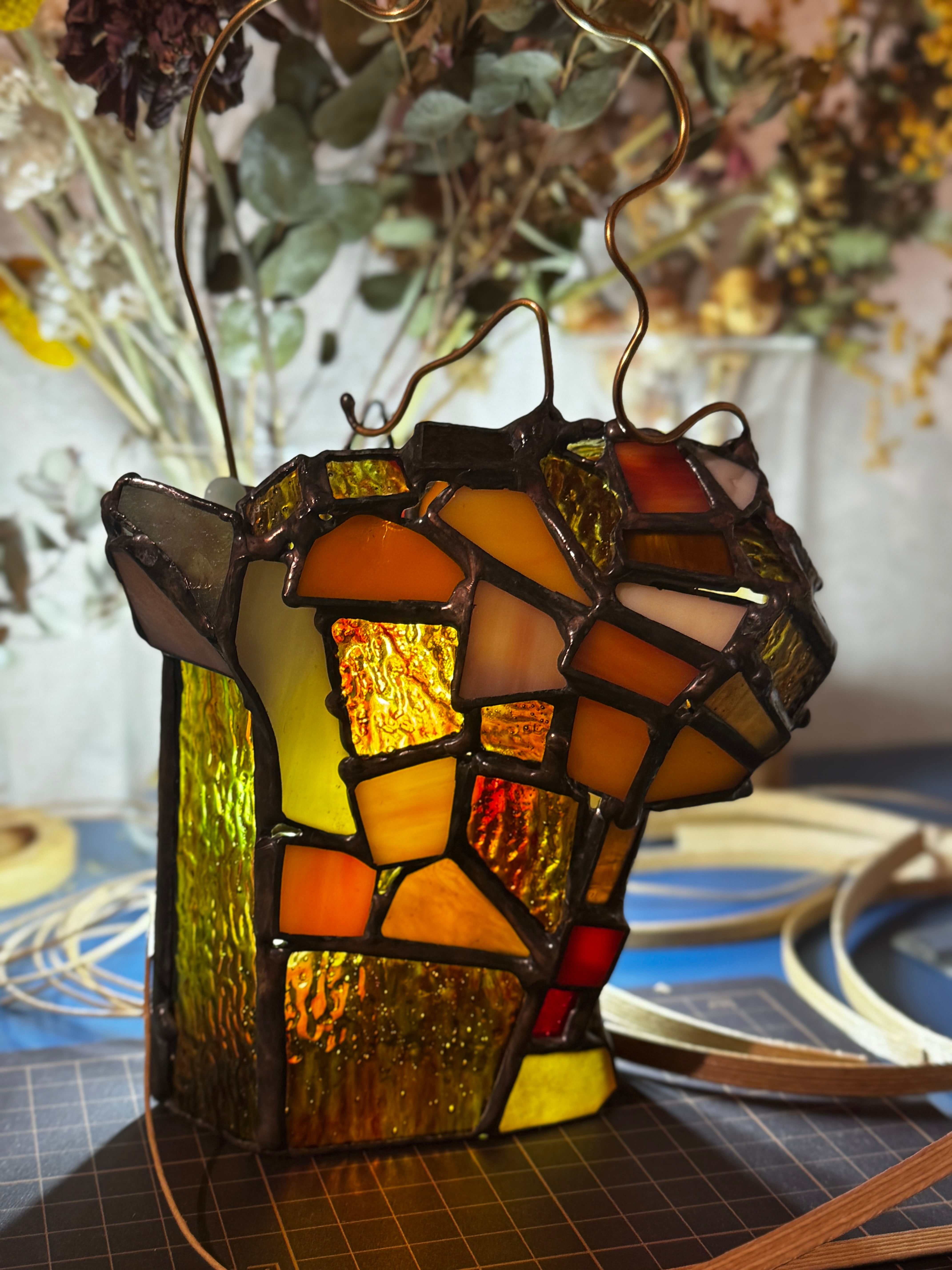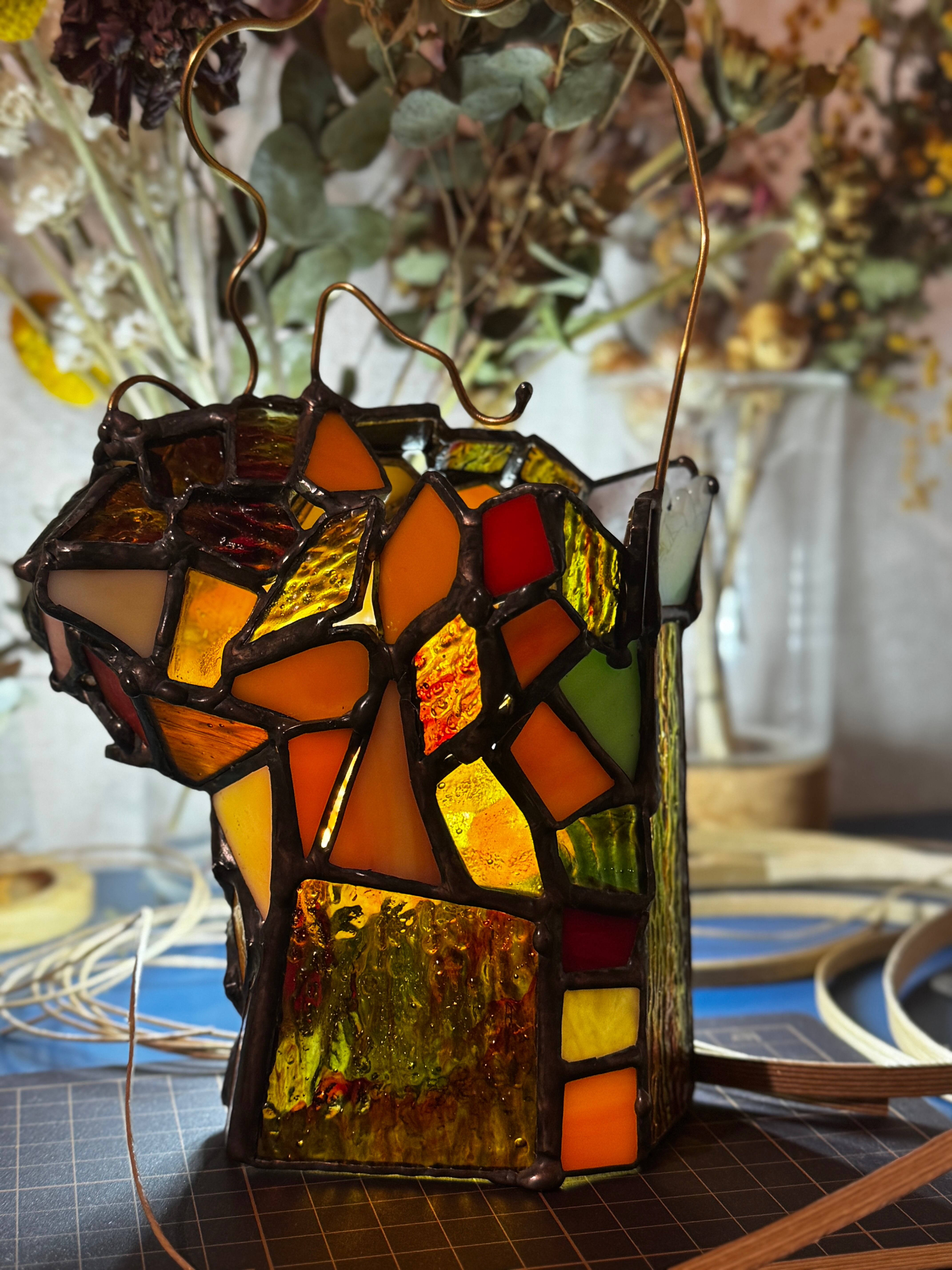 ハンダ部分は時間の経過と共に色が褪せてきます。艶出し・錆止めも含め、専用のポリワックス(jujo ステンドグラス仕上げ用ポリワックス)で定期的にメンテナンスをお願いいたします。