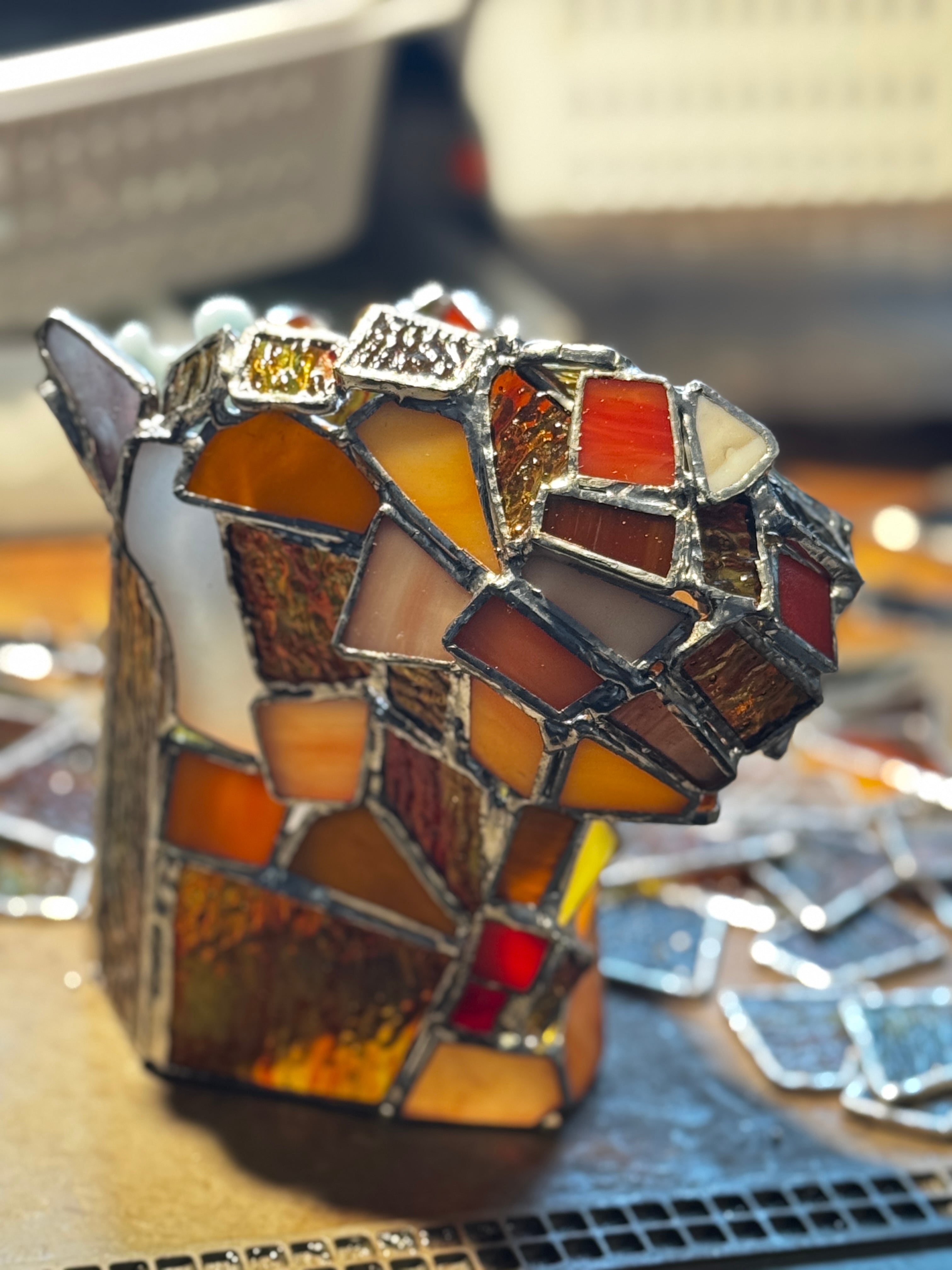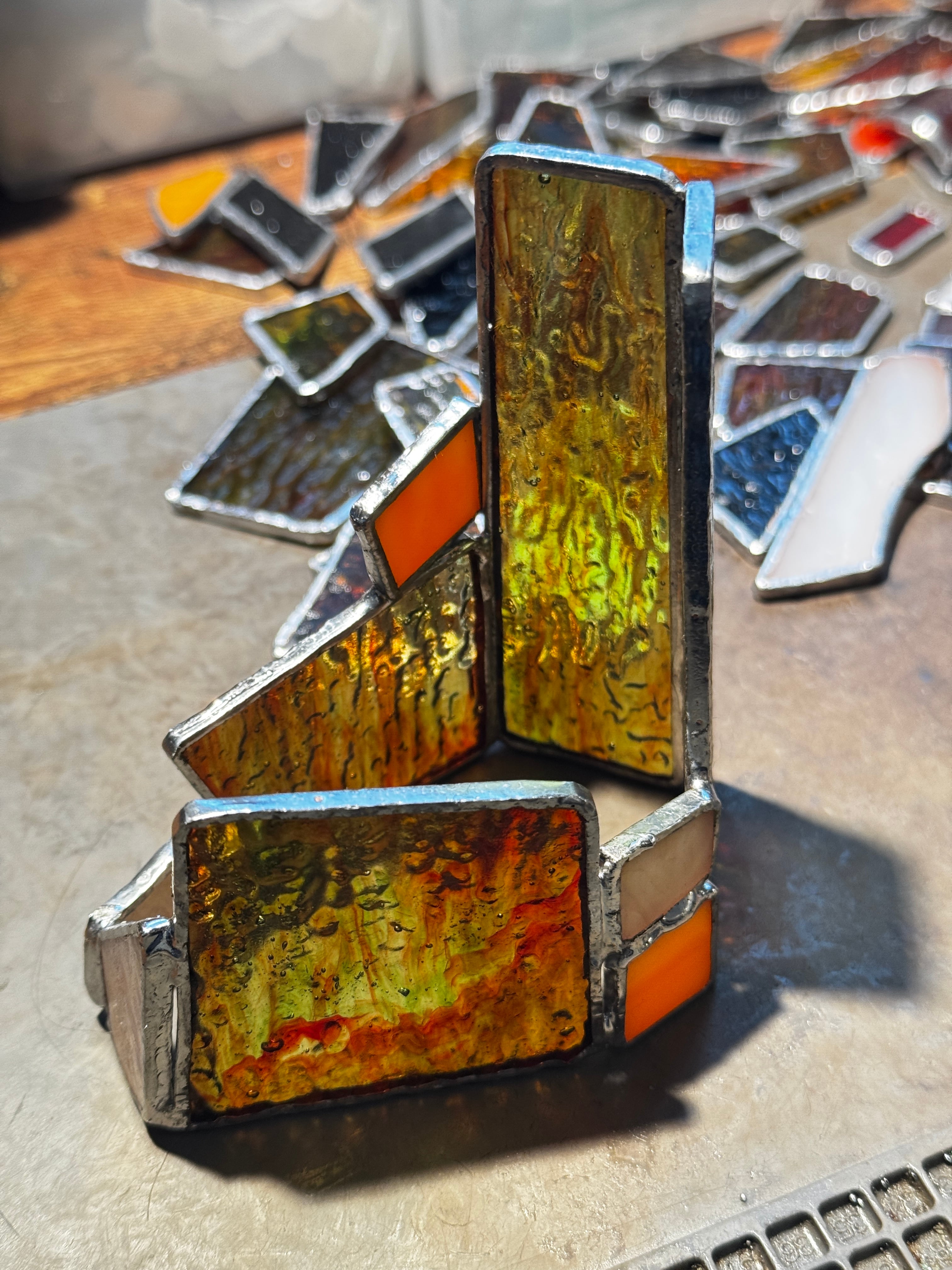 ステンドグラスは、ステンドグラス専用のハンダを使って制作しております。