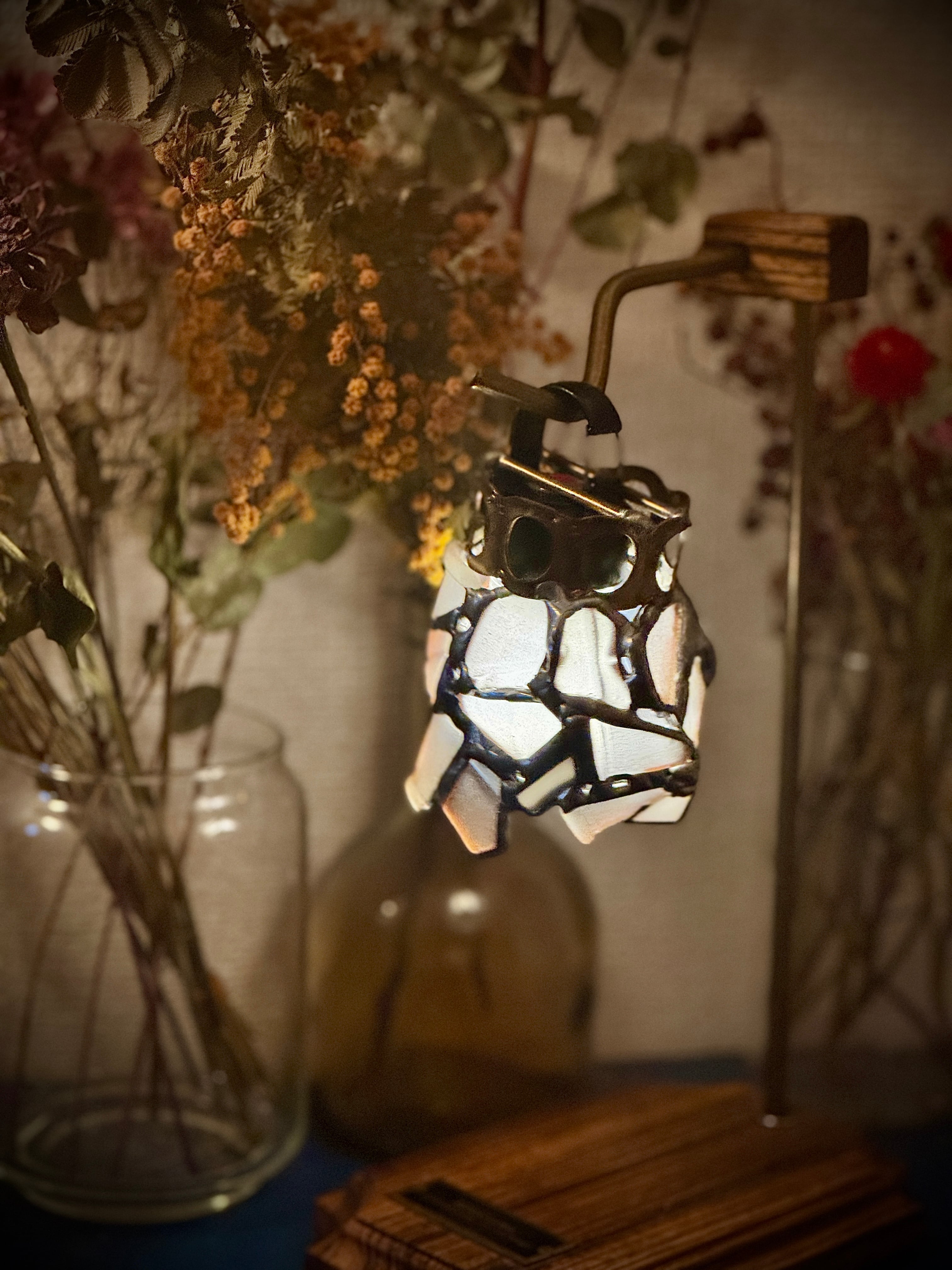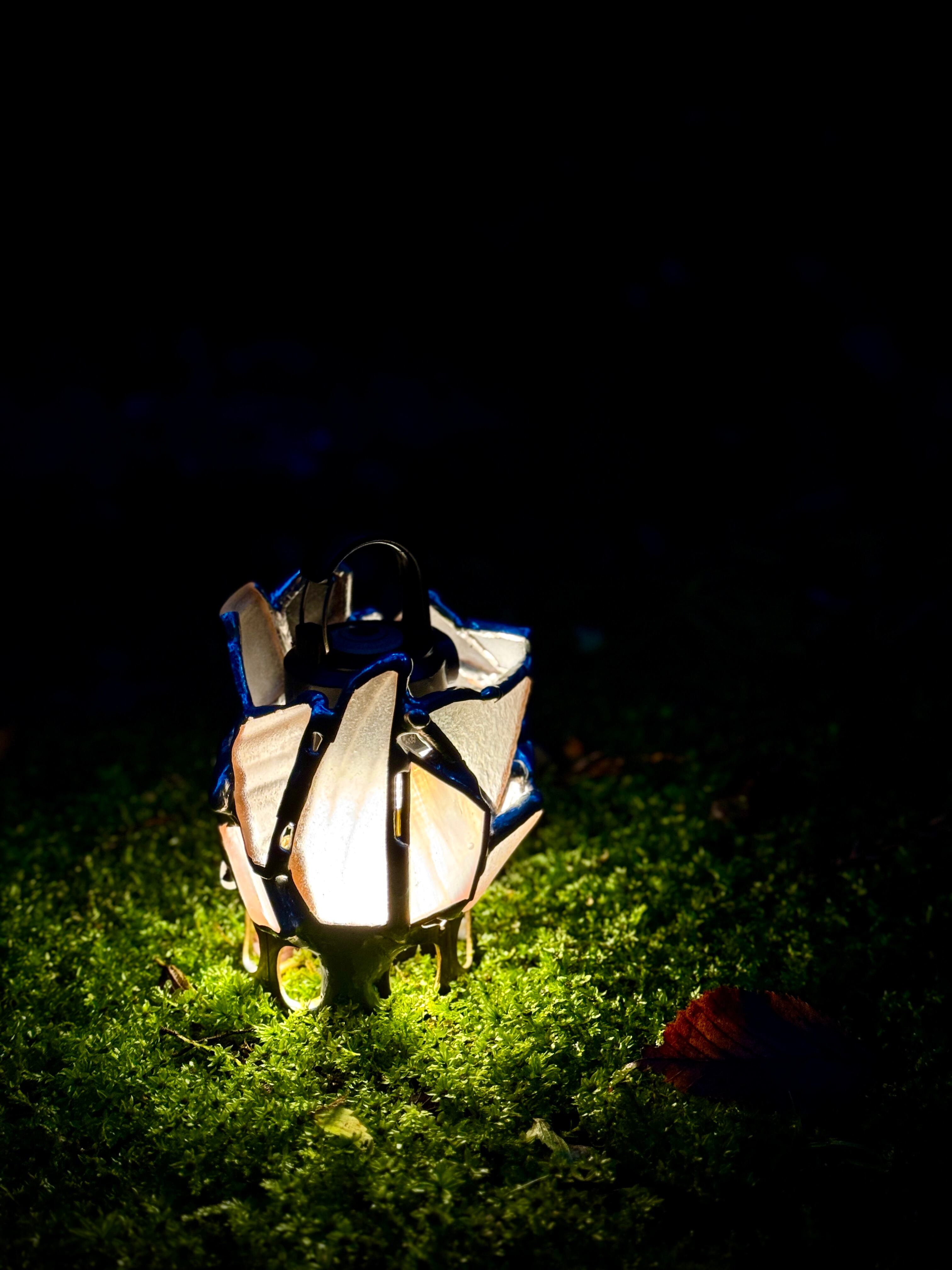 サイズや形状が合えば他のLEDライトも使用可能ですが、おすすめはやはりLEDLENSERさんのML4。ML4(Warm Light)は光が横にも柔らかく飛んでいるため、私の作品のガラスの良さを最大限活かしてくれます。