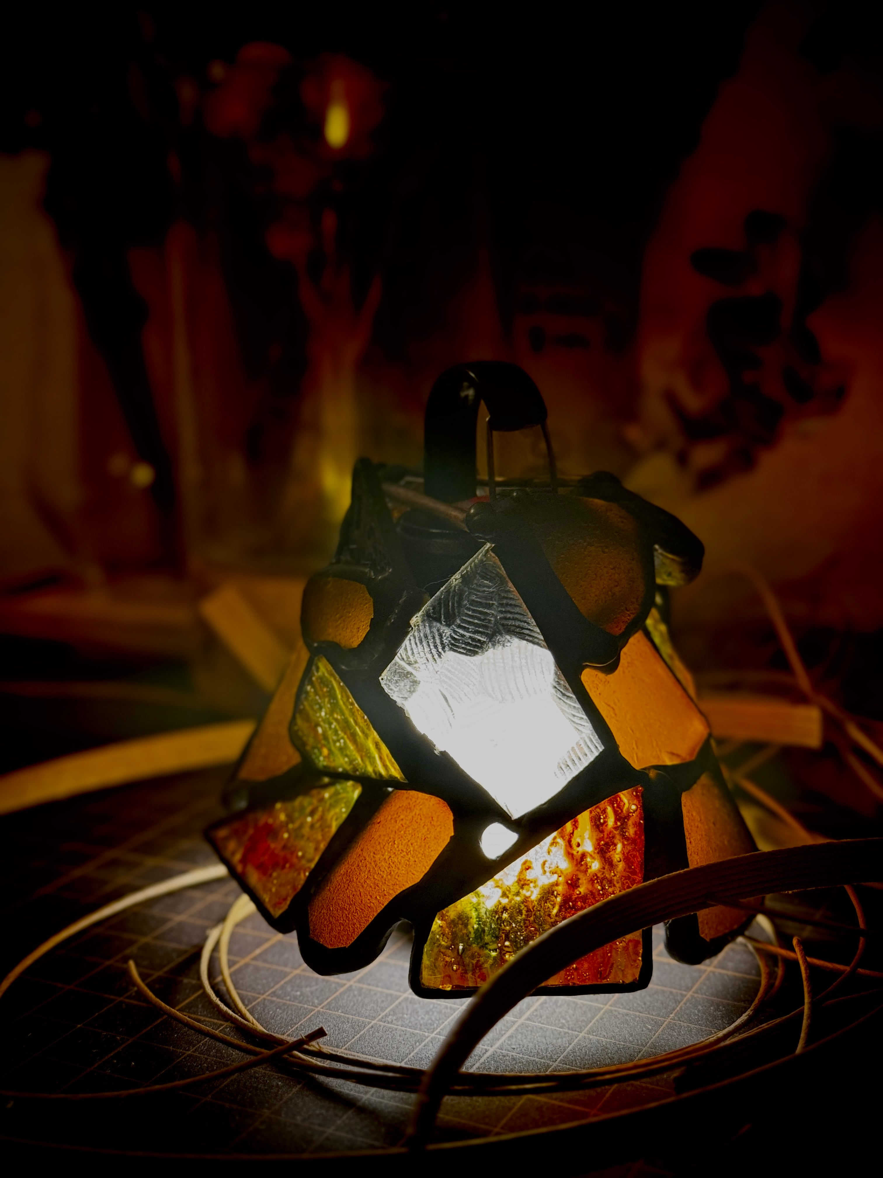 サイズや形状が合えば他のLEDライトも使用可能ですが、おすすめはやはりLEDLENSERさんのML4。ML4(Warm Light)は光が横にも柔らかく飛んでいるため、私の作品のガラスの良さを最大限活かしてくれます。