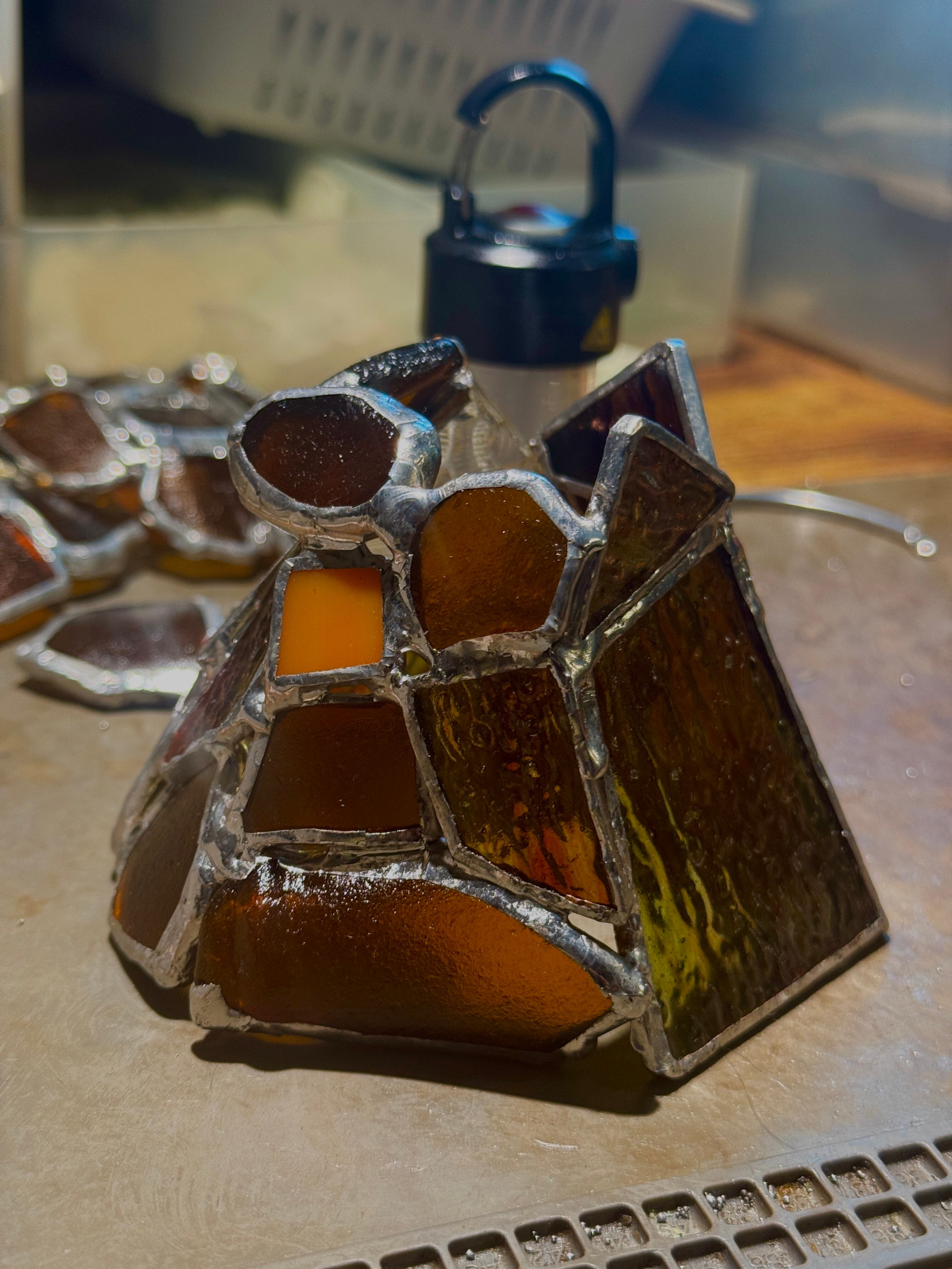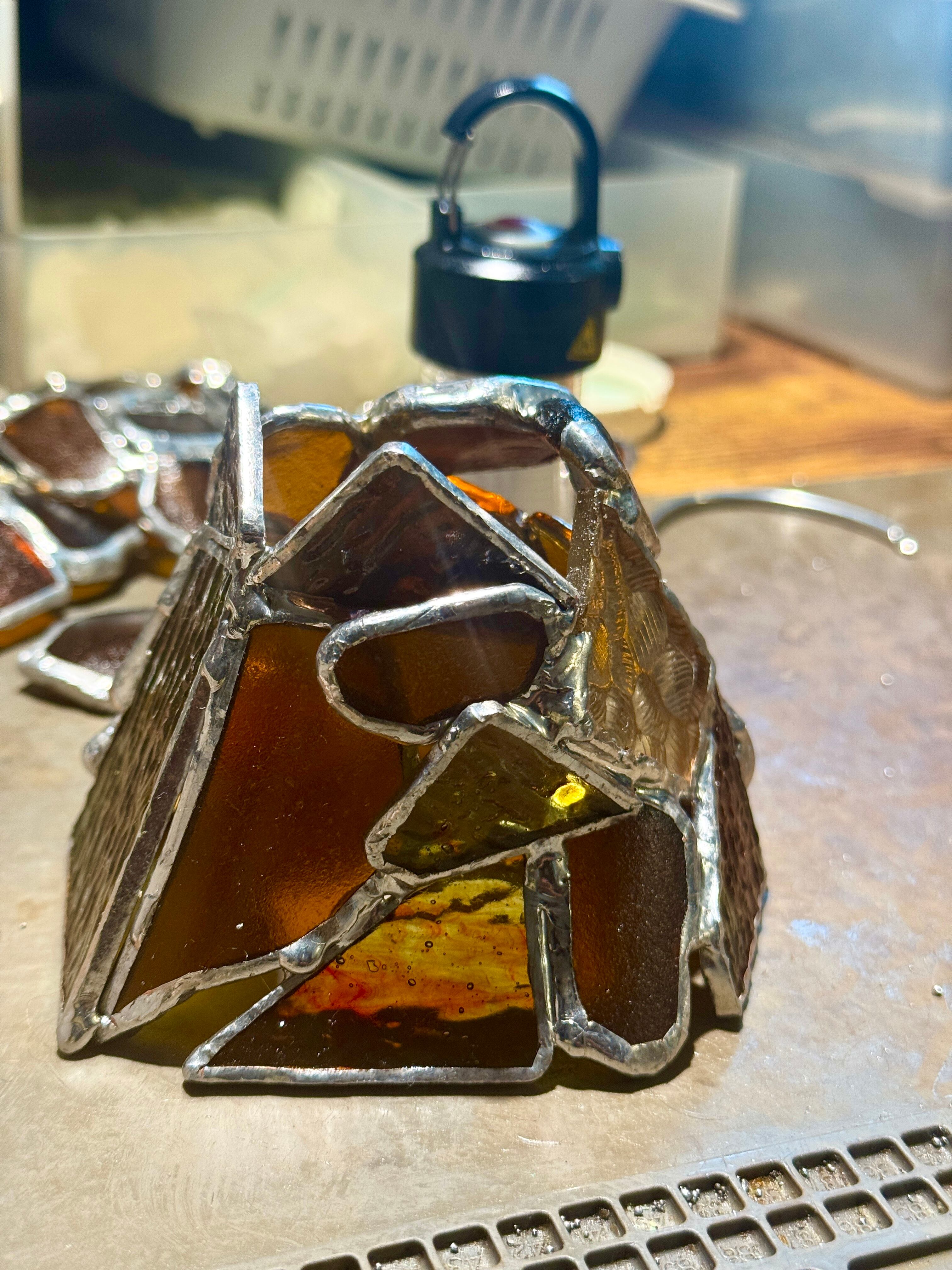 ステンドグラスは、ステンドグラス専用のハンダを使って制作しております。