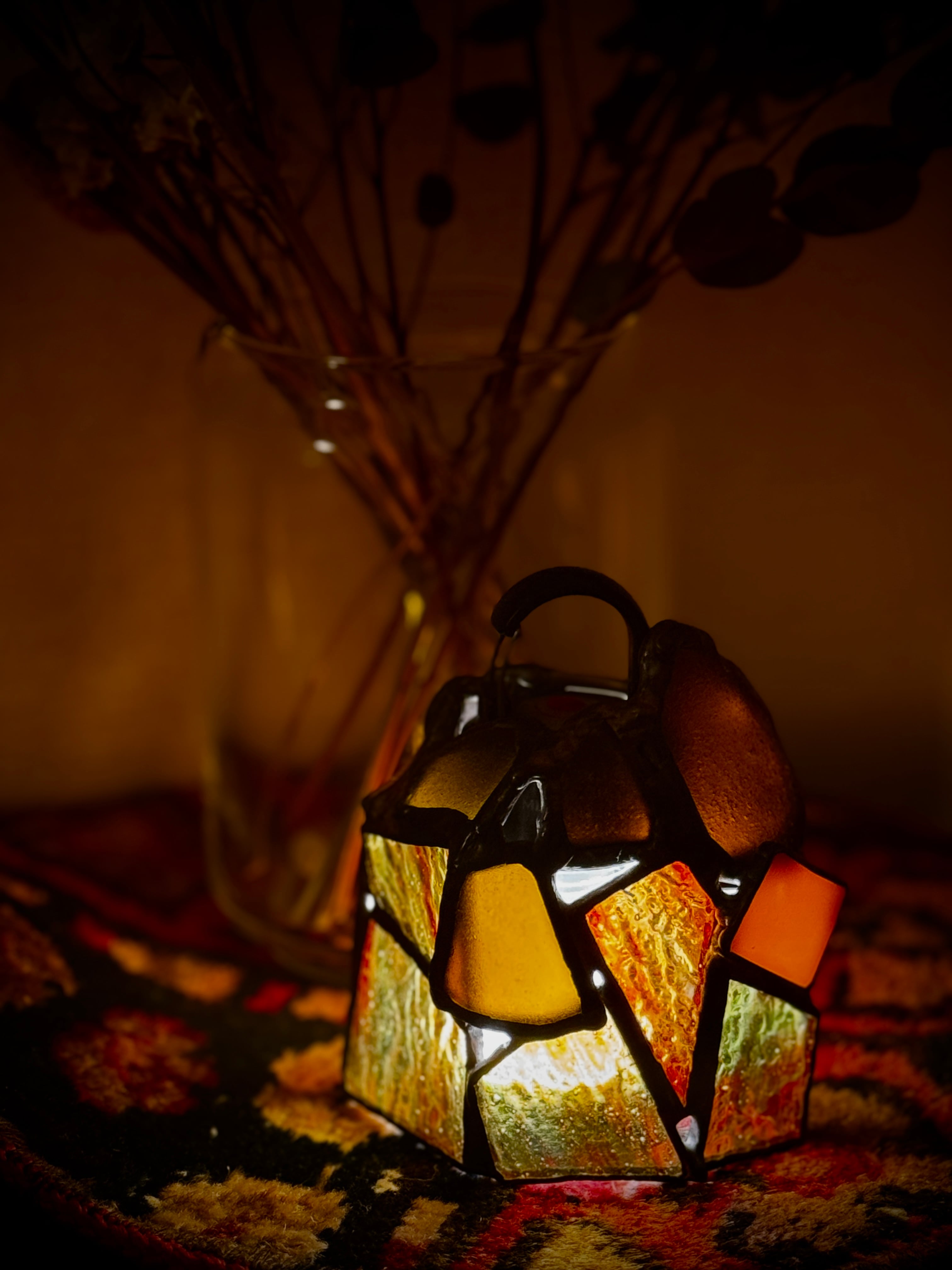 所詮は小さなガラスのランタンですが、そんな風に少しでもガギガギした時化る情緒を緩和できたらなという想いを込めて組み上げました。