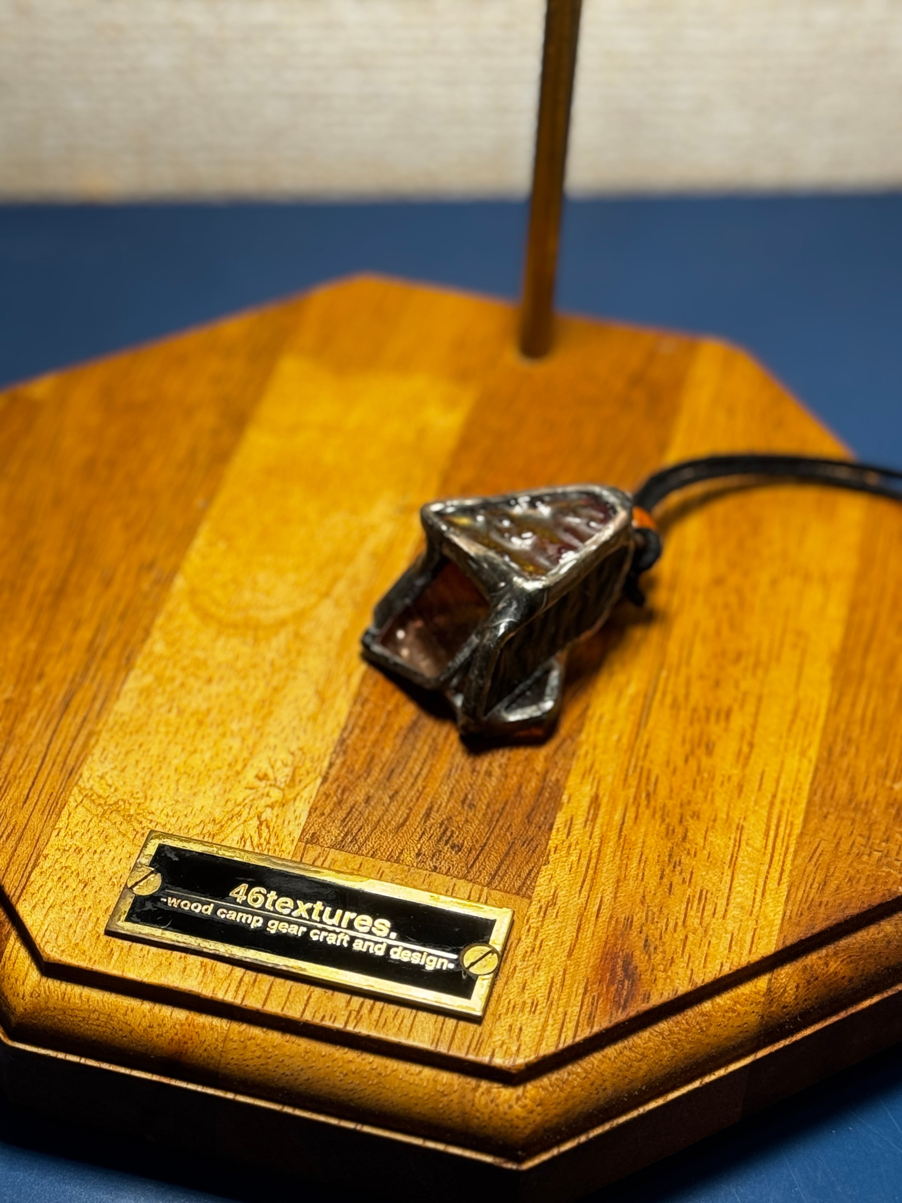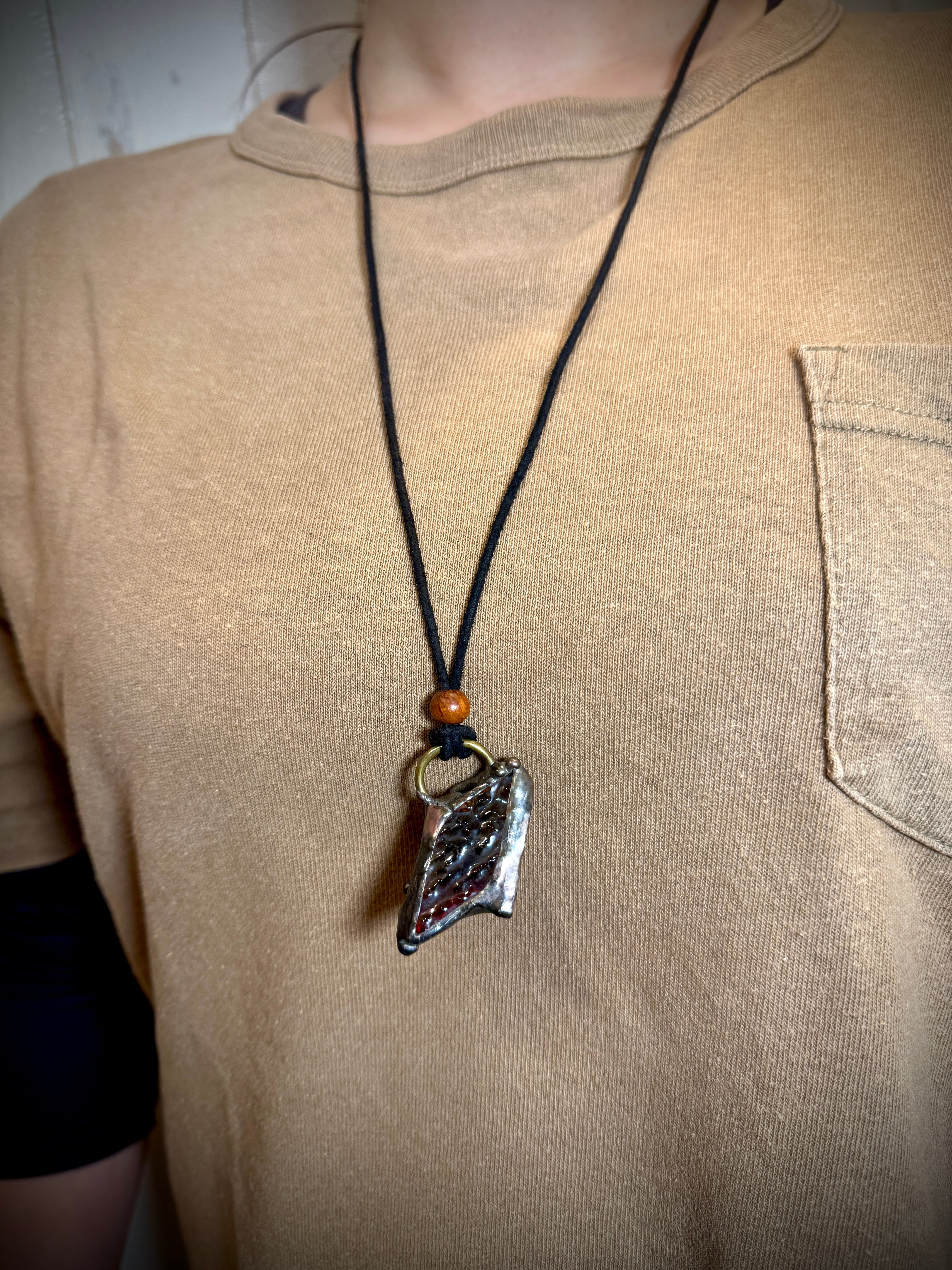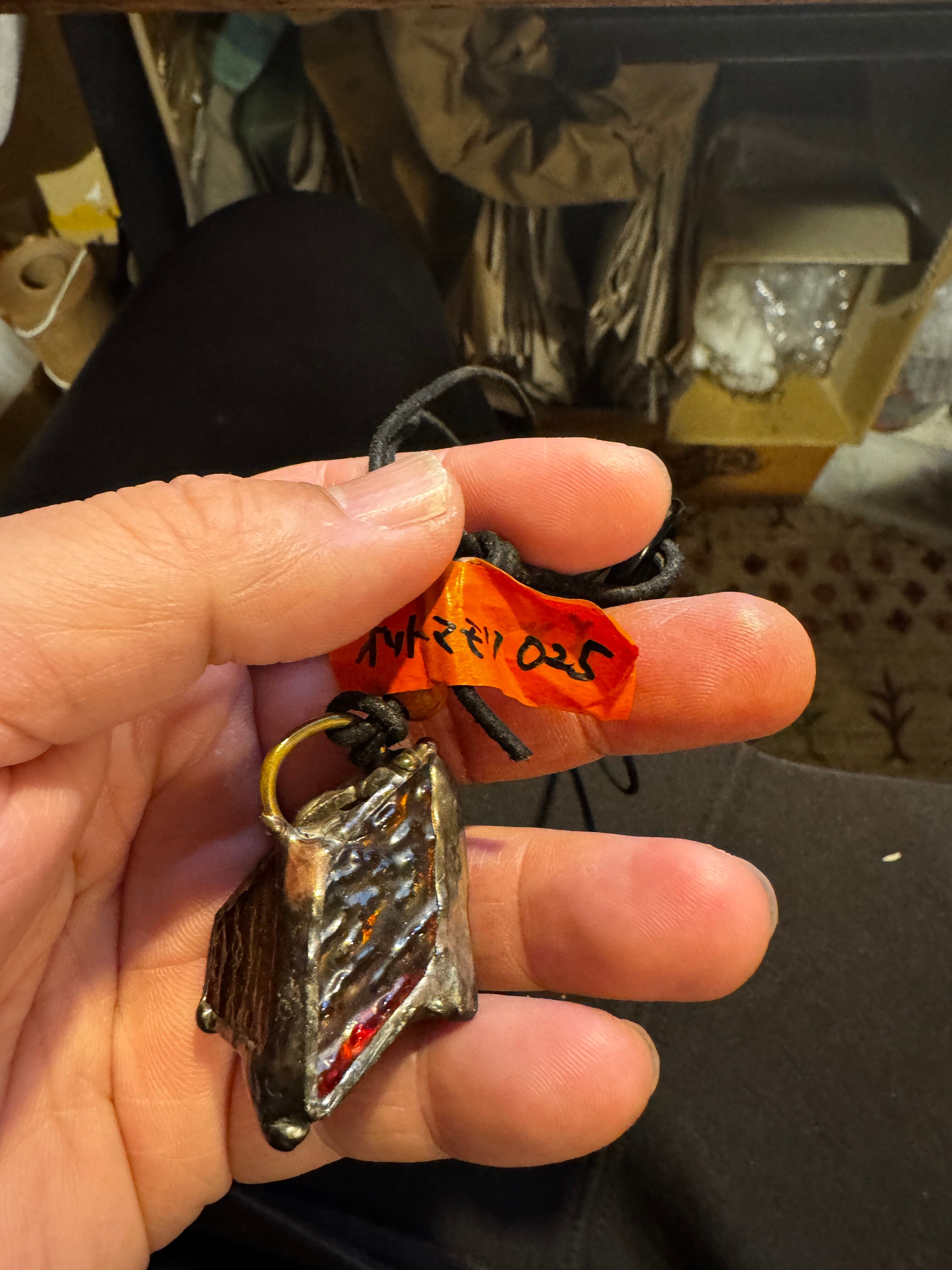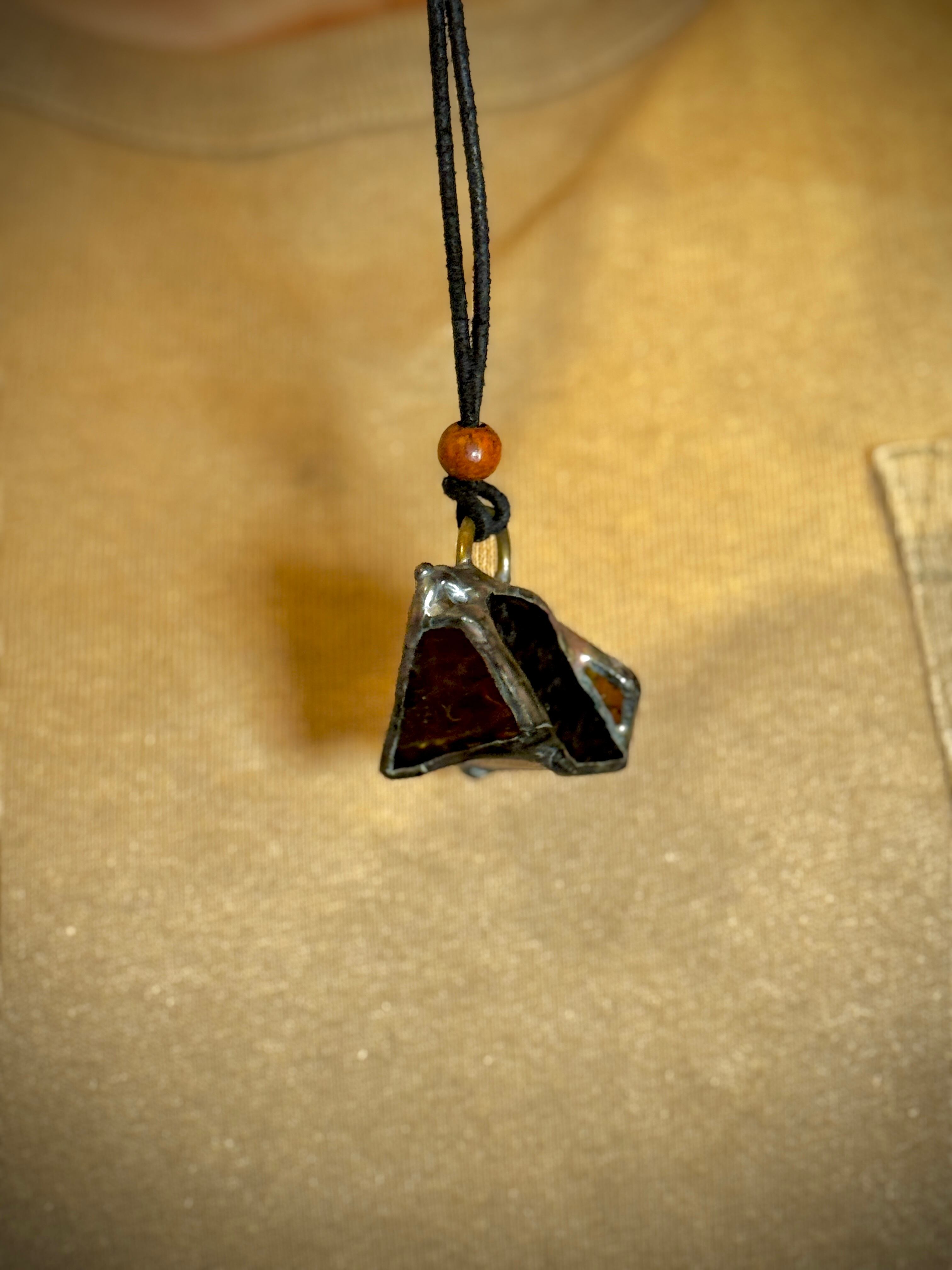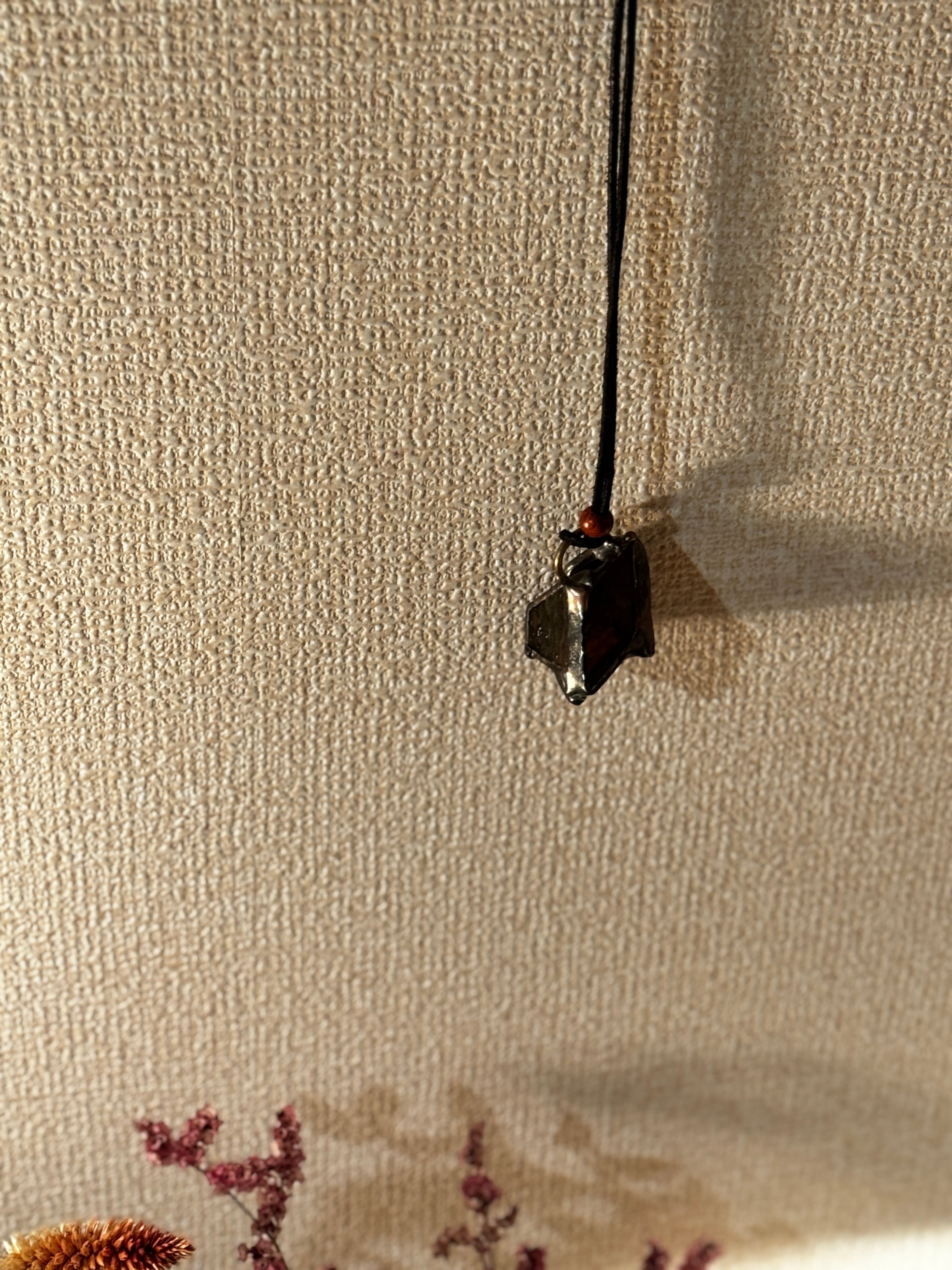ガラス、ハンダ(すず・鉛)、水牛皮紐(太さ2mm)、