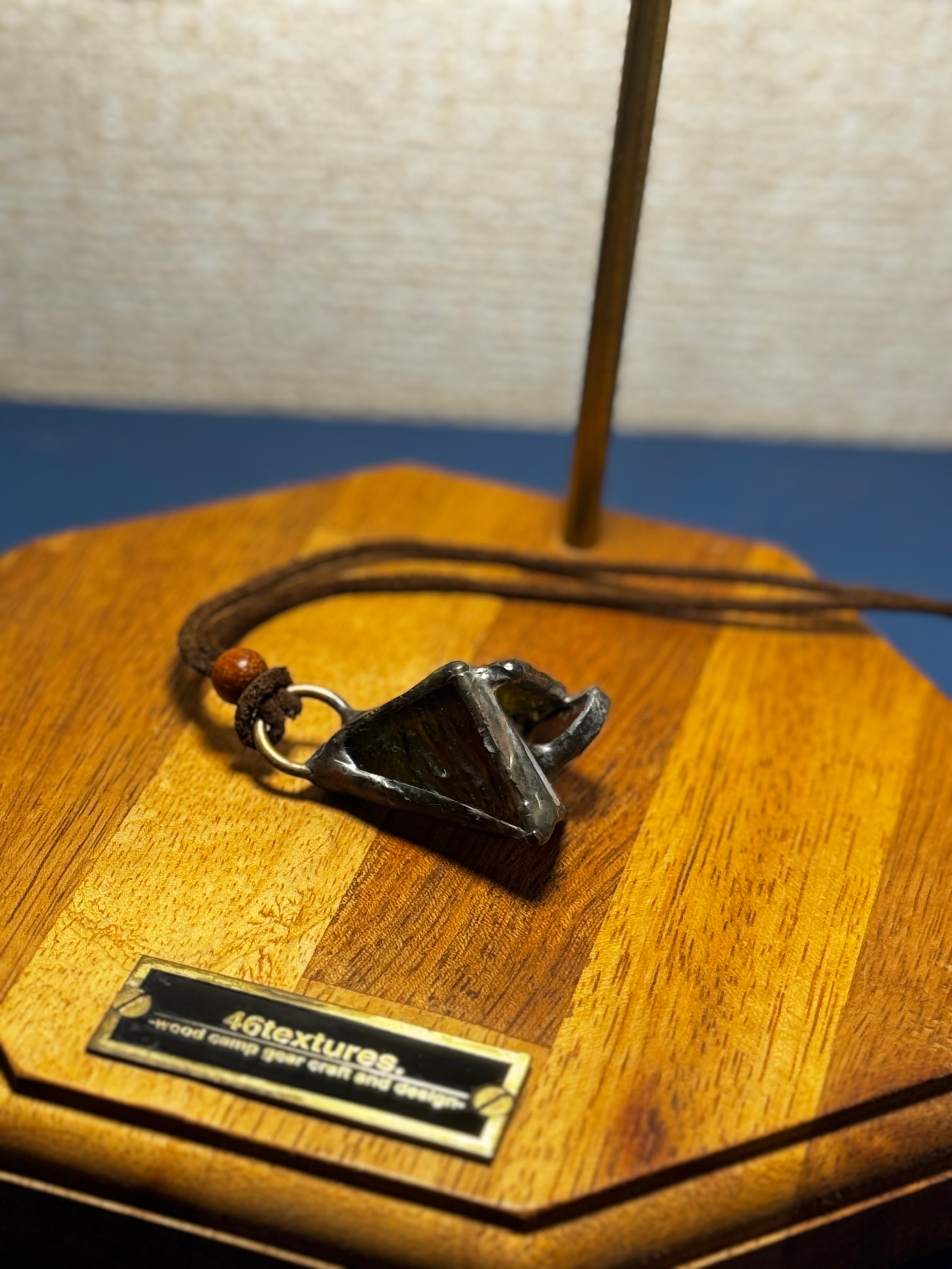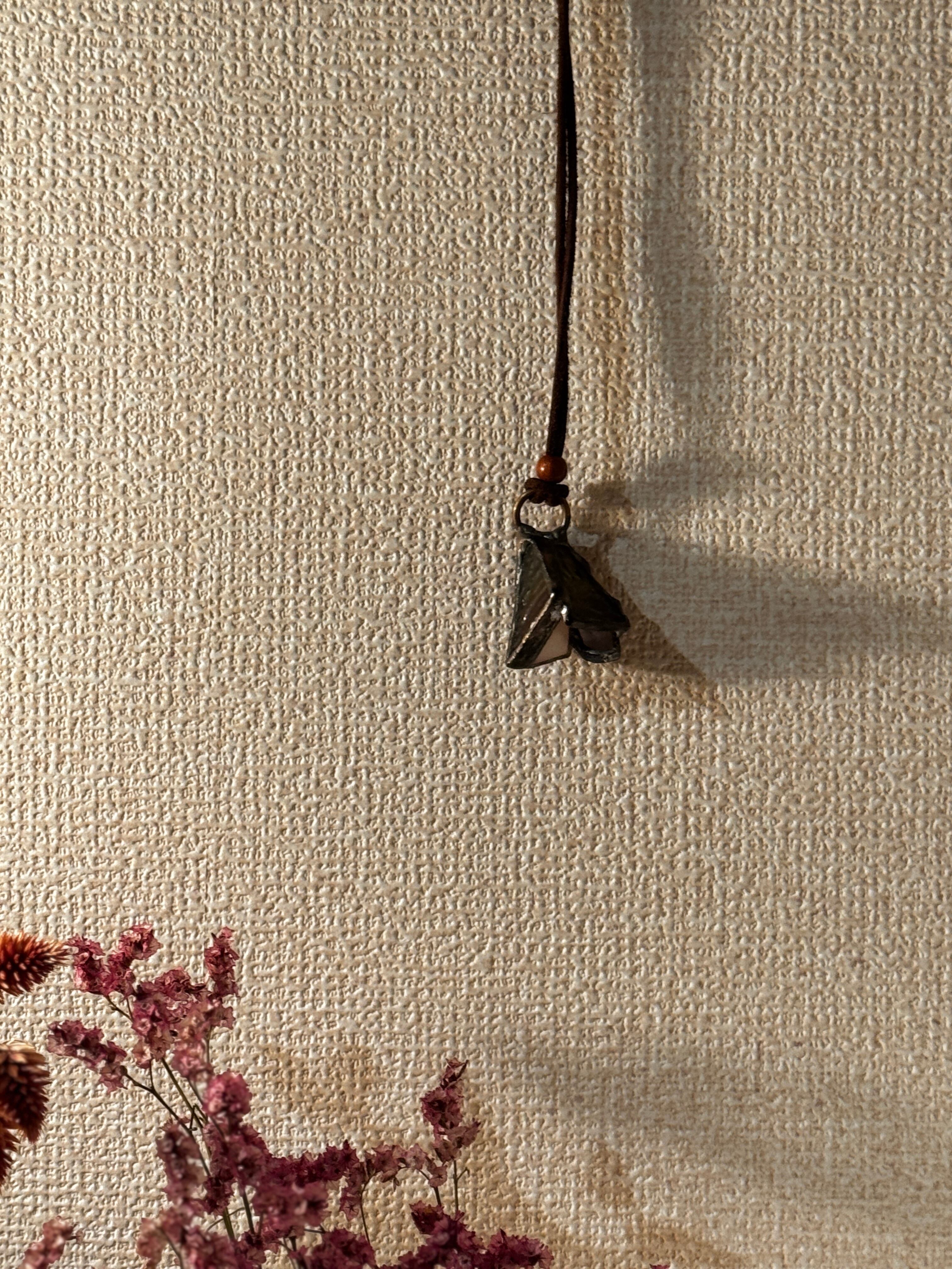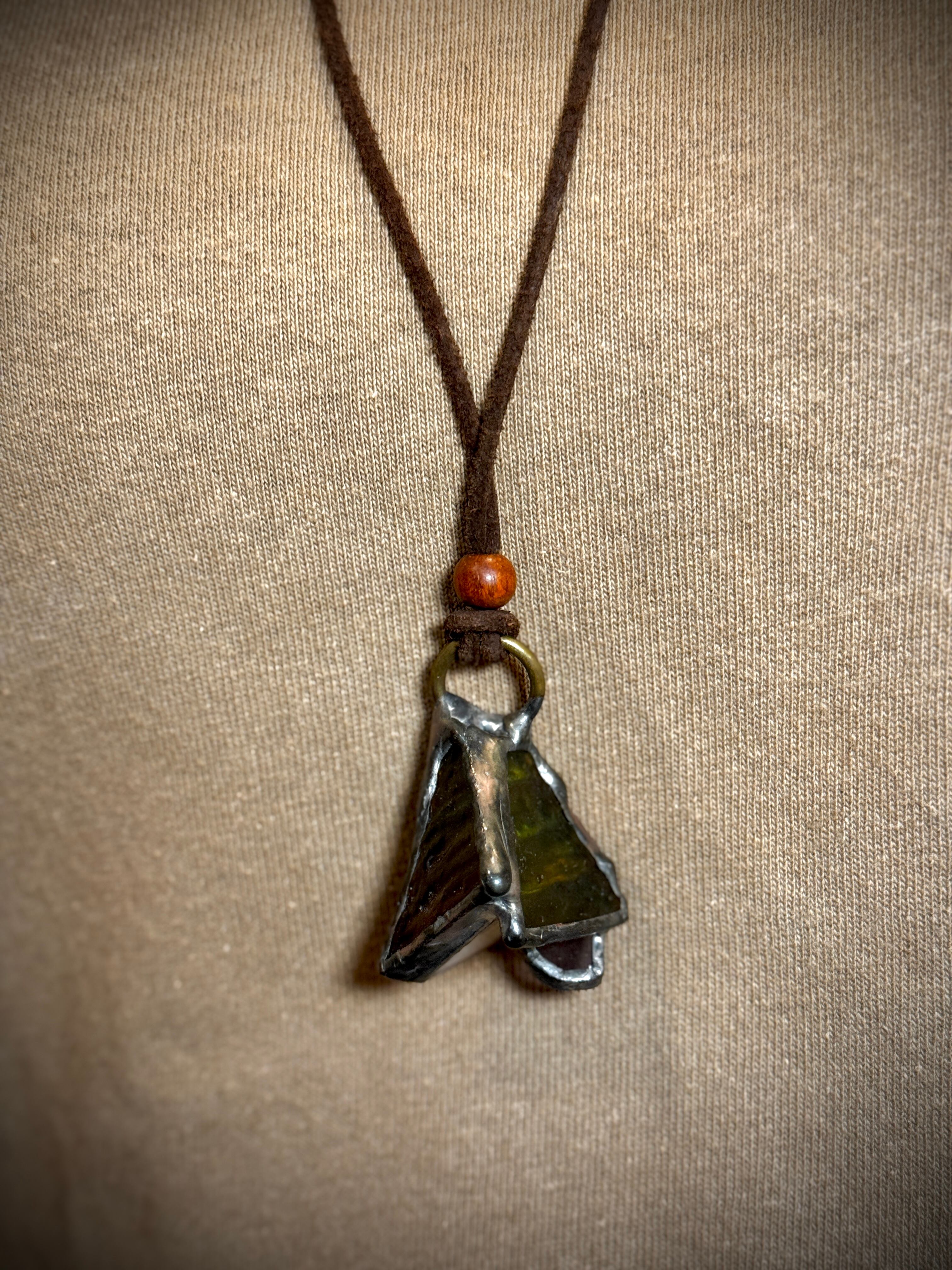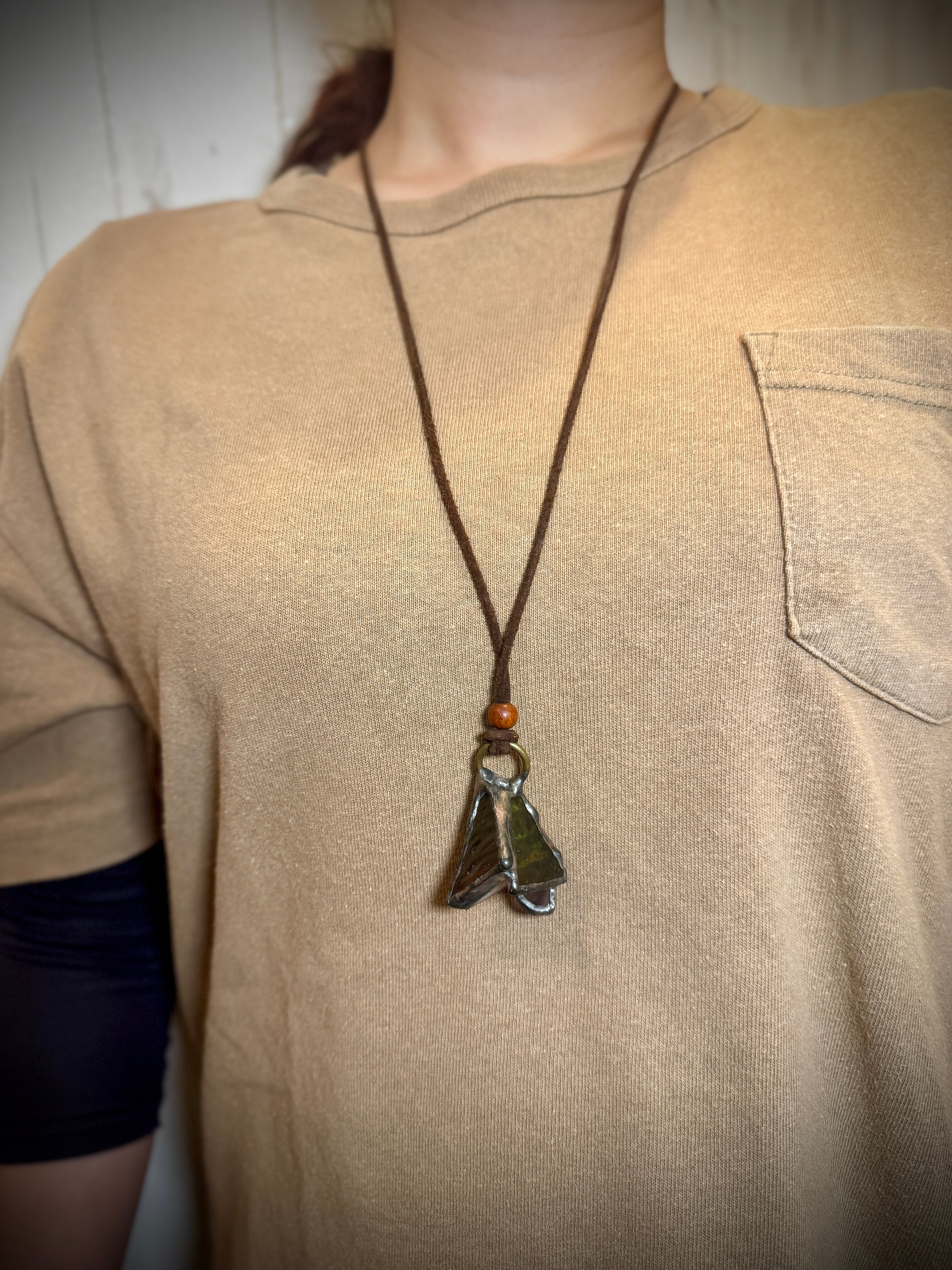ガラス、ハンダ(すず・鉛)、水牛皮紐(太さ2mm)、
