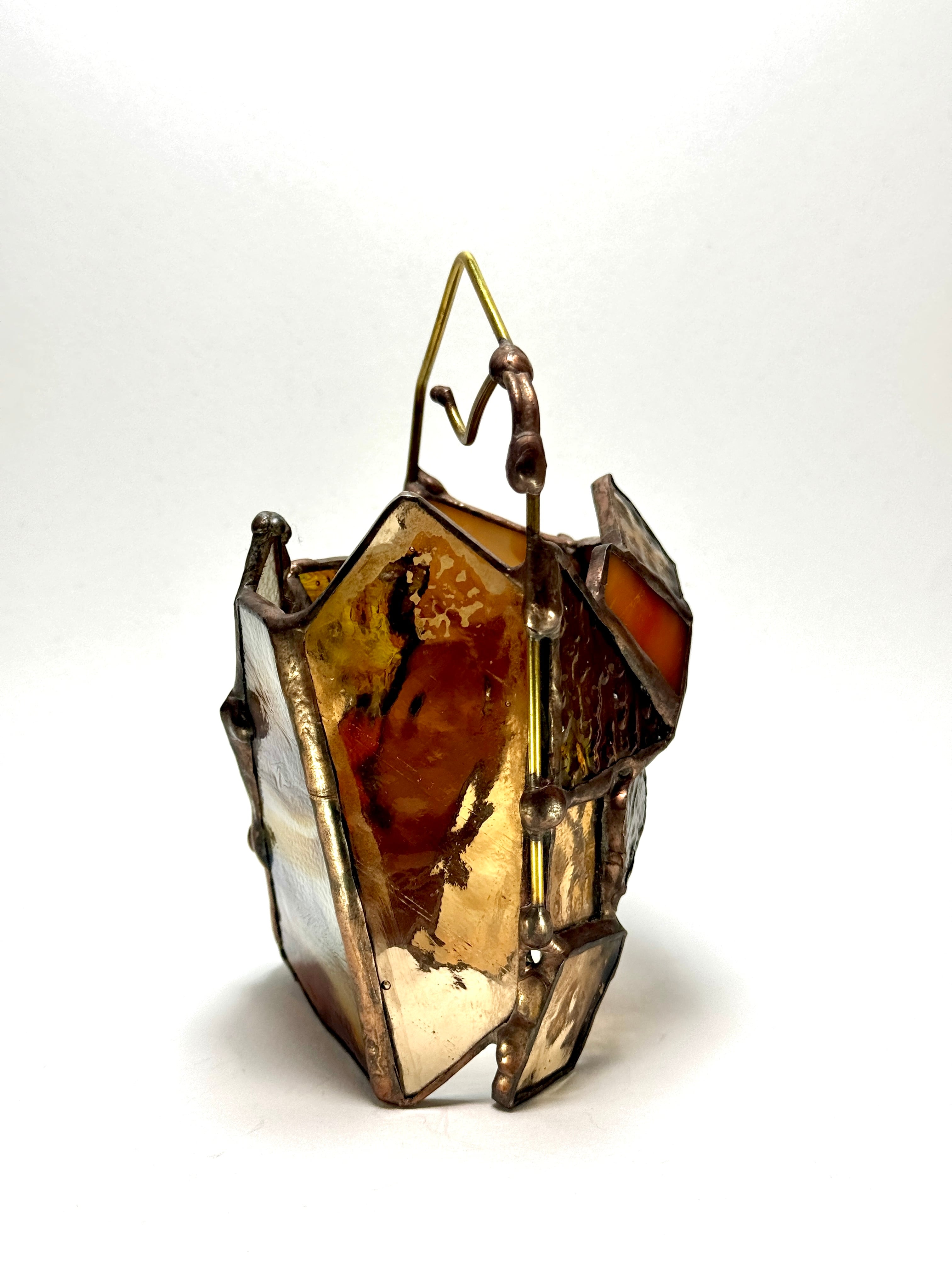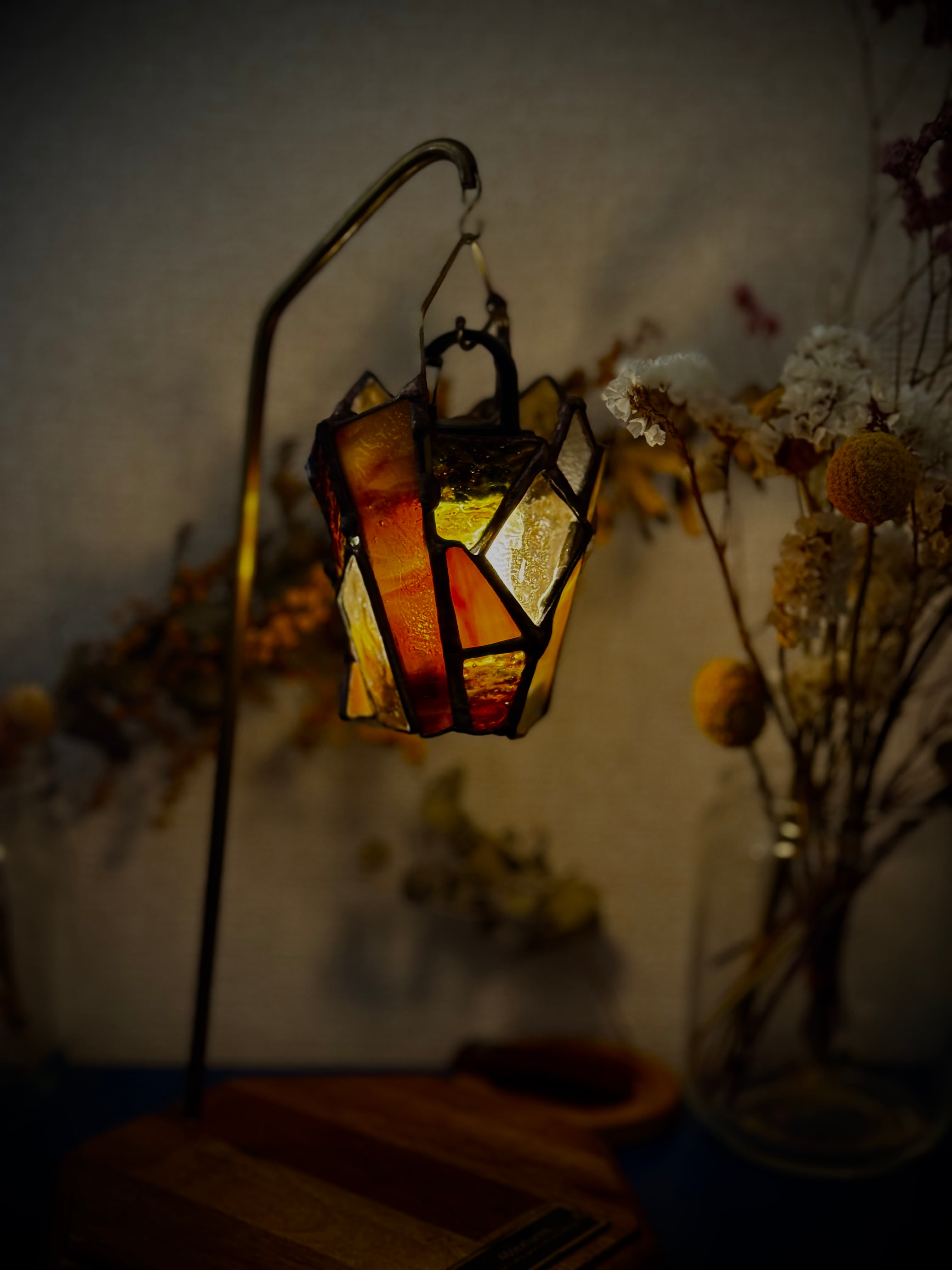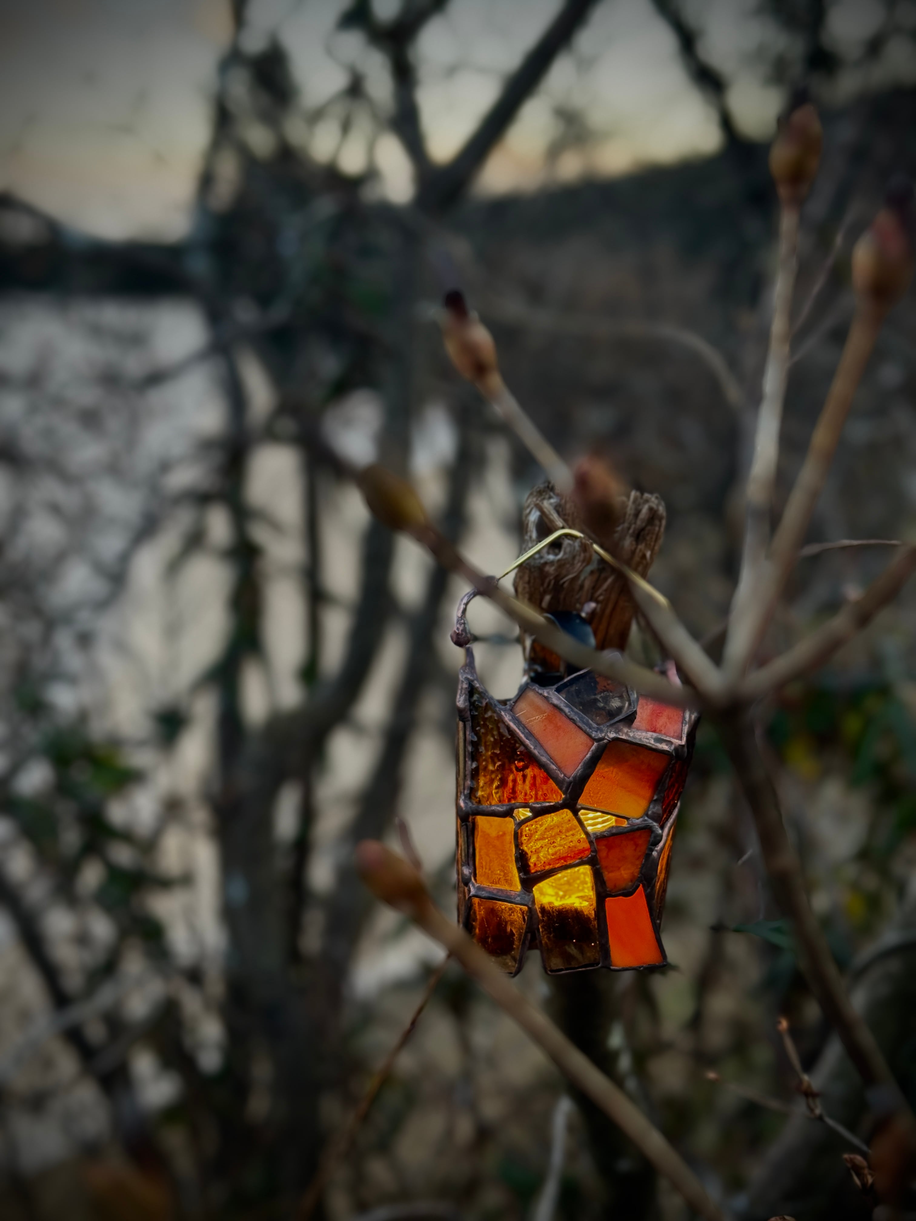 守りに特化しているように見えるが静かな強さを控えている。そんな”個の主張”を纏っている小さなランタンシェードです。特に寒い冬の日に、暖かくそばにいてくれるかと思います。