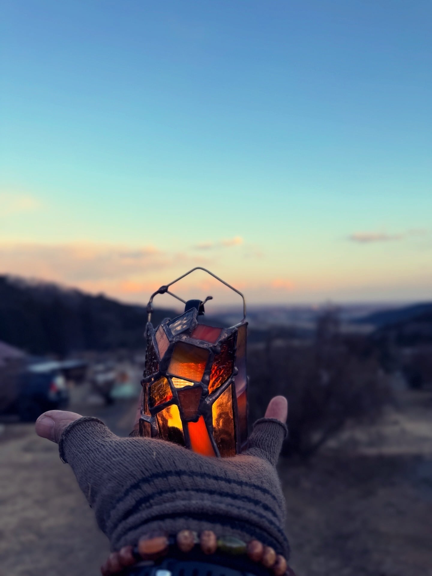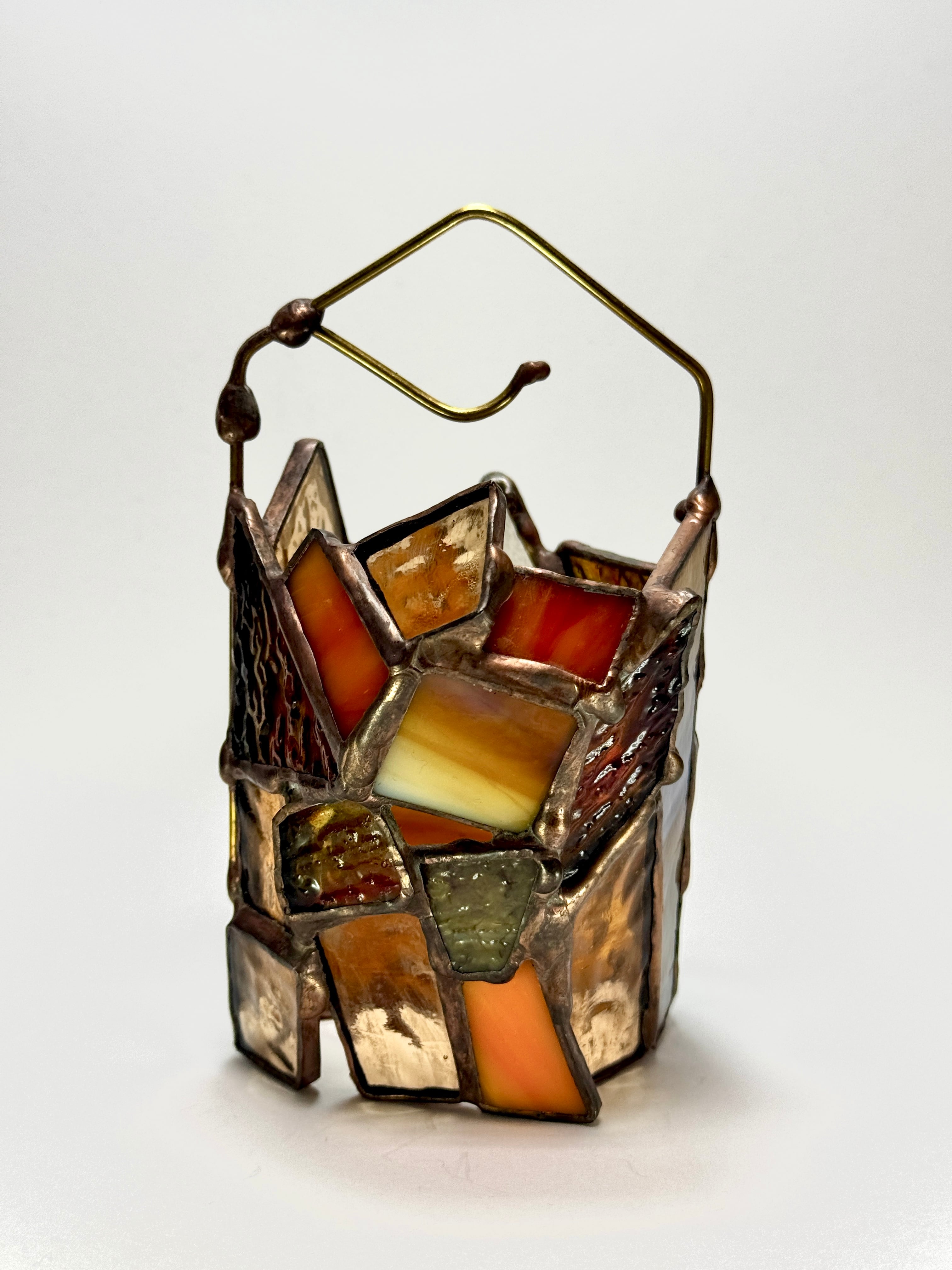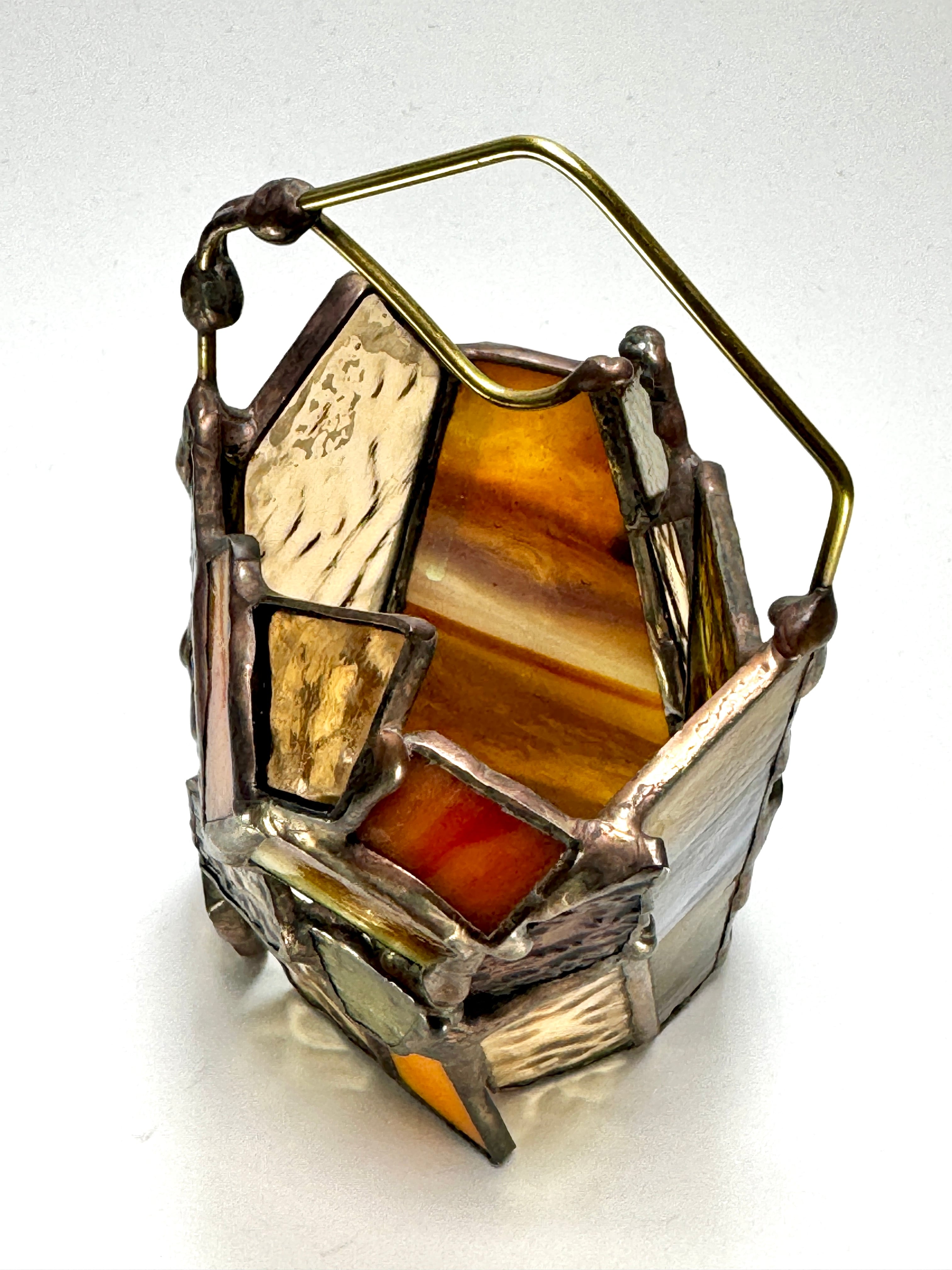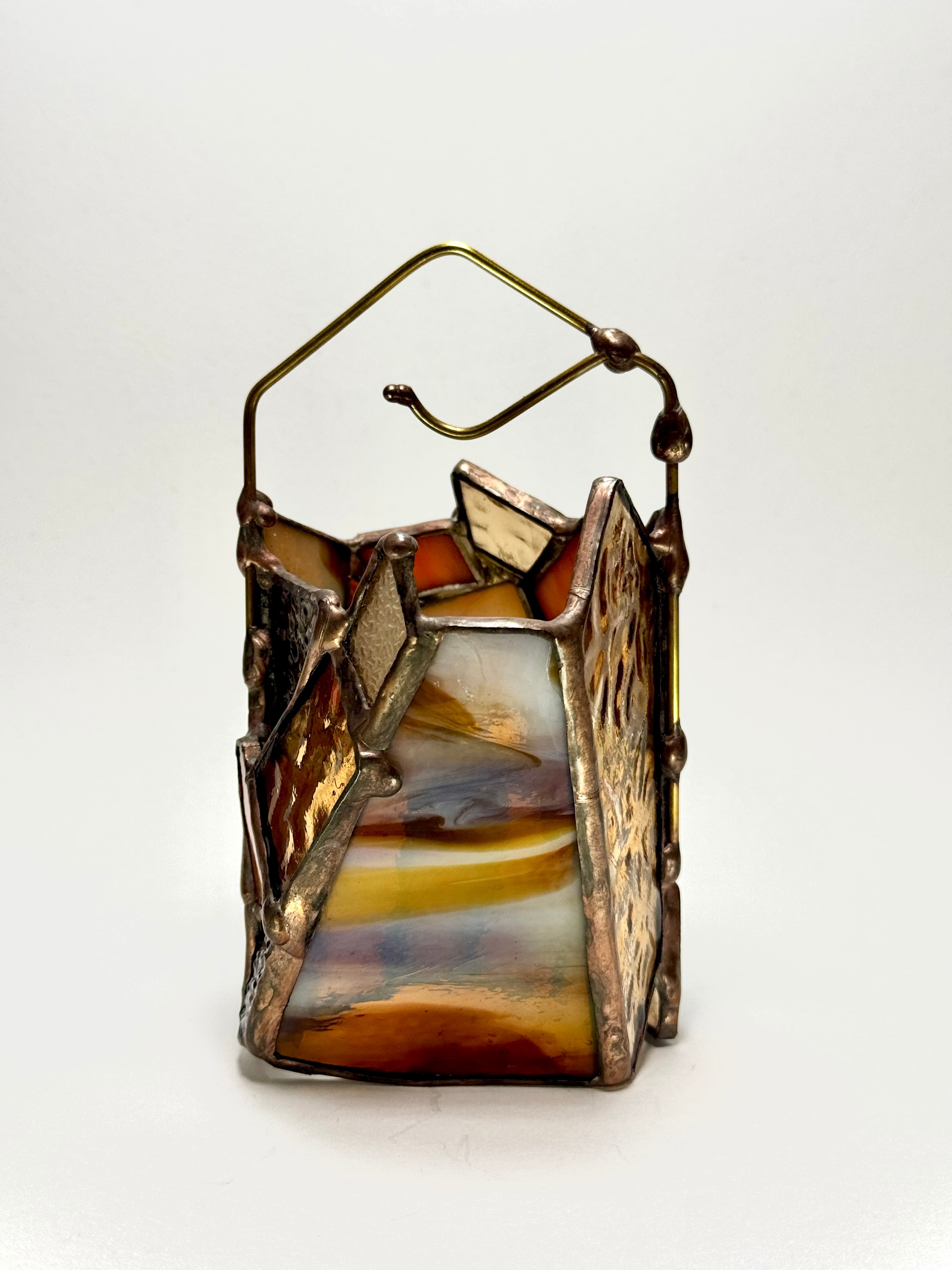 守りに特化しているように見えるが静かな強さを控えている。そんな”個の主張”を纏っている小さなランタンシェードです。特に寒い冬の日に、暖かくそばにいてくれるかと思います。