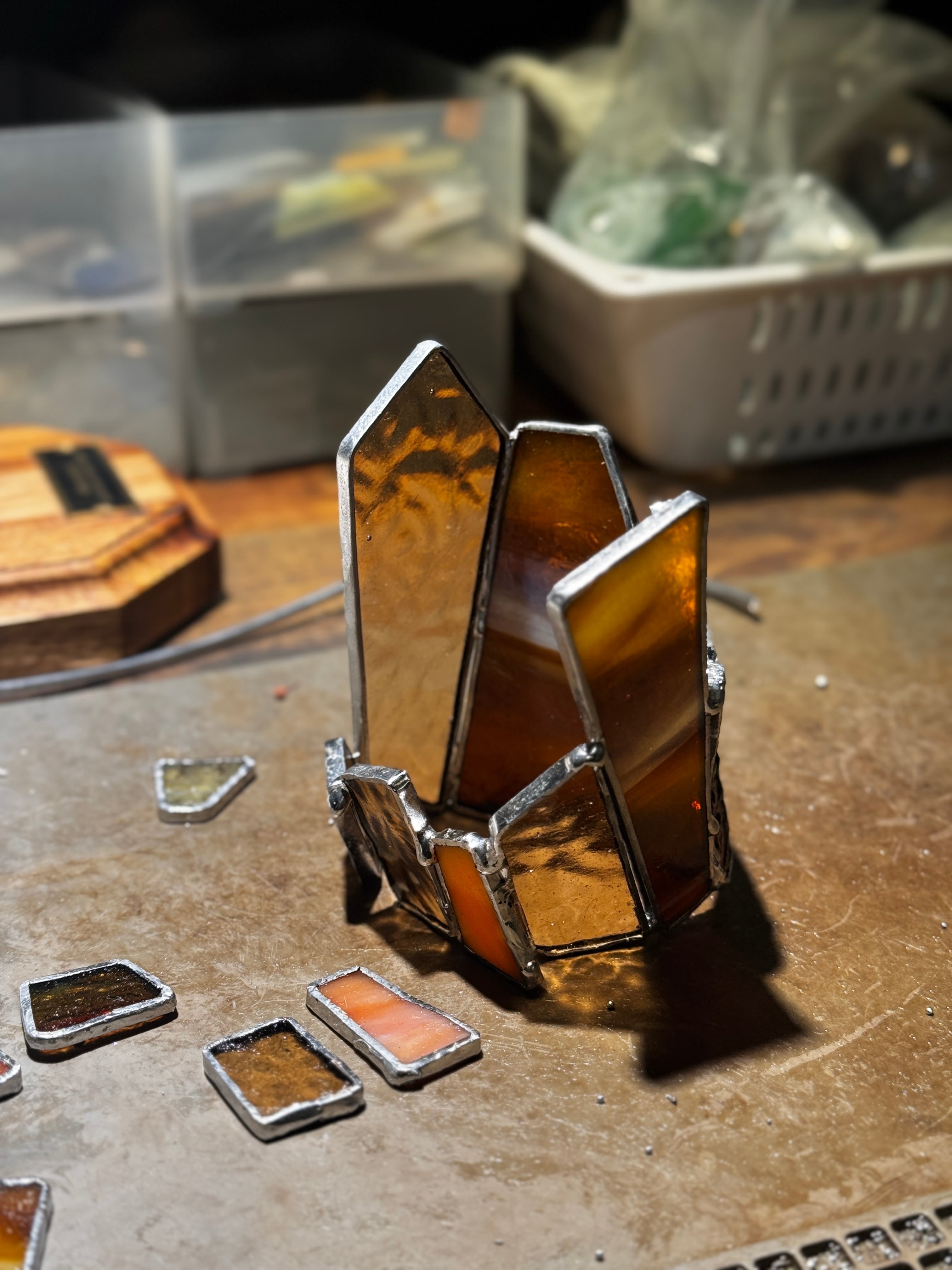 ステンドグラスは、ステンドグラス専用のハンダを使って制作しております。