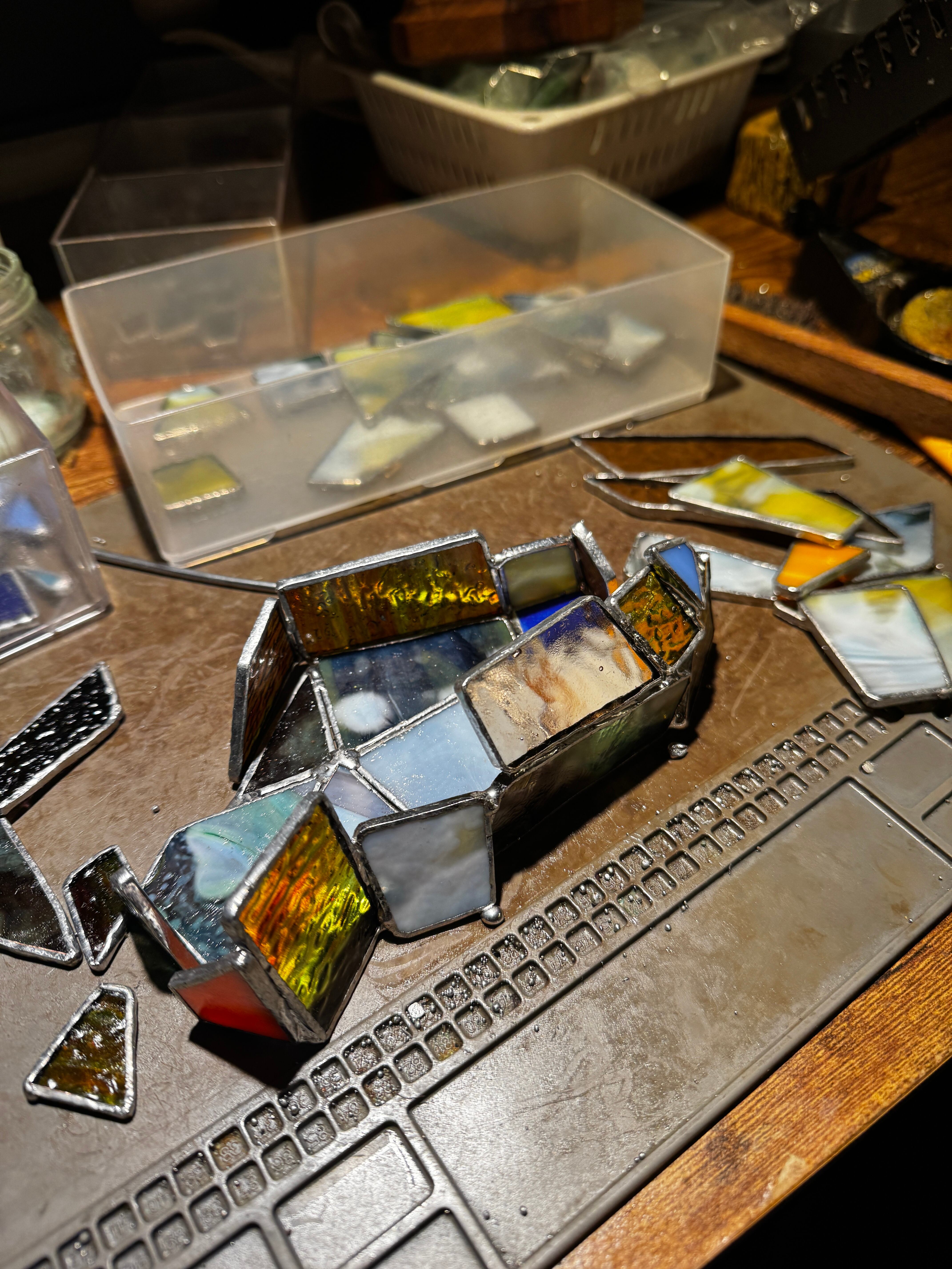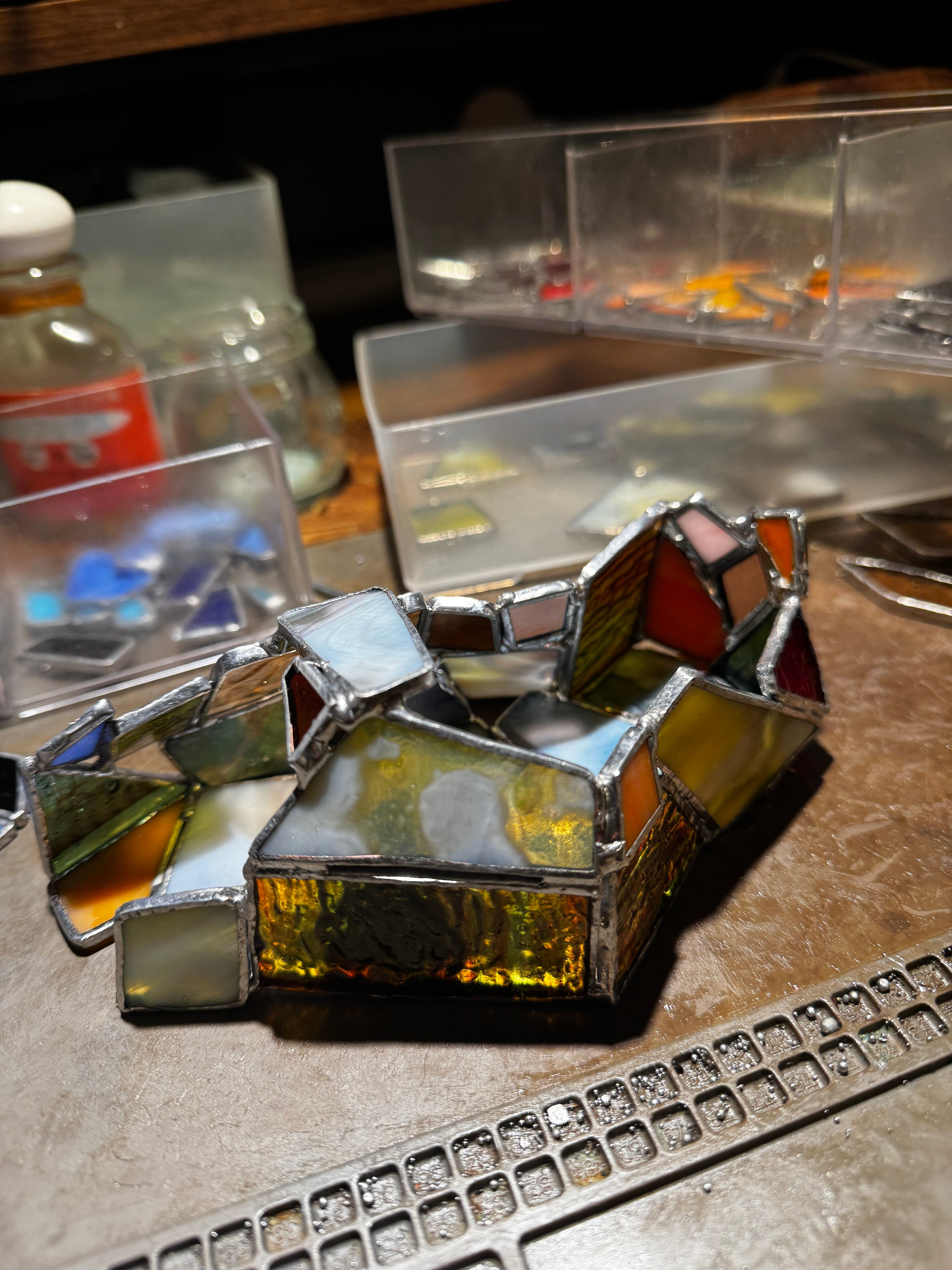 ステンドグラスは、ステンドグラス専用のハンダを使って制作しております。