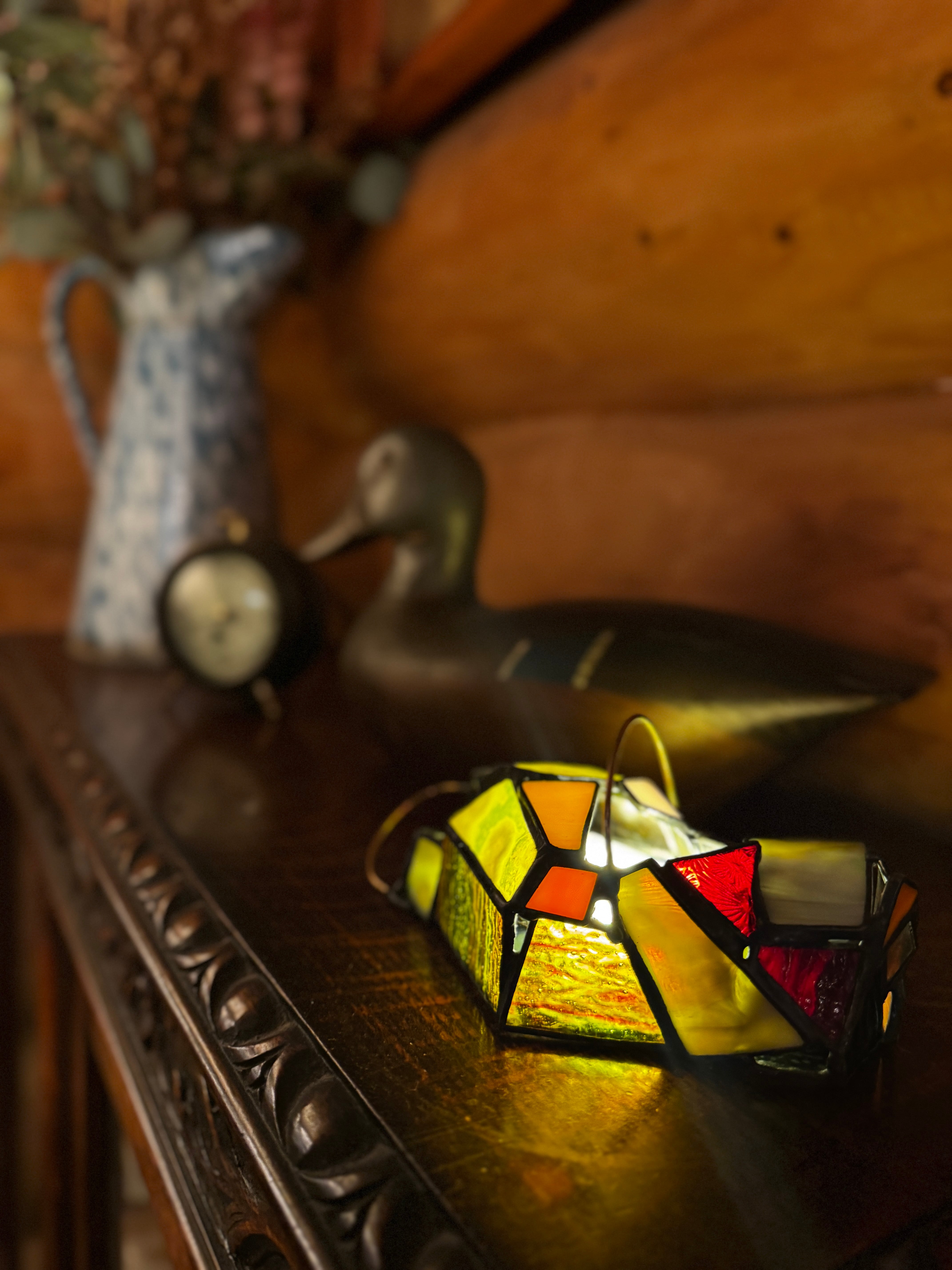 ハンダ部分は時間の経過と共に色が褪せてきます。艶出し・錆止めも含め、専用のポリワックス(jujo ステンドグラス仕上げ用ポリワックス)で定期的にメンテナンスをお願いいたします。