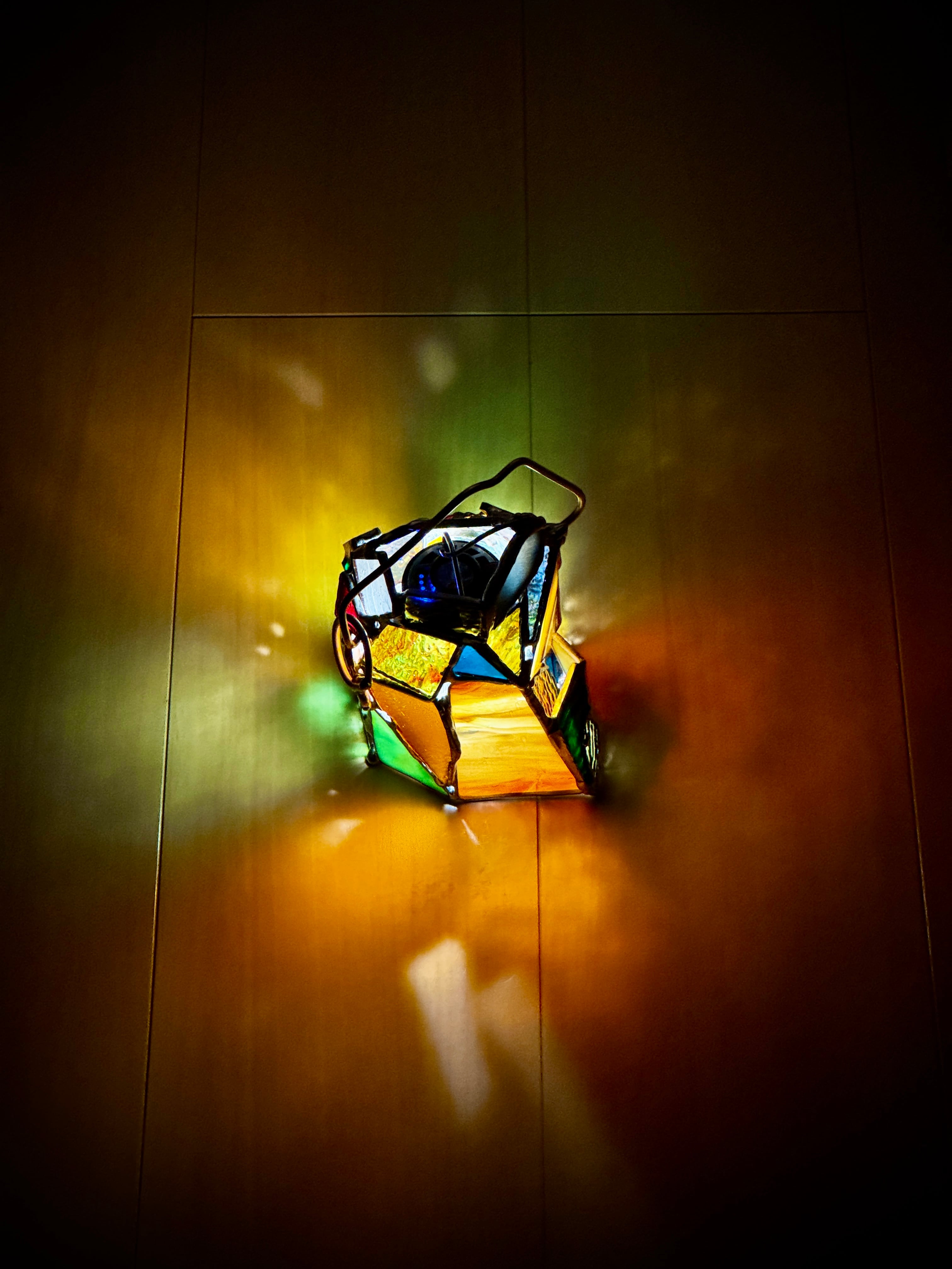 ハンダ部分は時間の経過と共に色が褪せてきます。艶出し・錆止めも含め、専用のポリワックス(jujo ステンドグラス仕上げ用ポリワックス)で定期的にメンテナンスをお願いいたします。