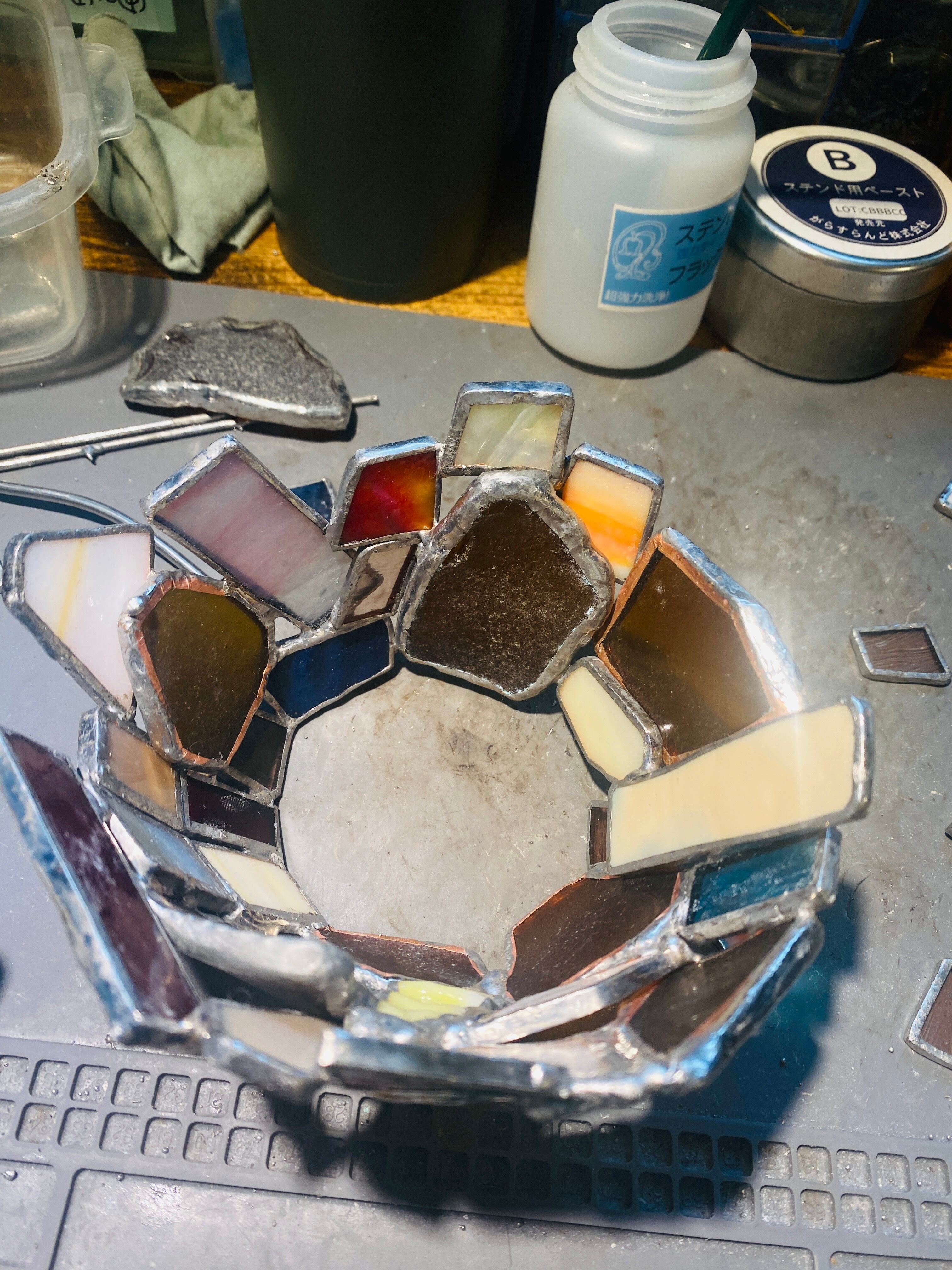 ガラス、ハンダ(すず・鉛)、真鍮針金