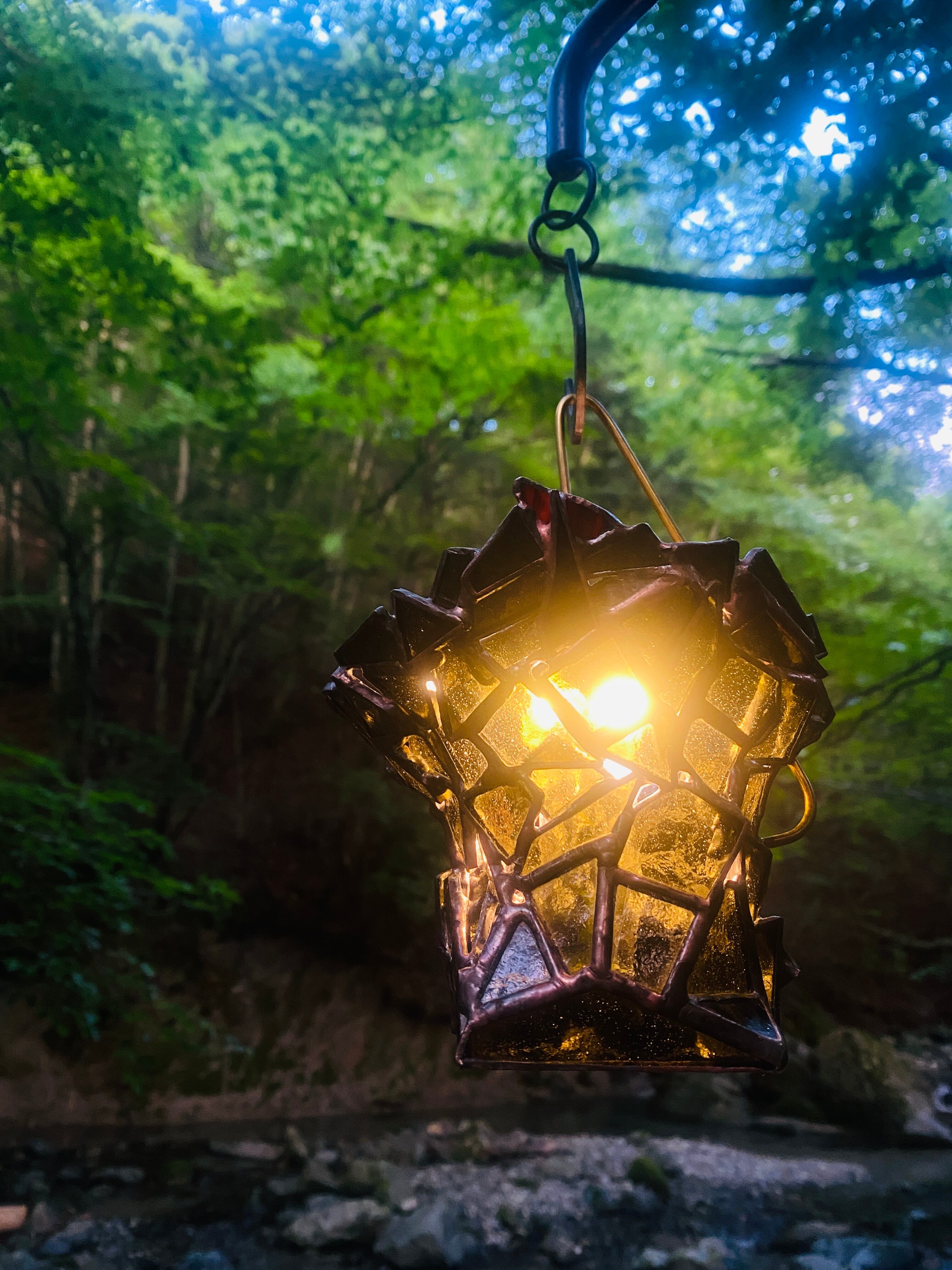 少しダークで切ない物語をステンドグラスのランタンシェードの中に閉じ込めました。