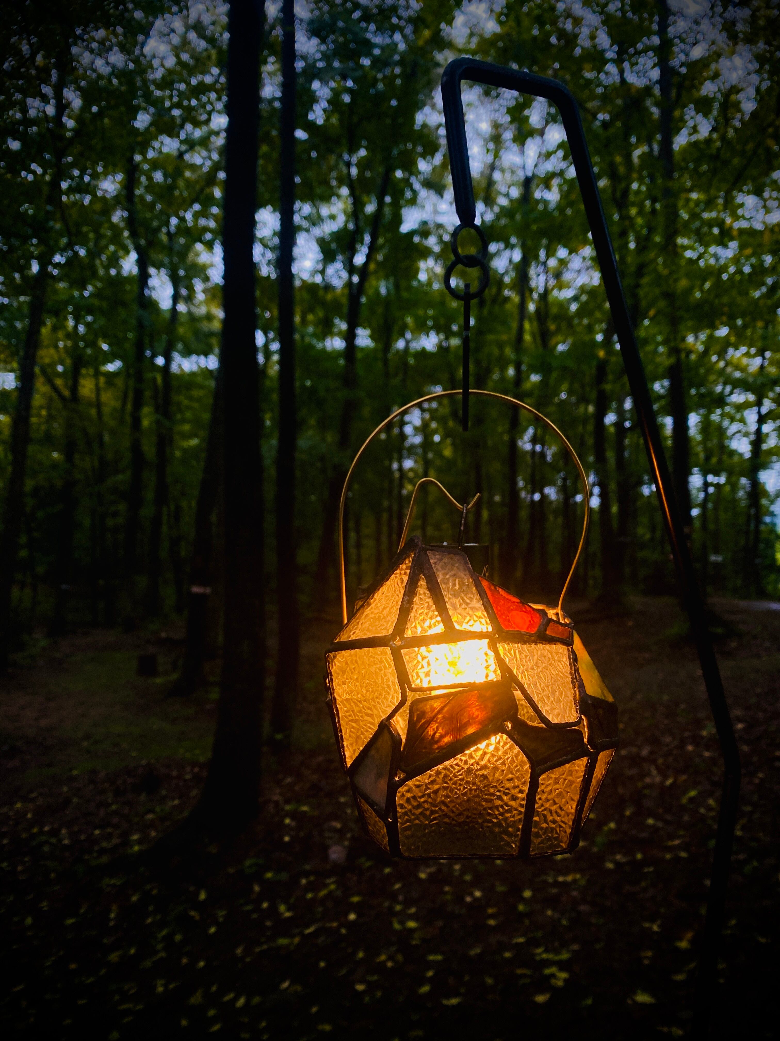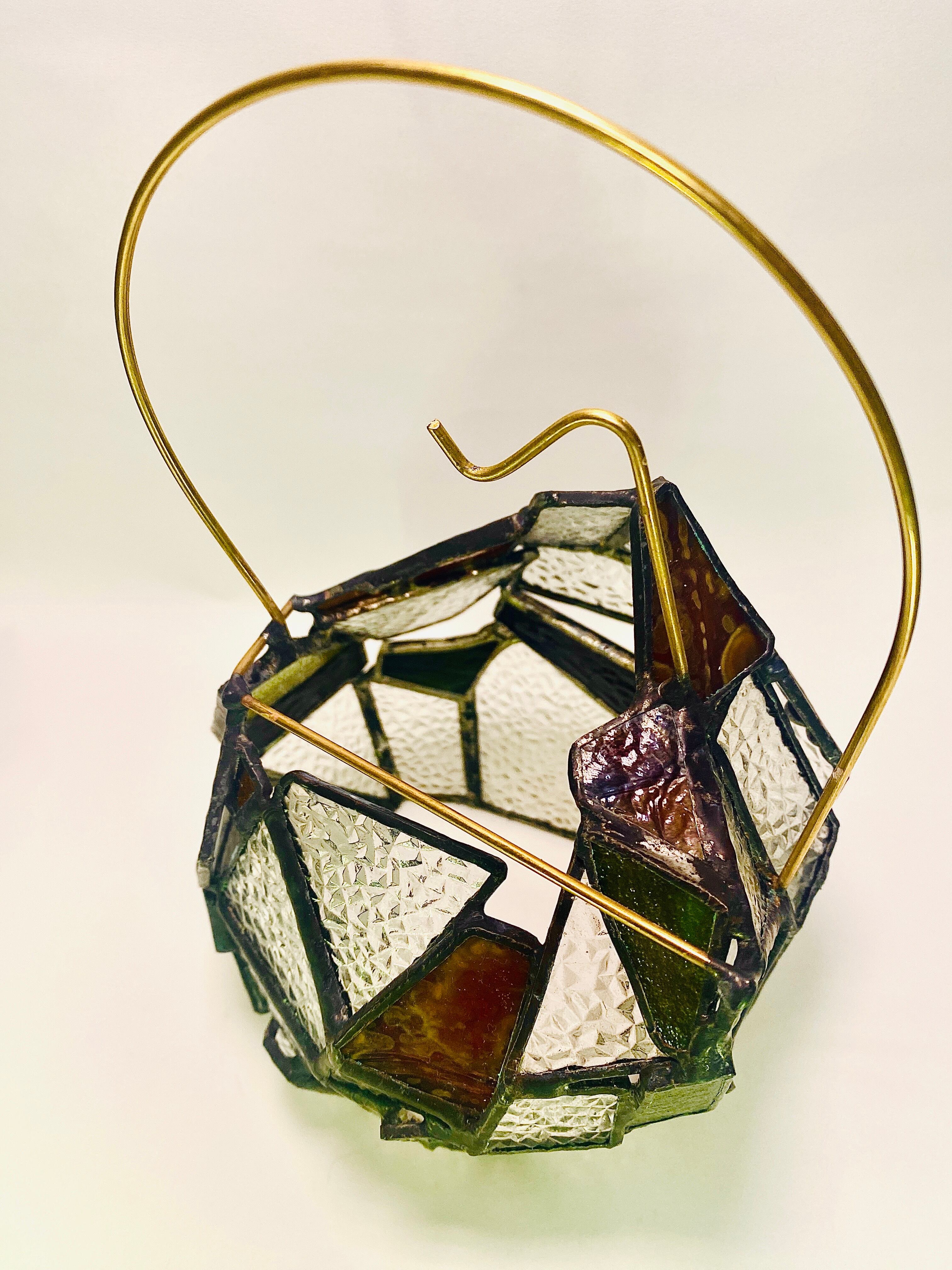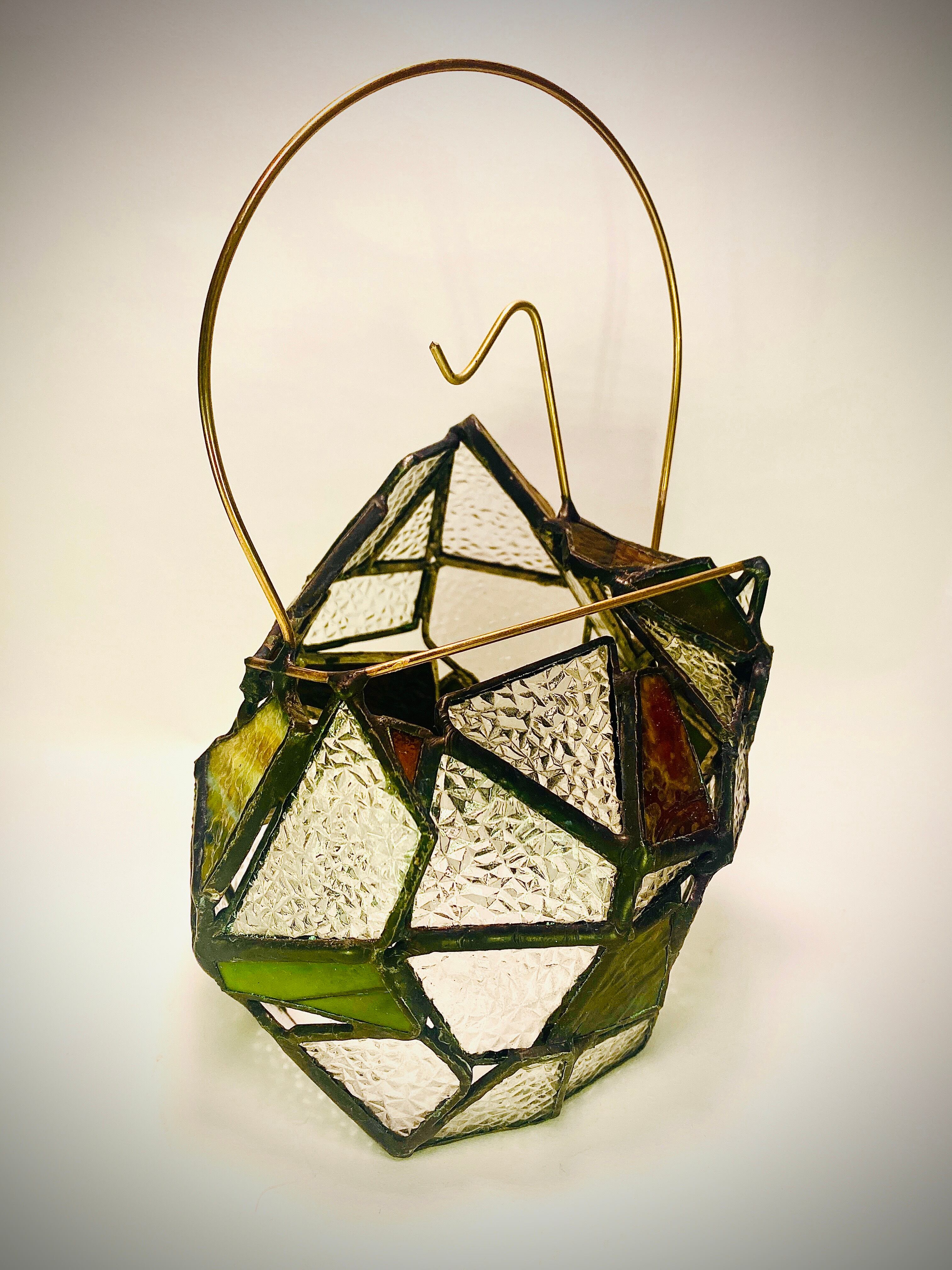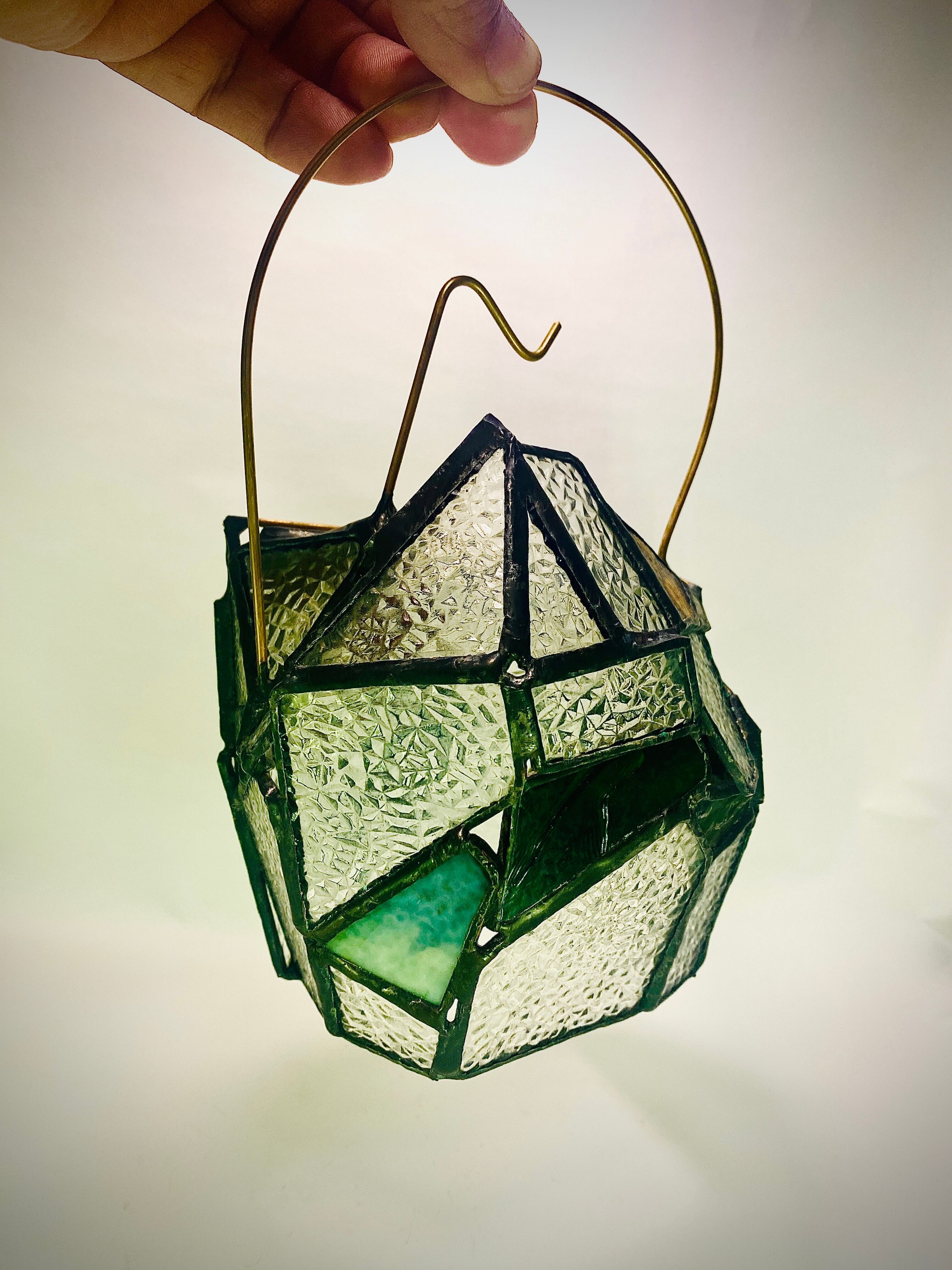 昭和の時代を思い出す、当時の一般的な家庭でよくみた型板ガラス”ダイヤ”を使用した、ステンドグラスのランタンシェードです。