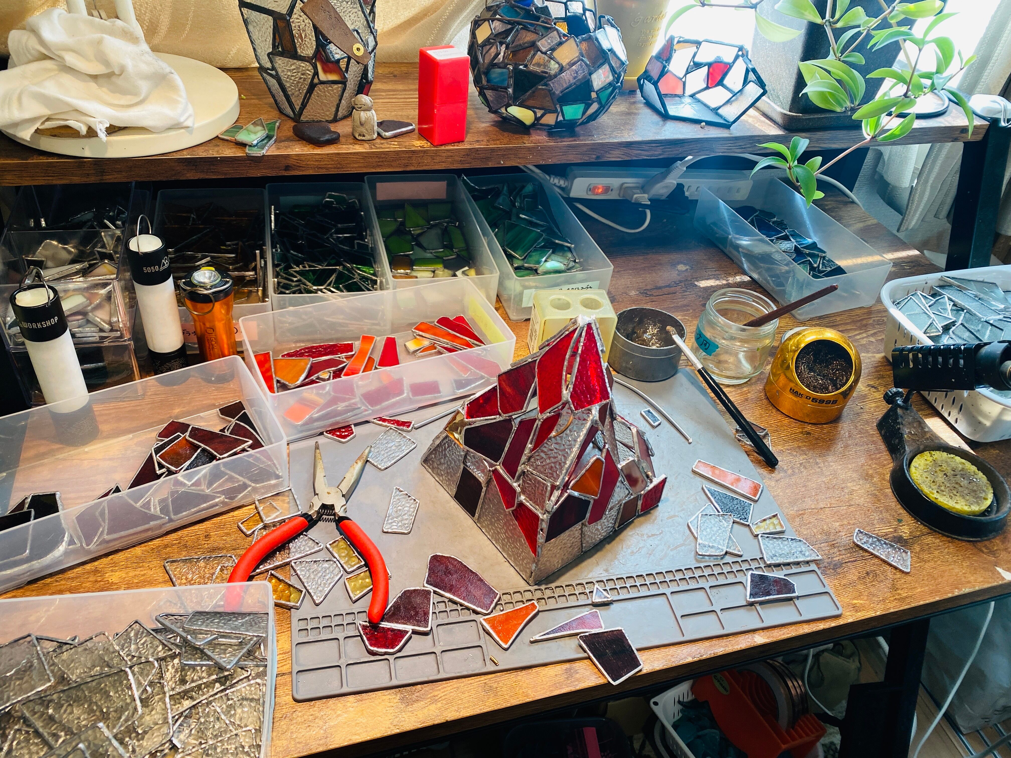 ガラス、ハンダ(すず・鉛)、真鍮針金