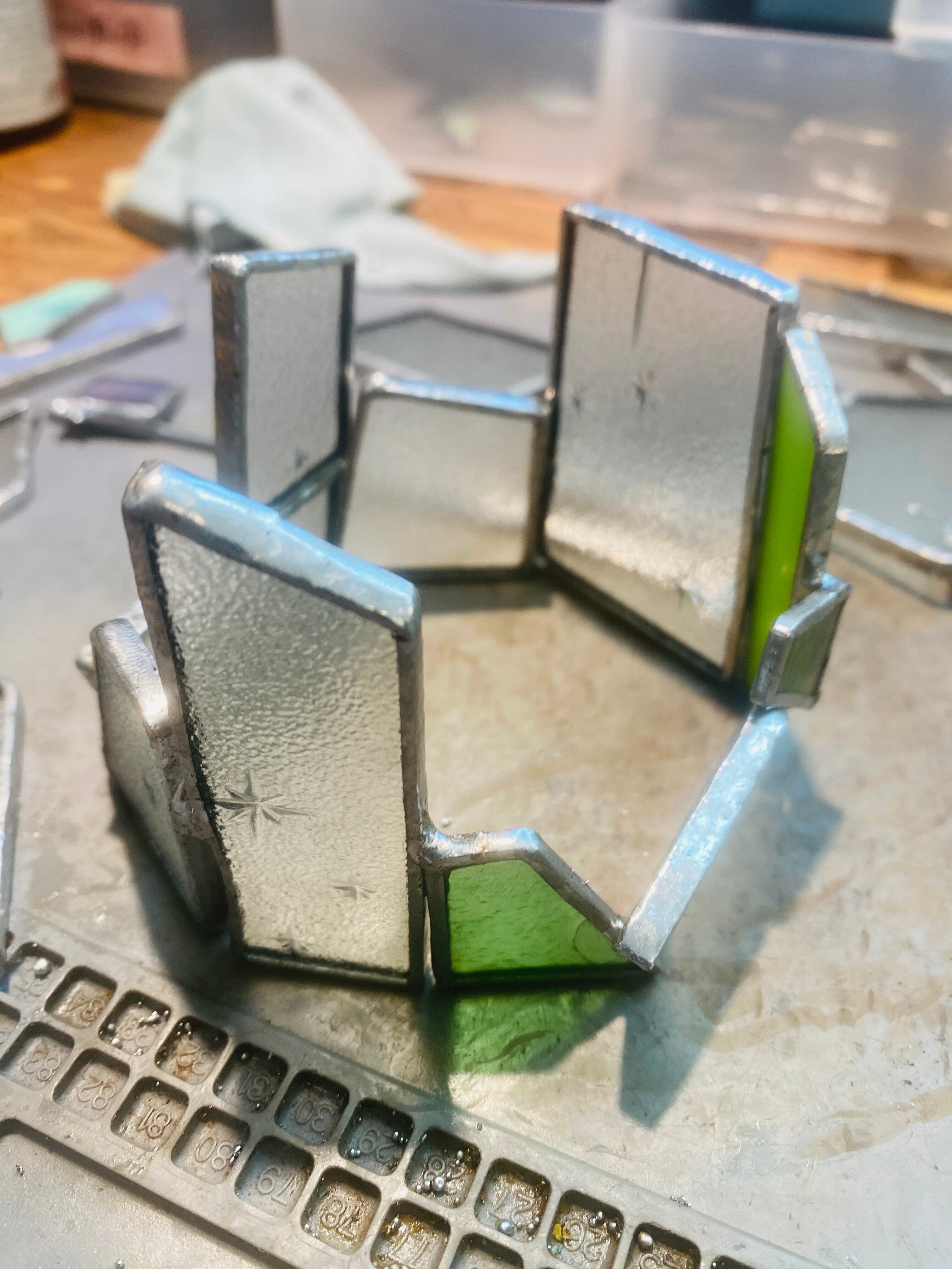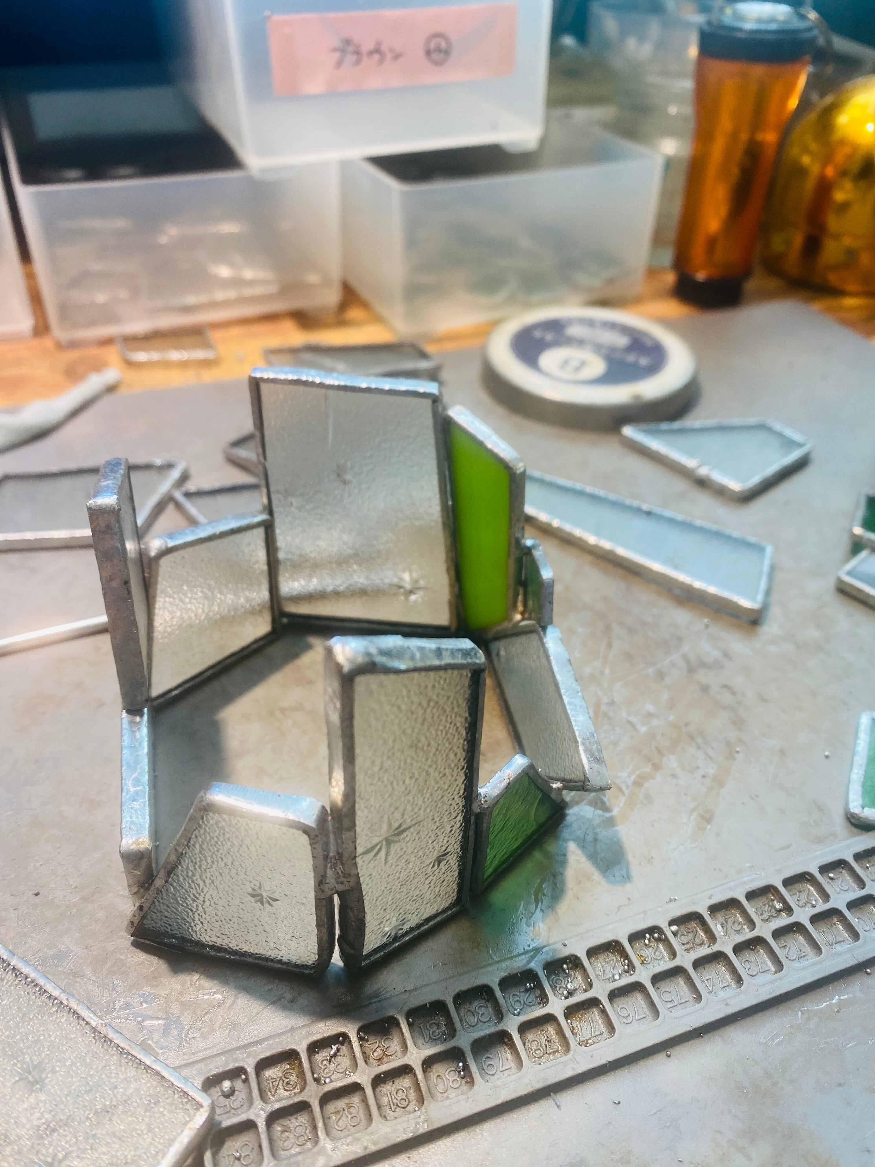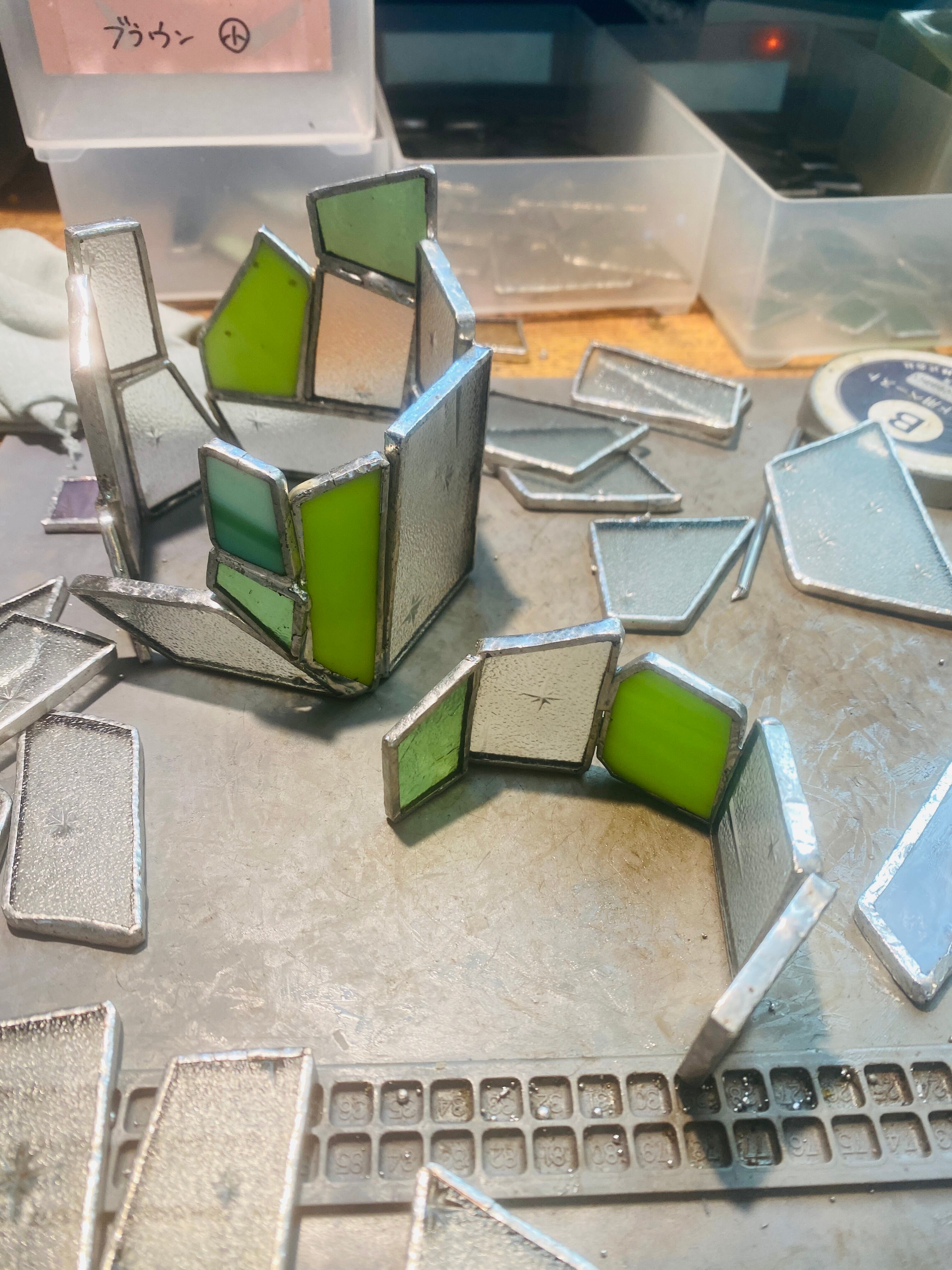 ガラス、ハンダ(すず・鉛)、真鍮針金