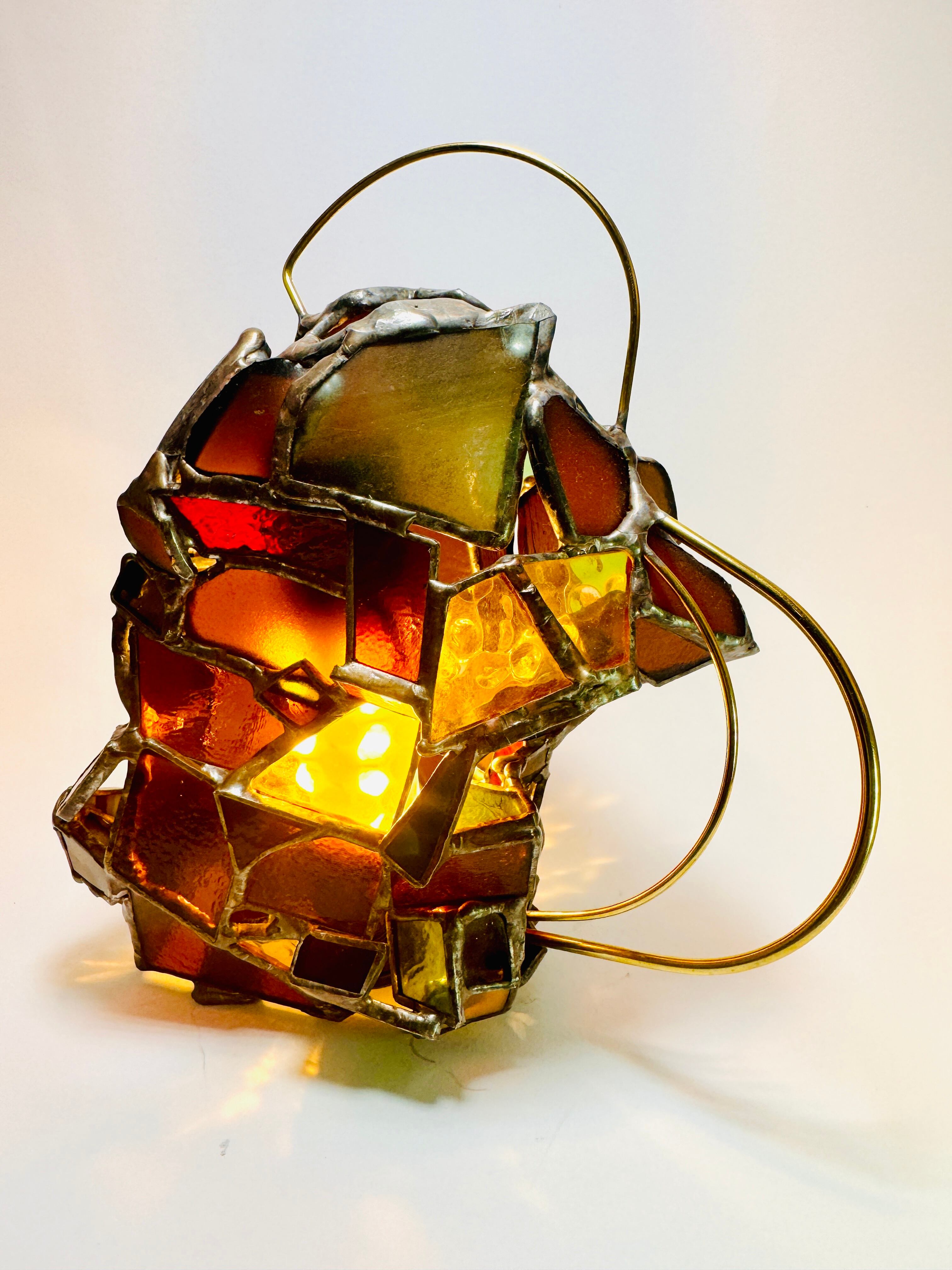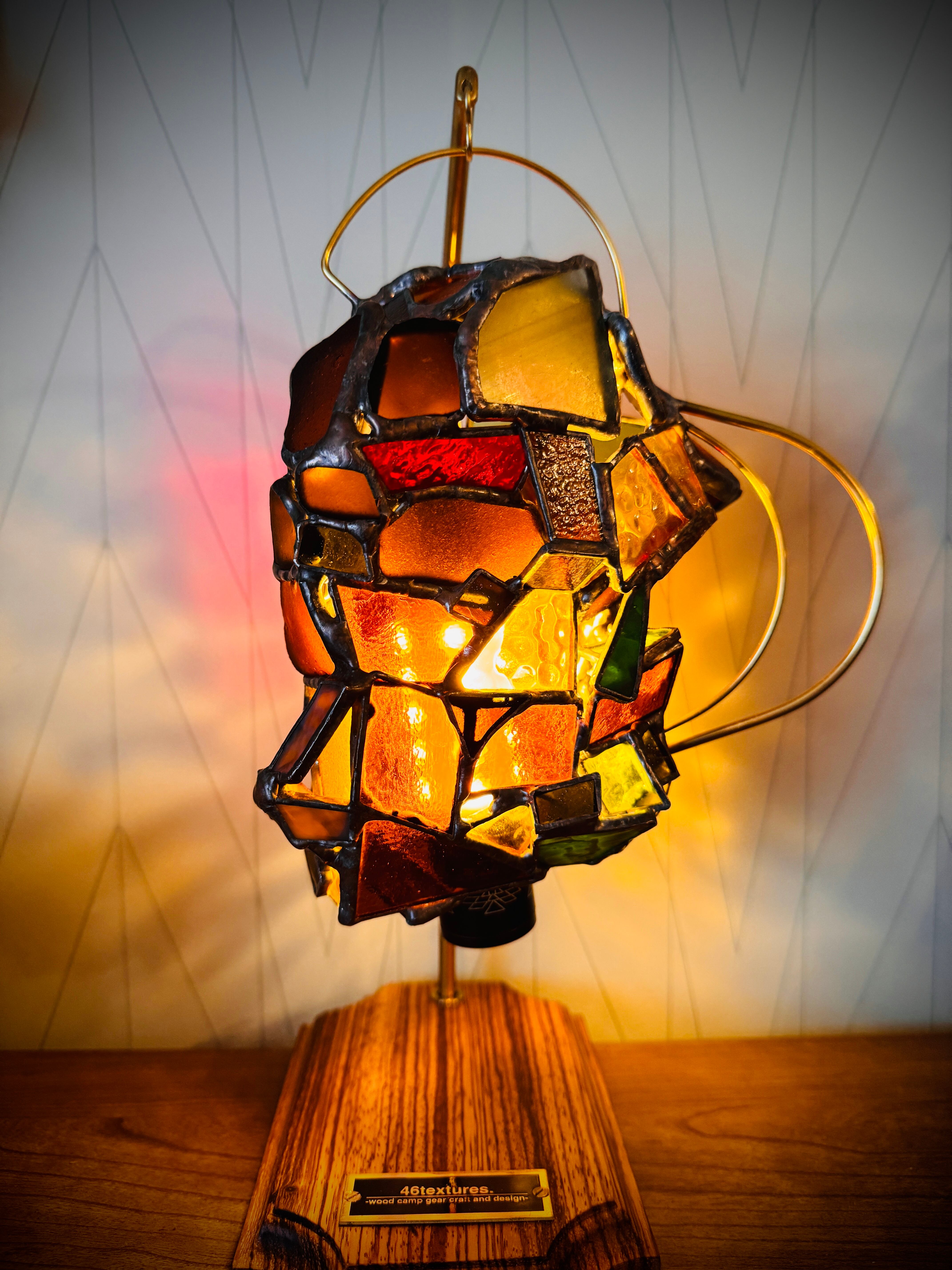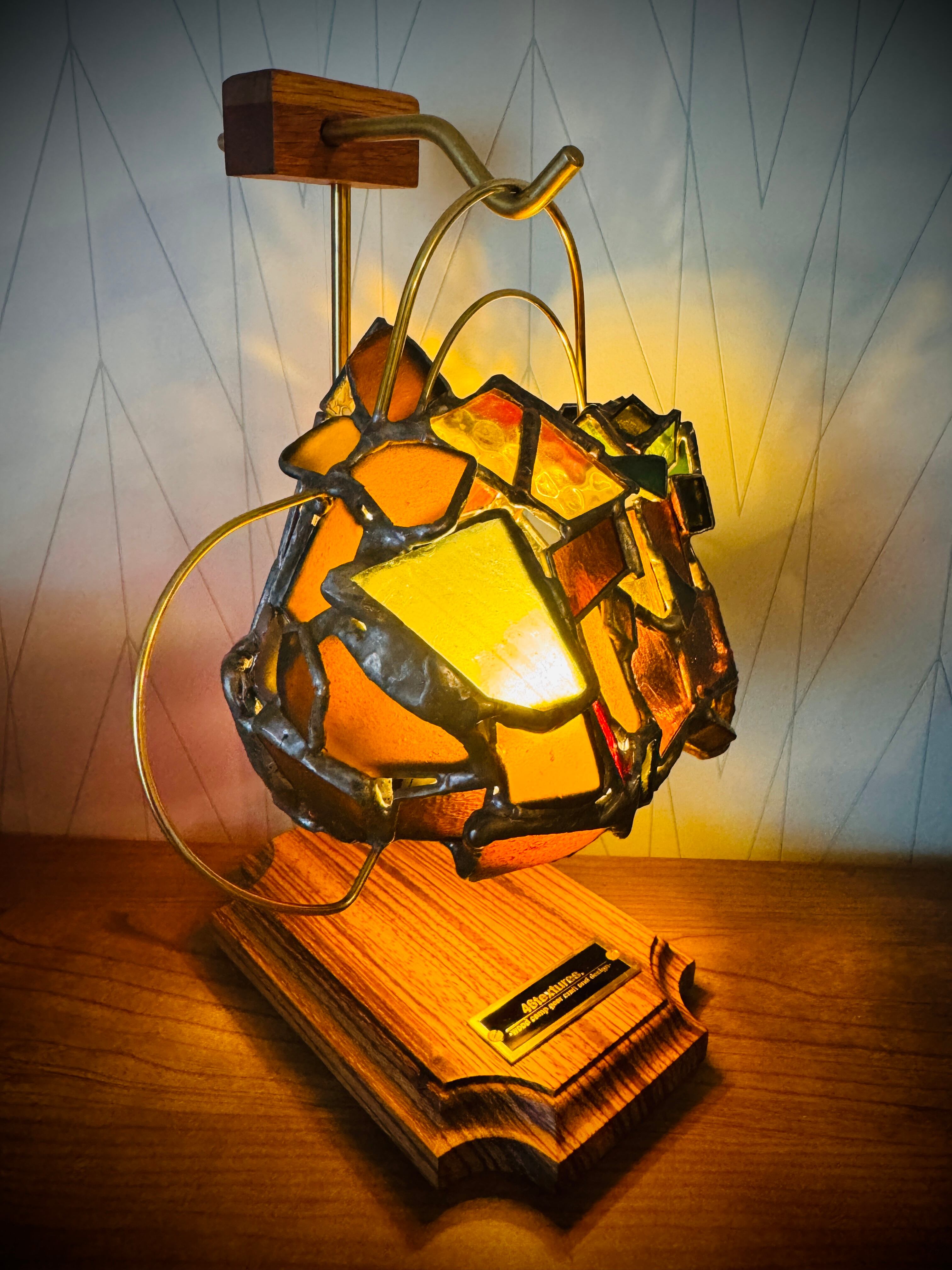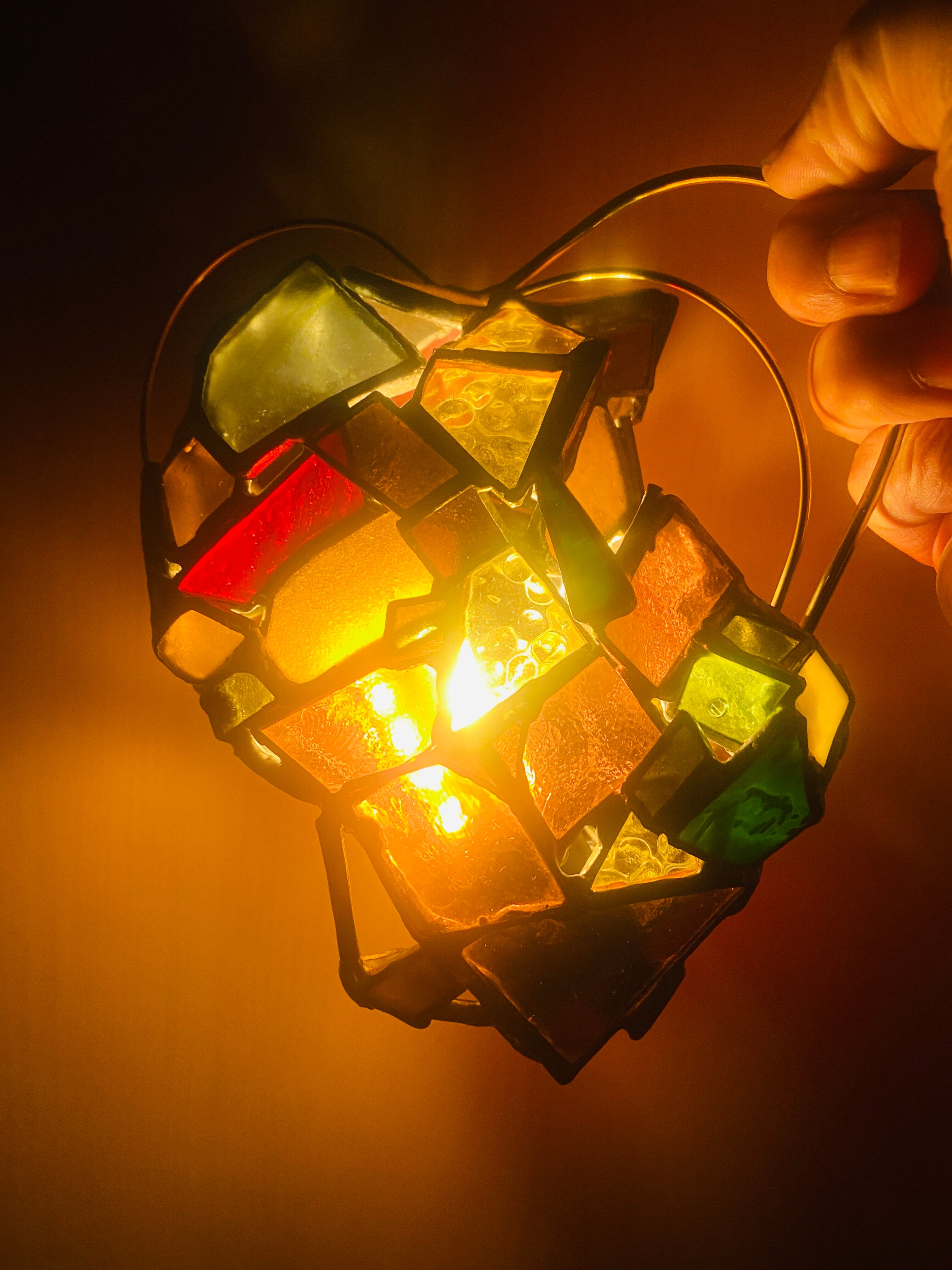 ガラスはアンバーのシーグラスの周りに、少し財宝チックなガラスを配置。なんとも色鮮やかかつどこかアンニュイな雰囲気なりました。