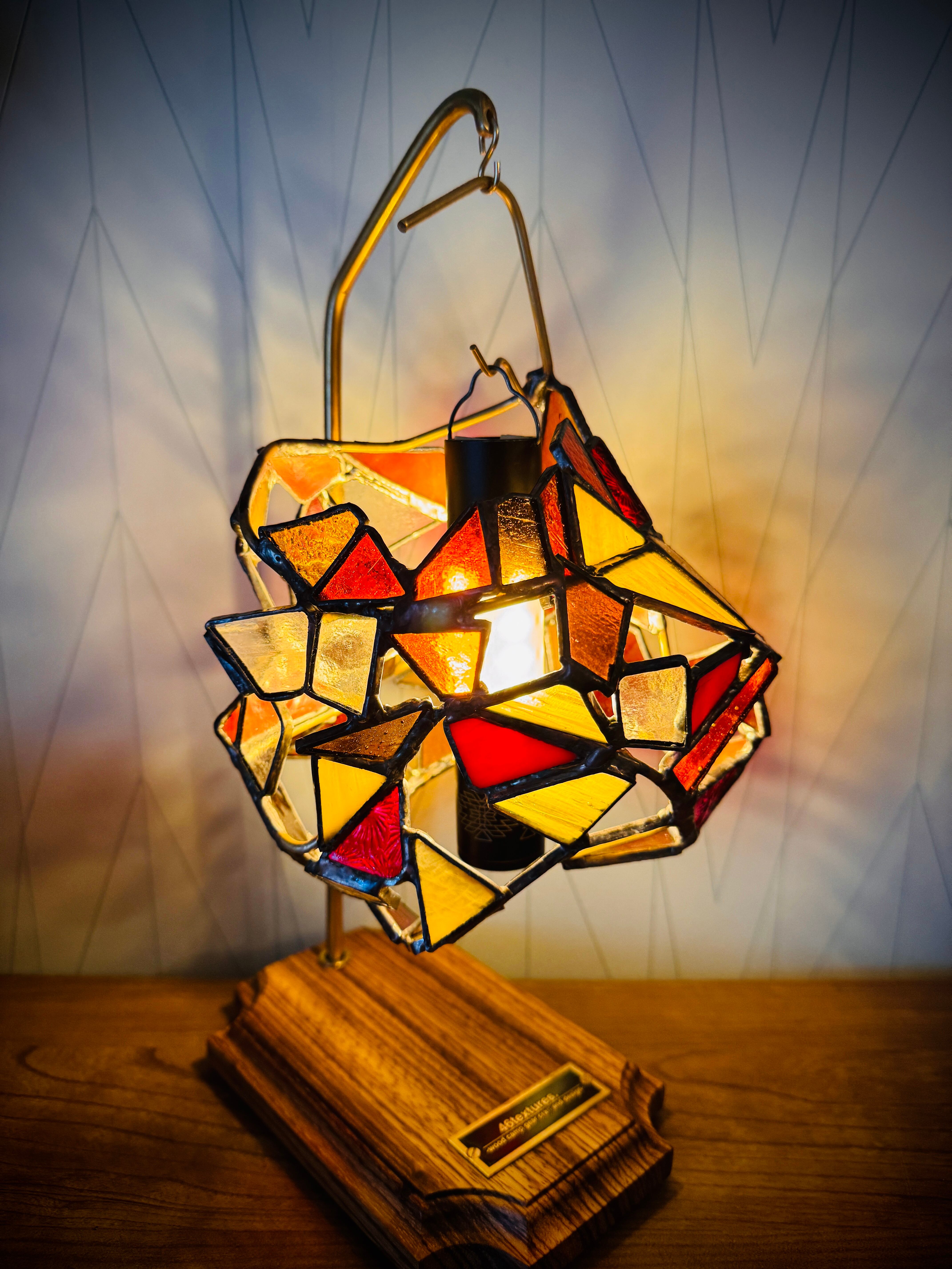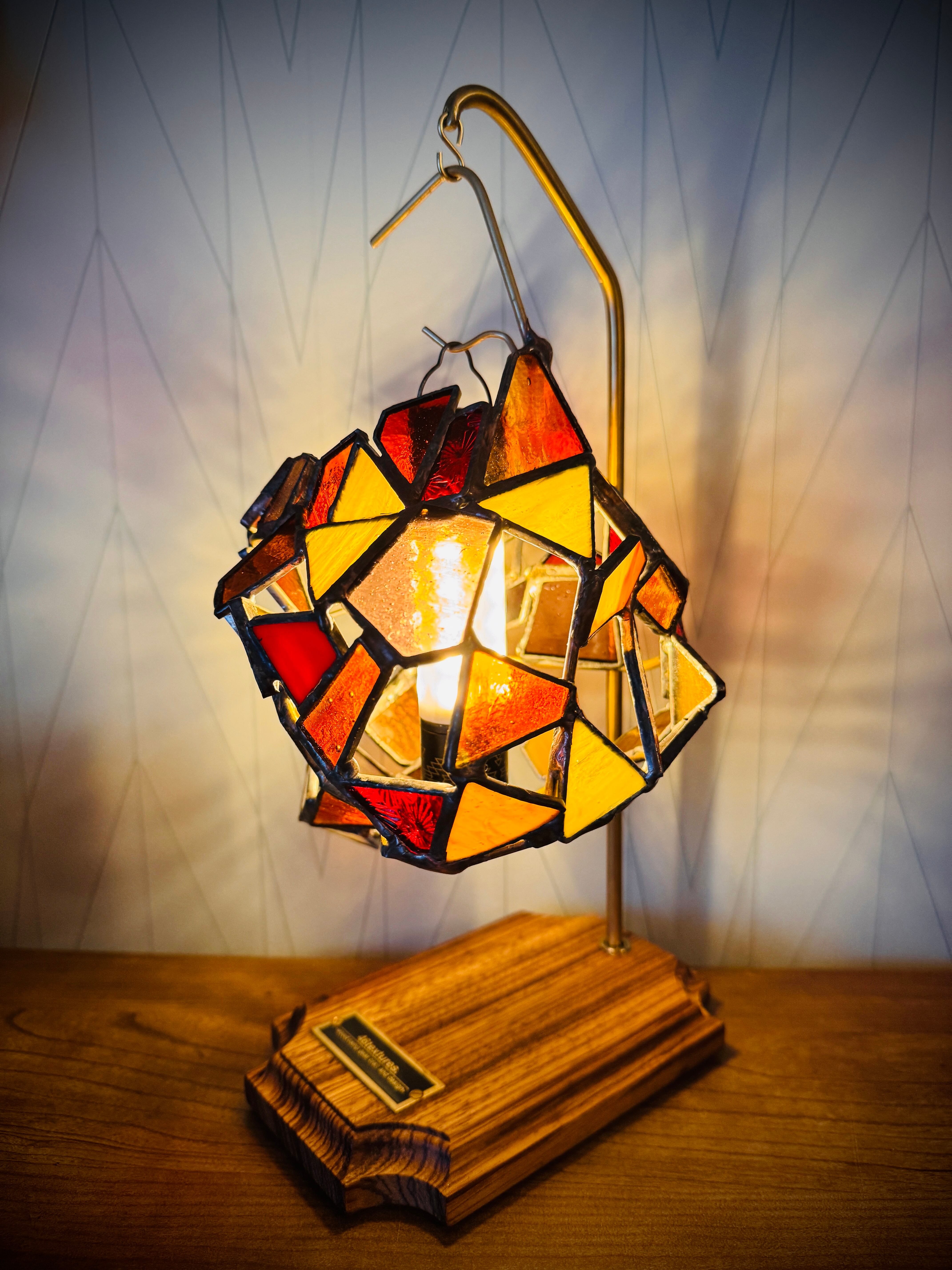 少し涼しい夕焼けの空を彷彿とさせるような、少し大きめのステンドグラスシェードです。