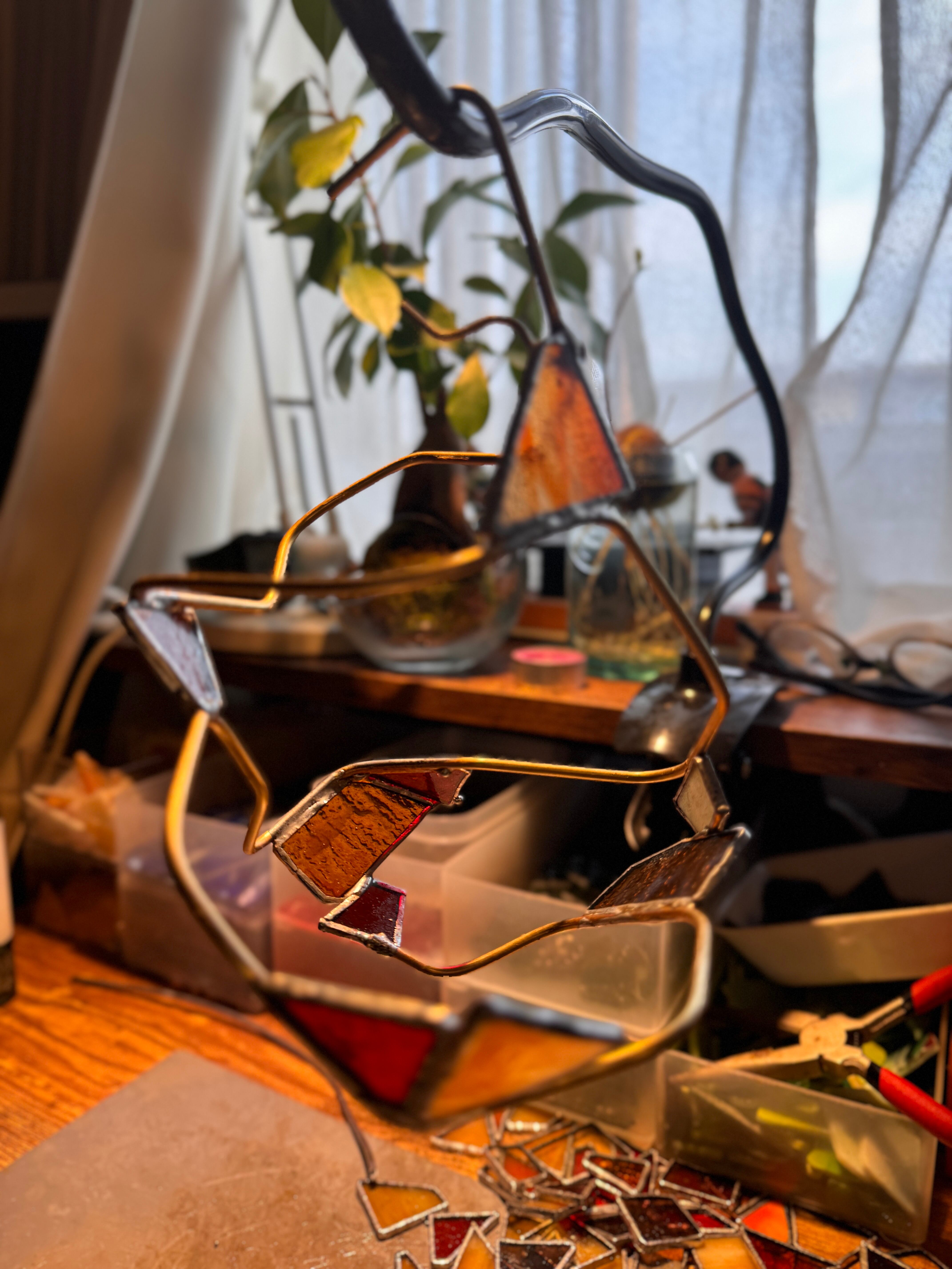 ガラス、ハンダ(すず・鉛)、真鍮針金