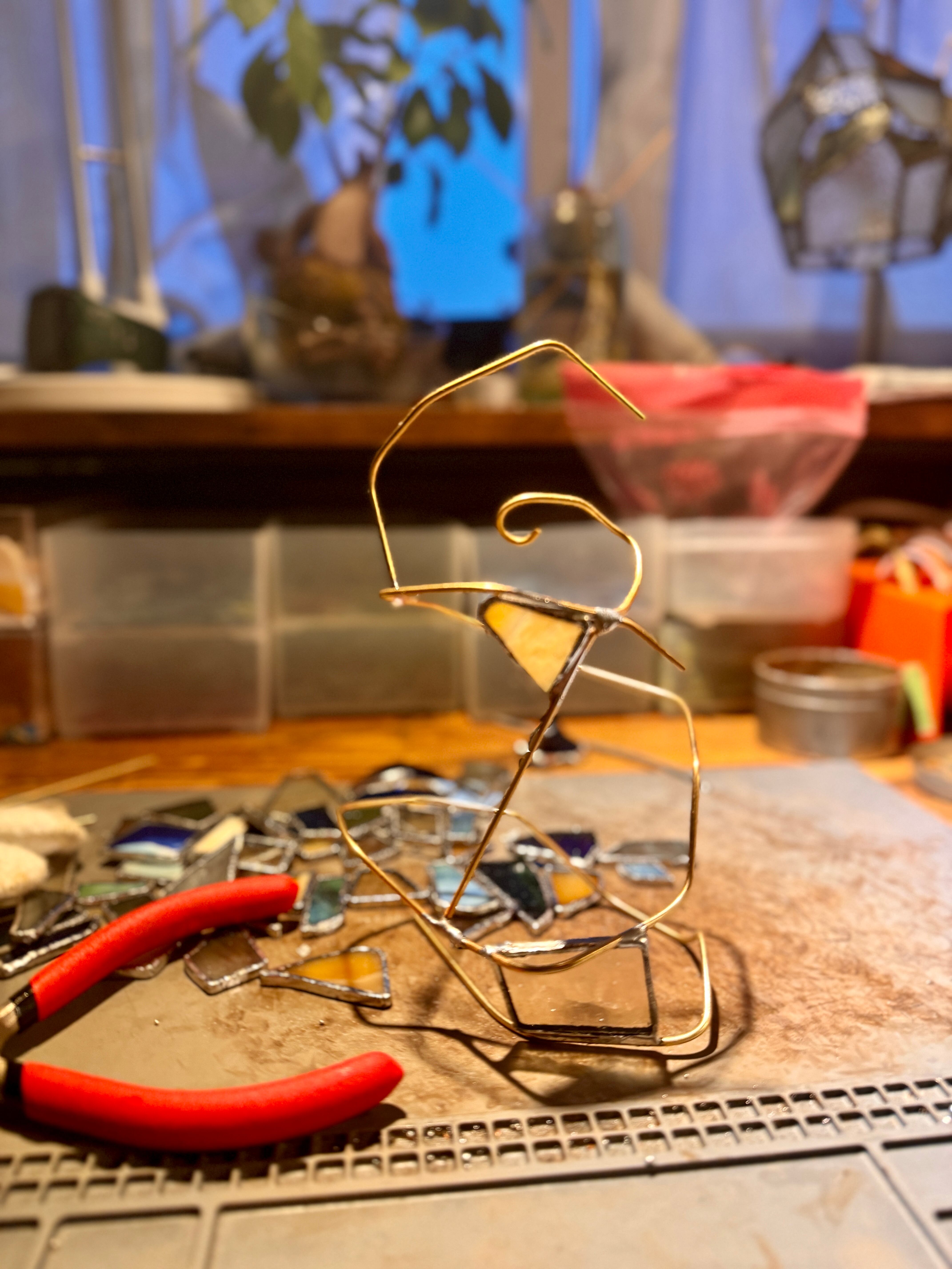 ガラス、ハンダ(すず・鉛)、真鍮針金