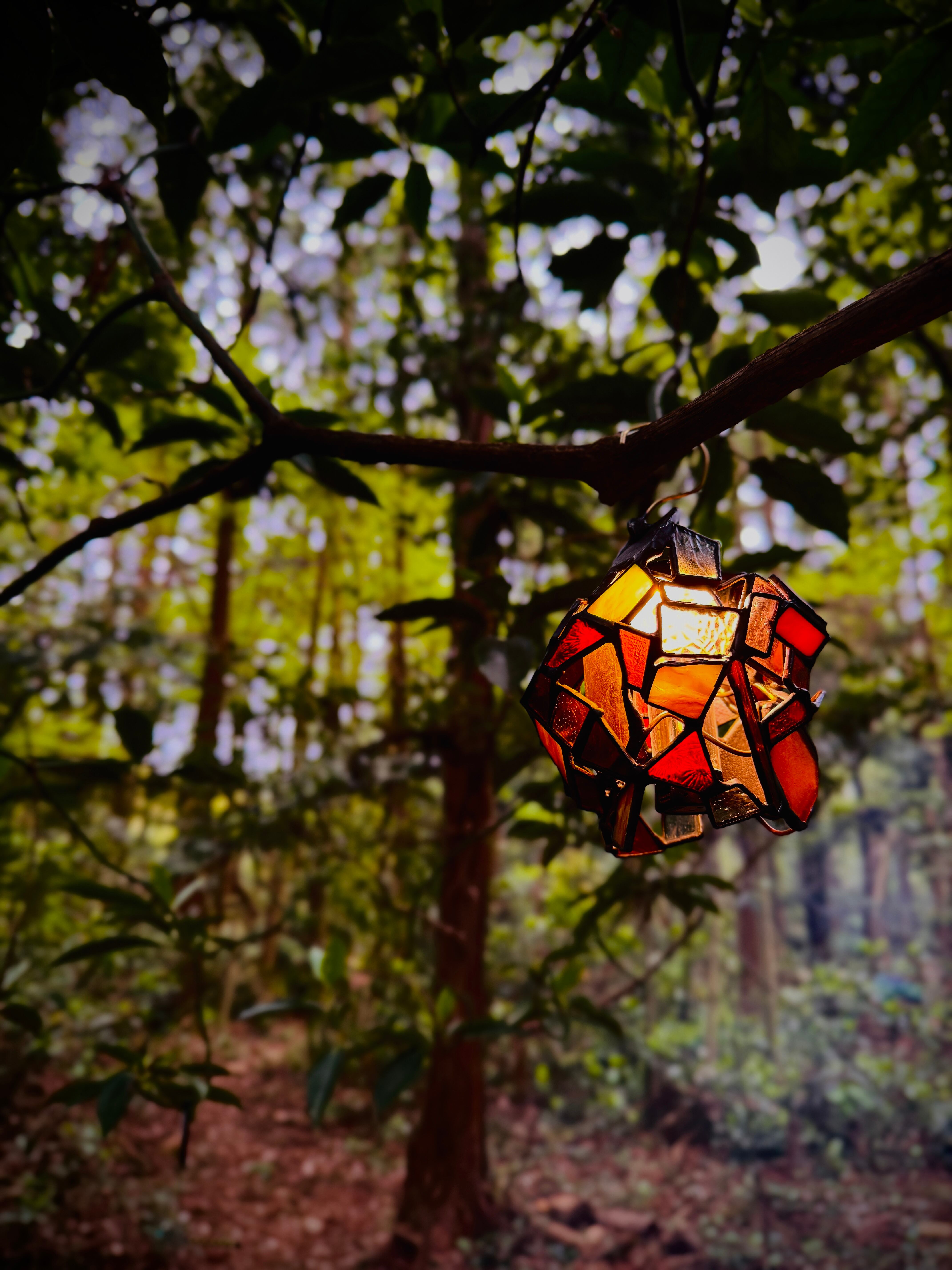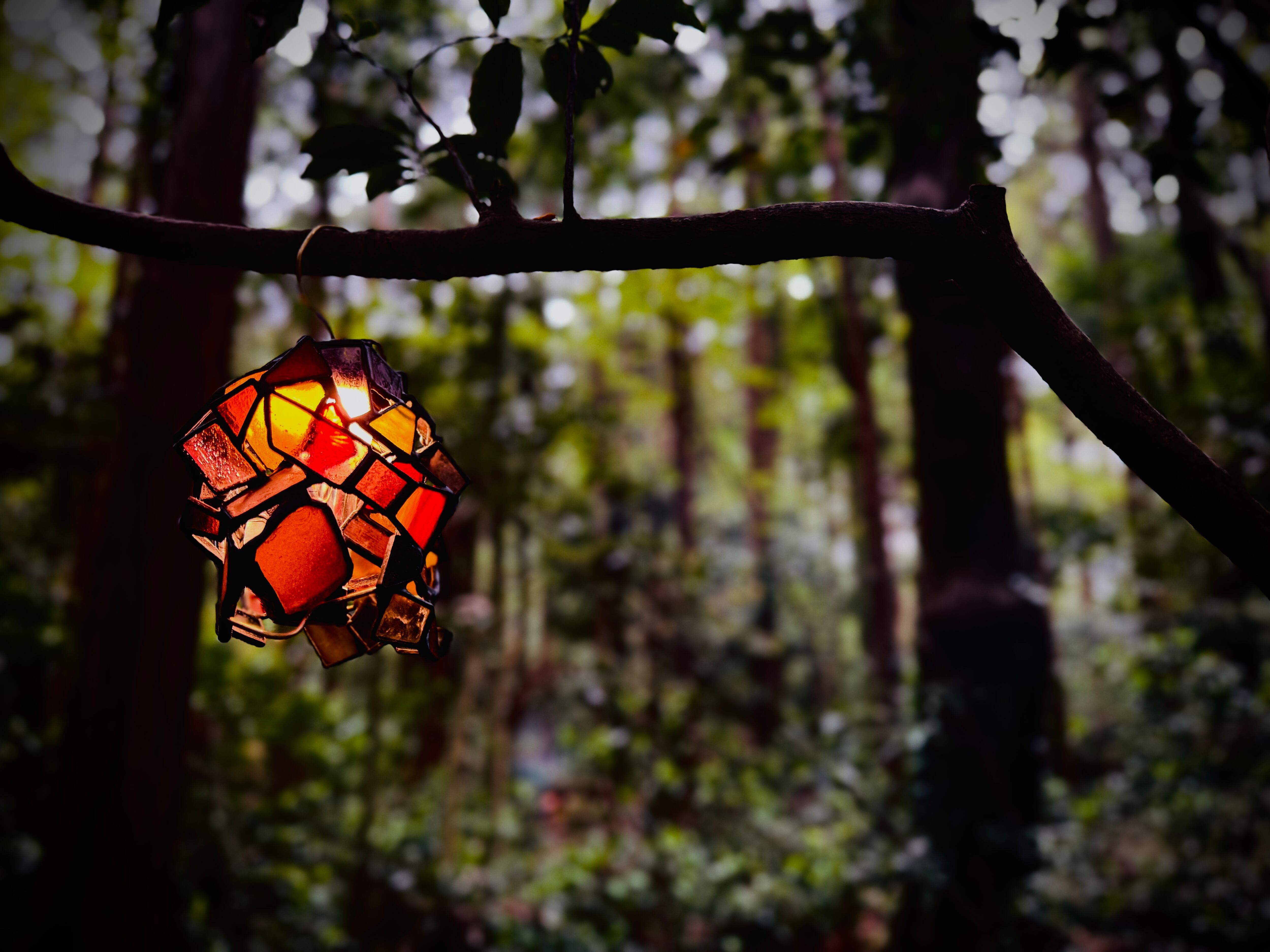 小型ながら、ガラスを幾重にも重ねて包み込むように組み立てているため、