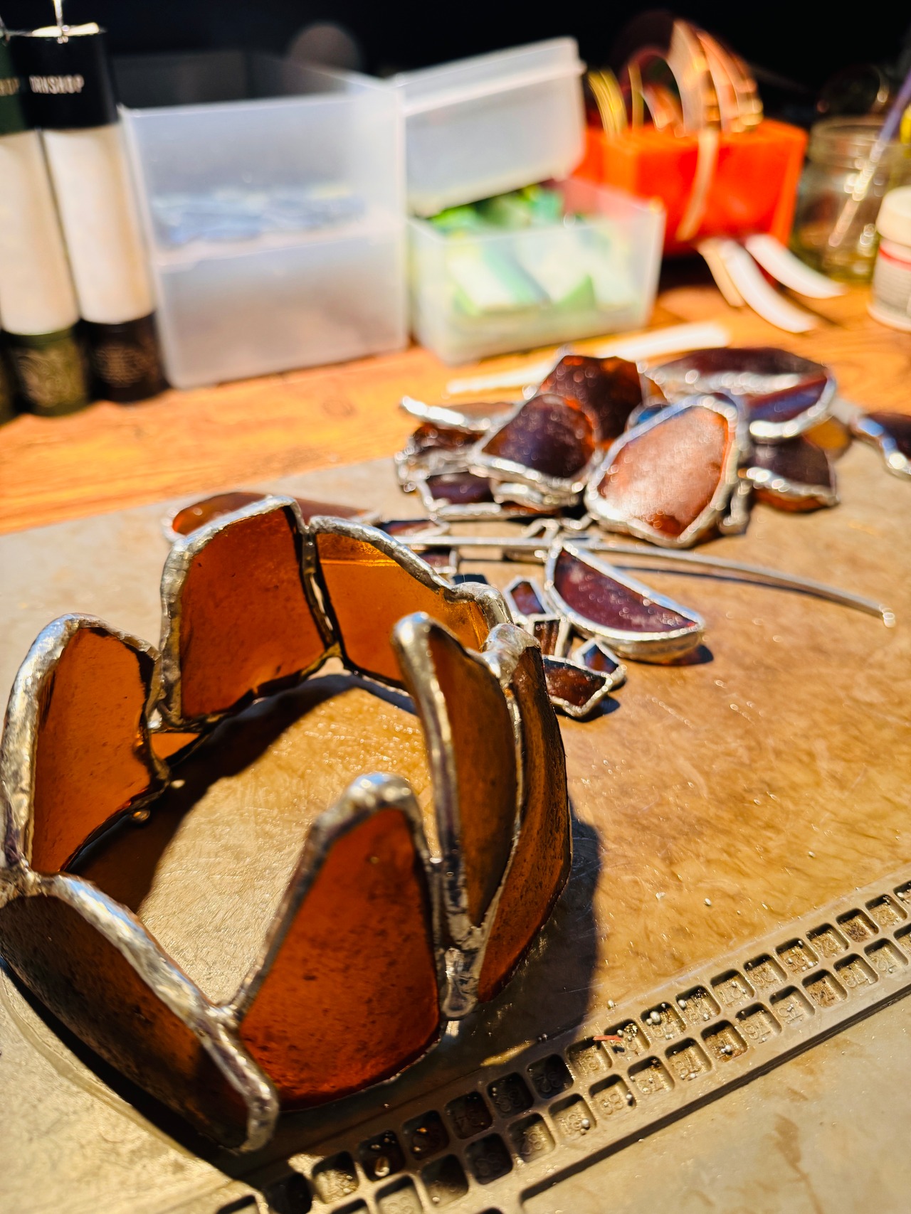 ステンドグラスは、ステンドグラス専用のハンダを使って制作しております。