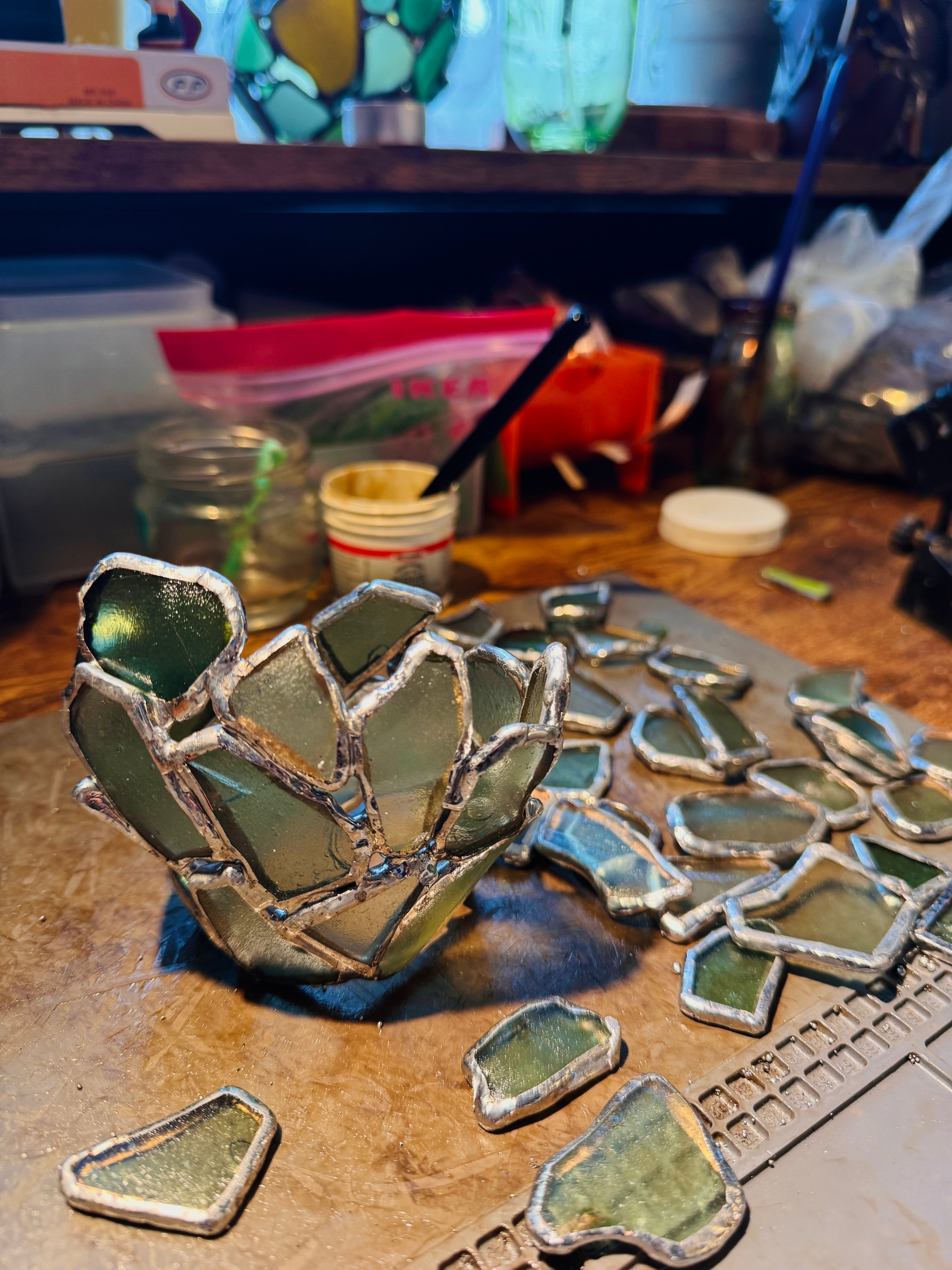 ステンドグラスは、ステンドグラス専用のハンダを使って制作しております。