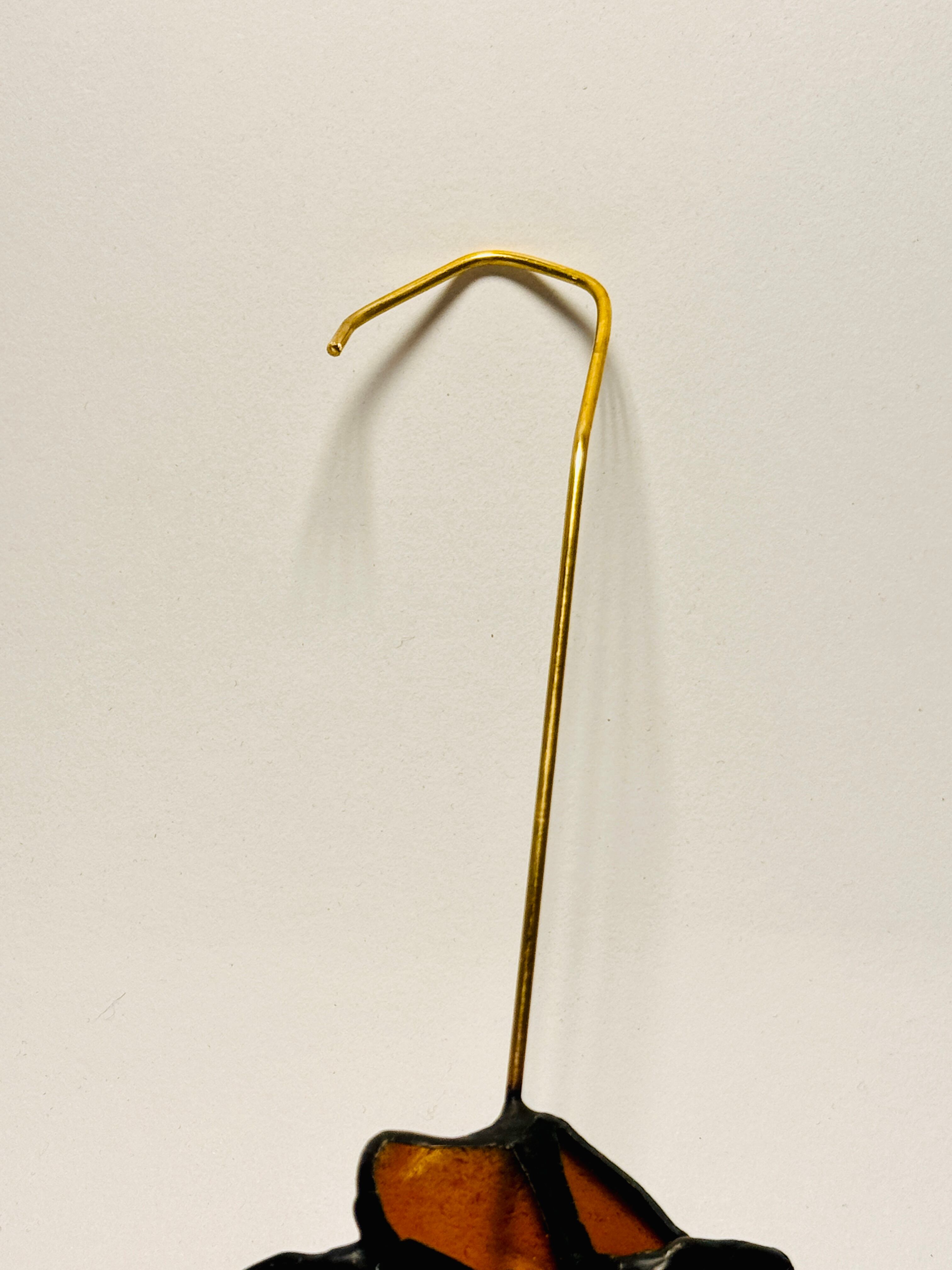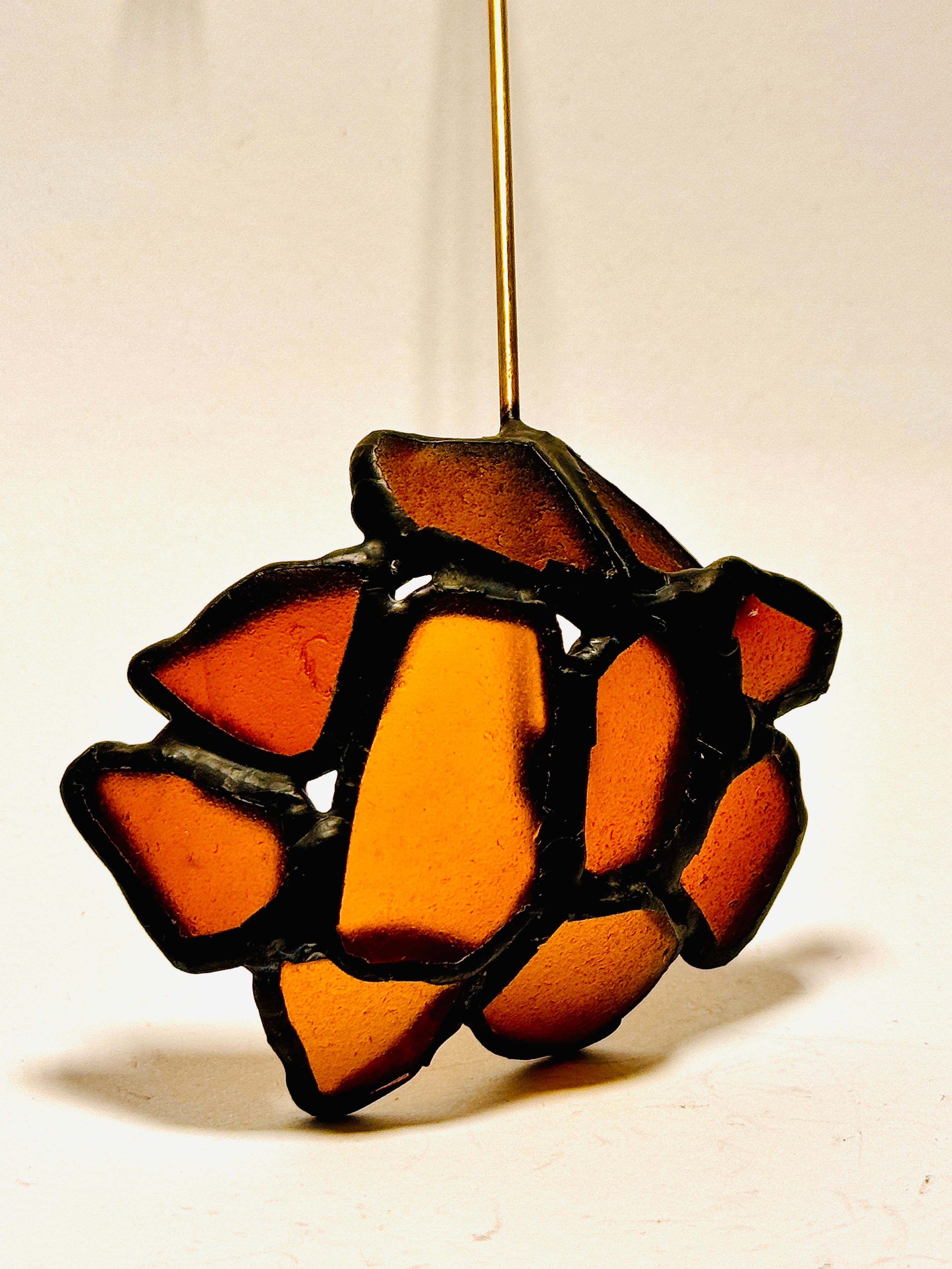 琥珀の飴玉の名の通り、琥珀色のブラウンシーグラスを10枚繋ぎ合わせて、真鍮の柄をつけました。