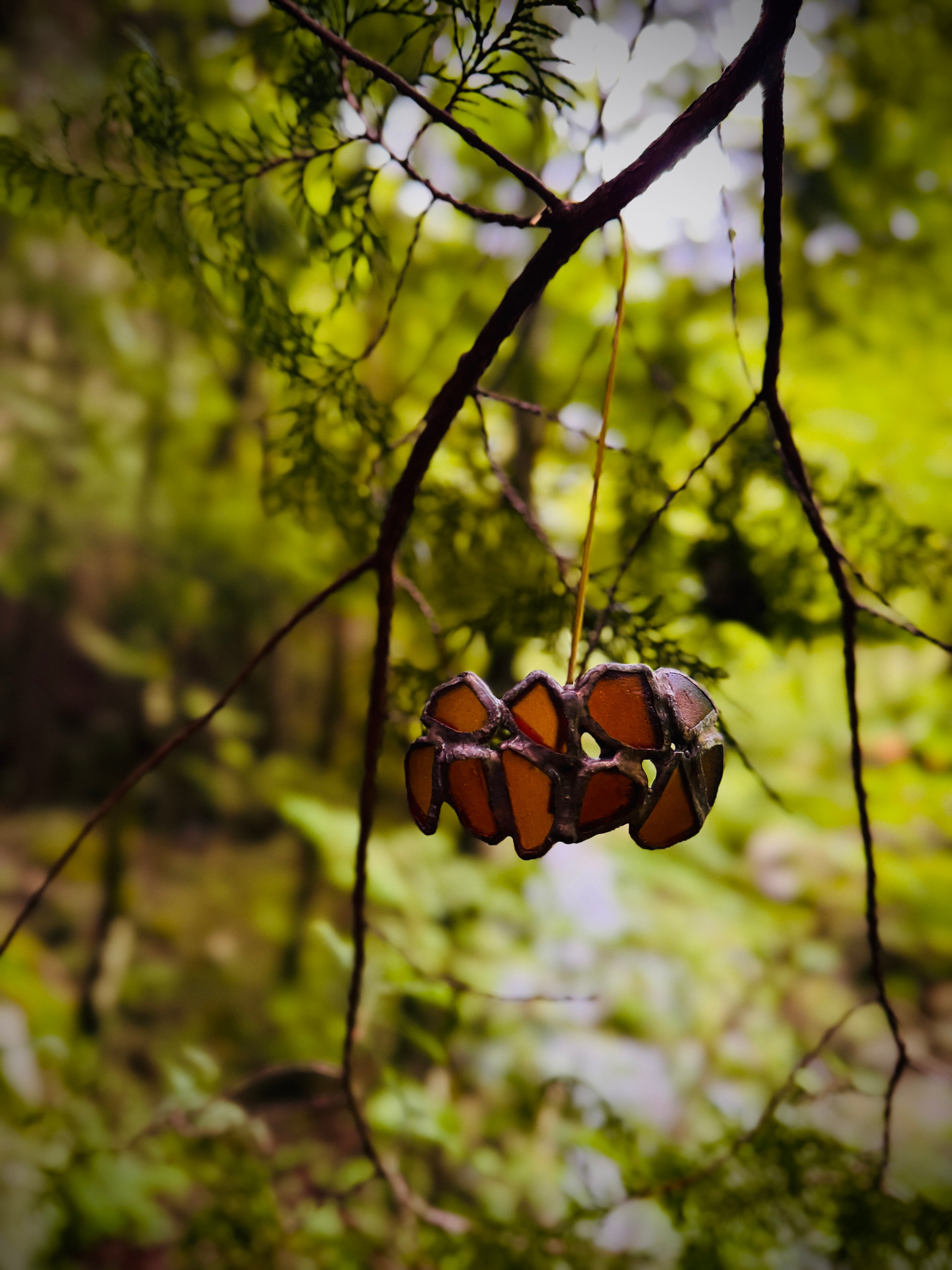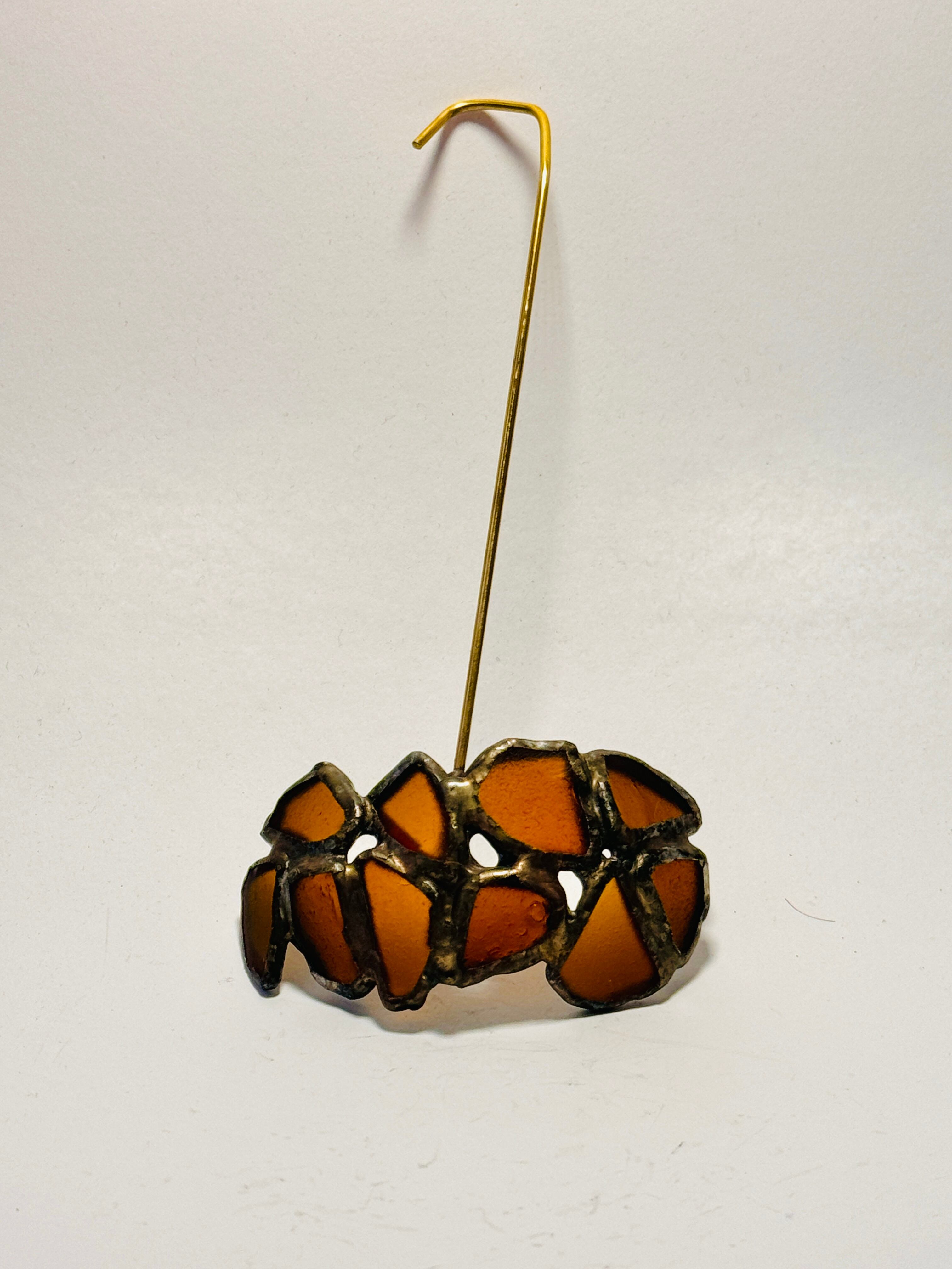琥珀の飴玉の名の通り、琥珀色のブラウンシーグラスを10枚繋ぎ合わせて、真鍮の柄をつけました。