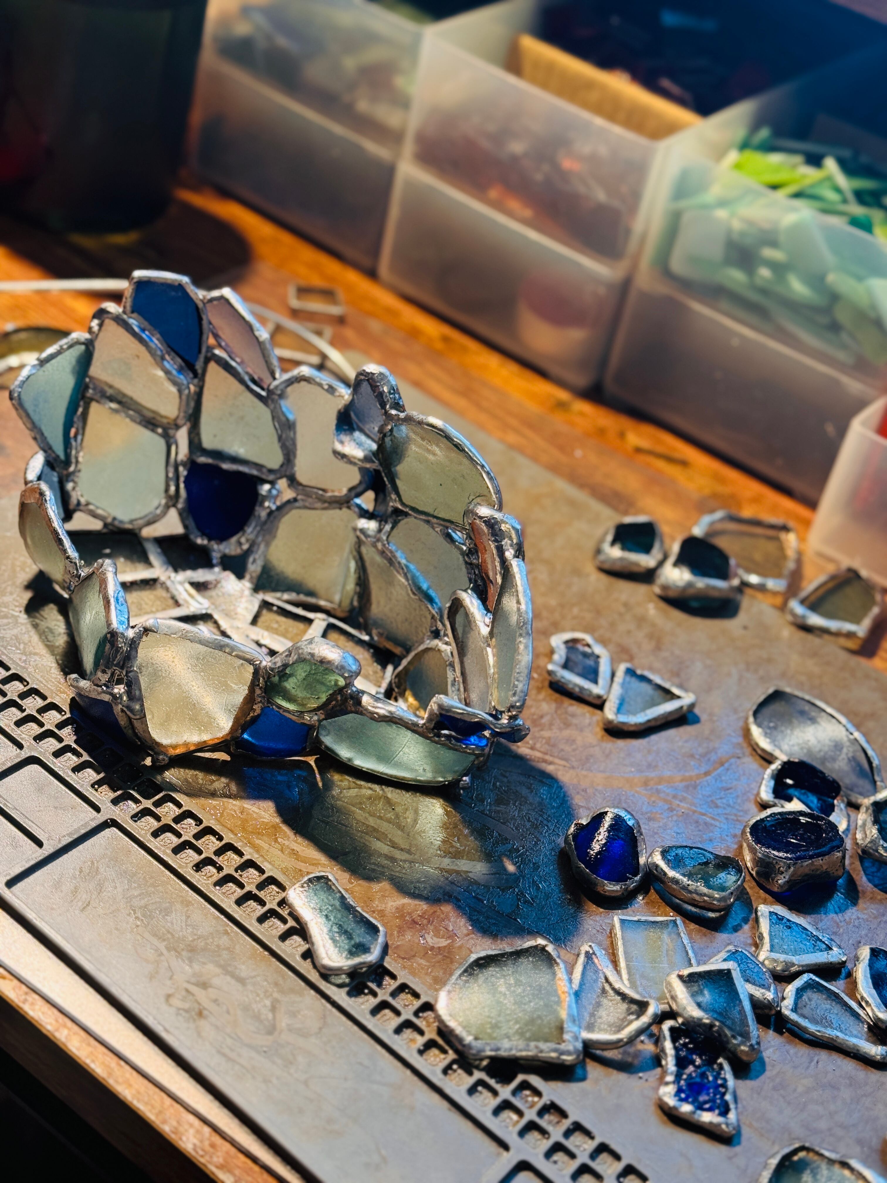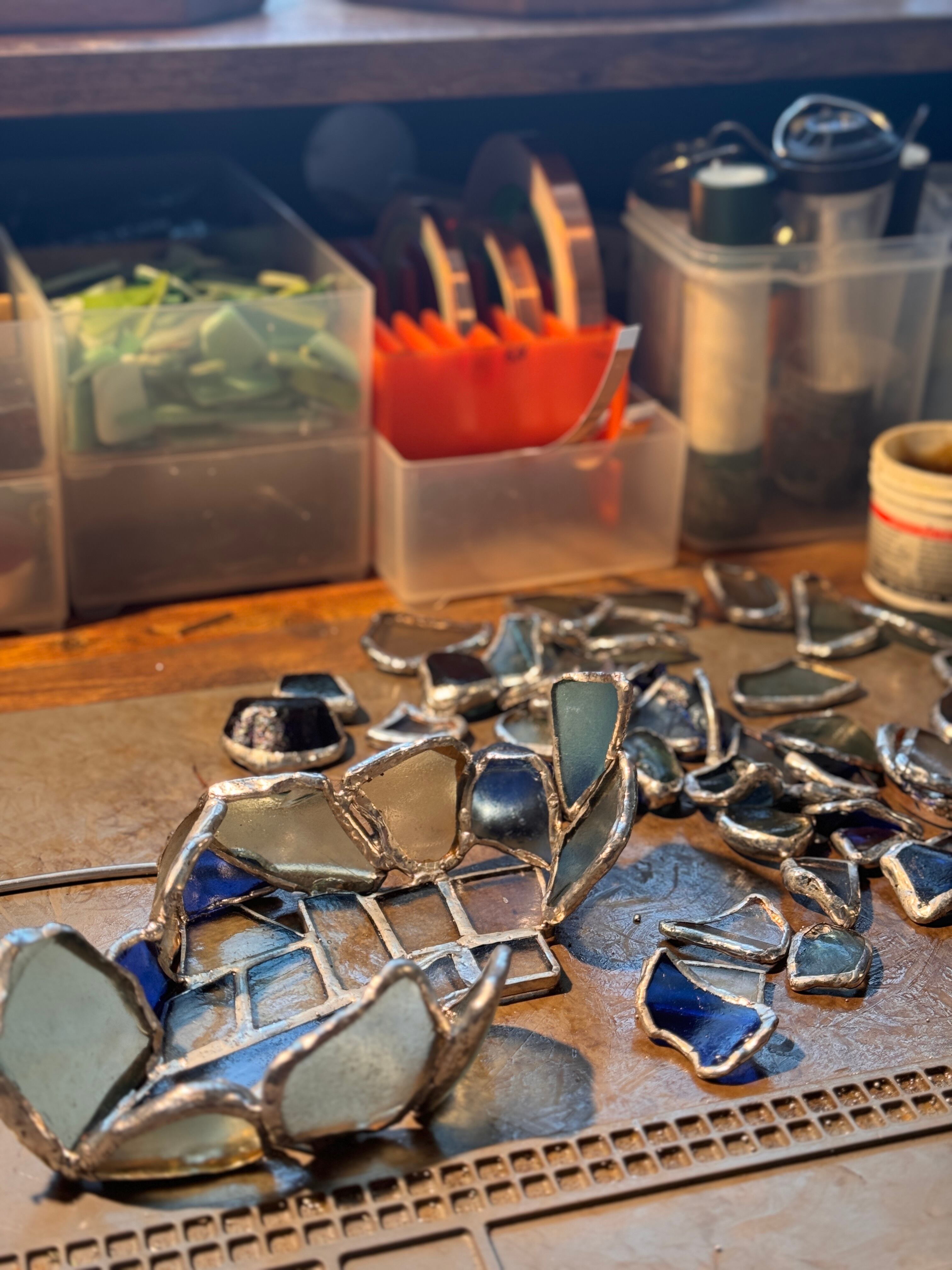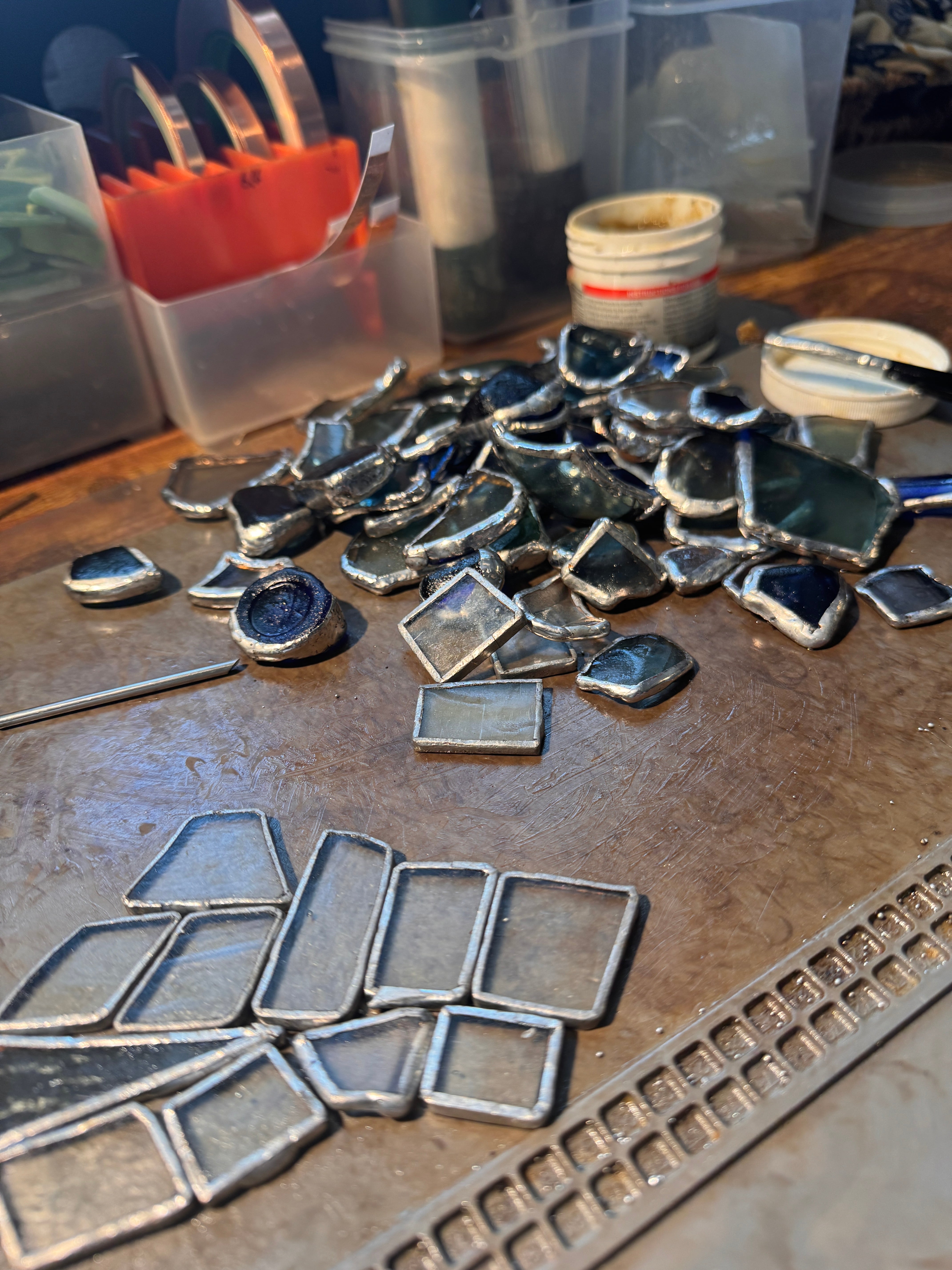 ステンドグラスは、ステンドグラス専用のハンダを使って制作しております。