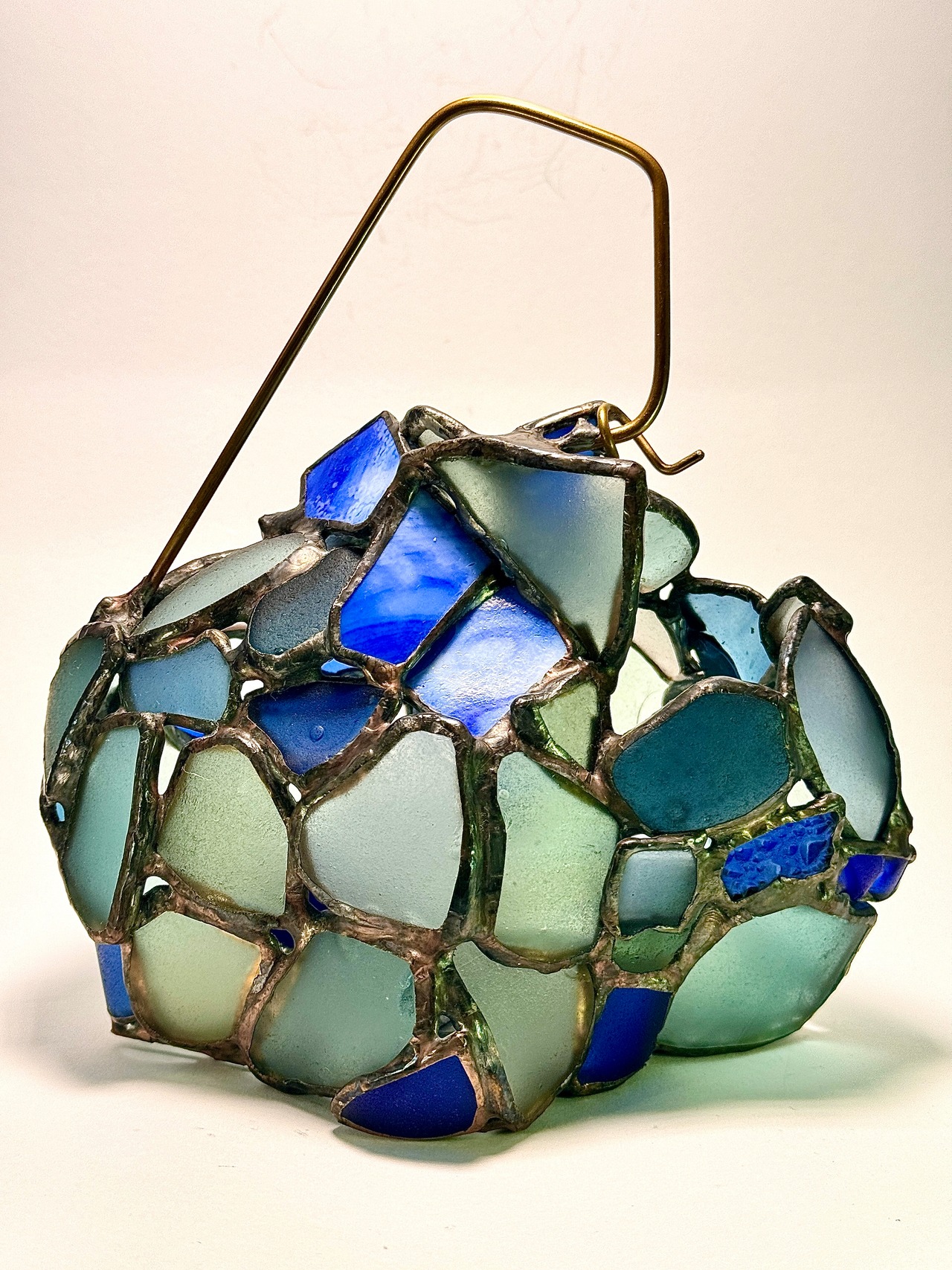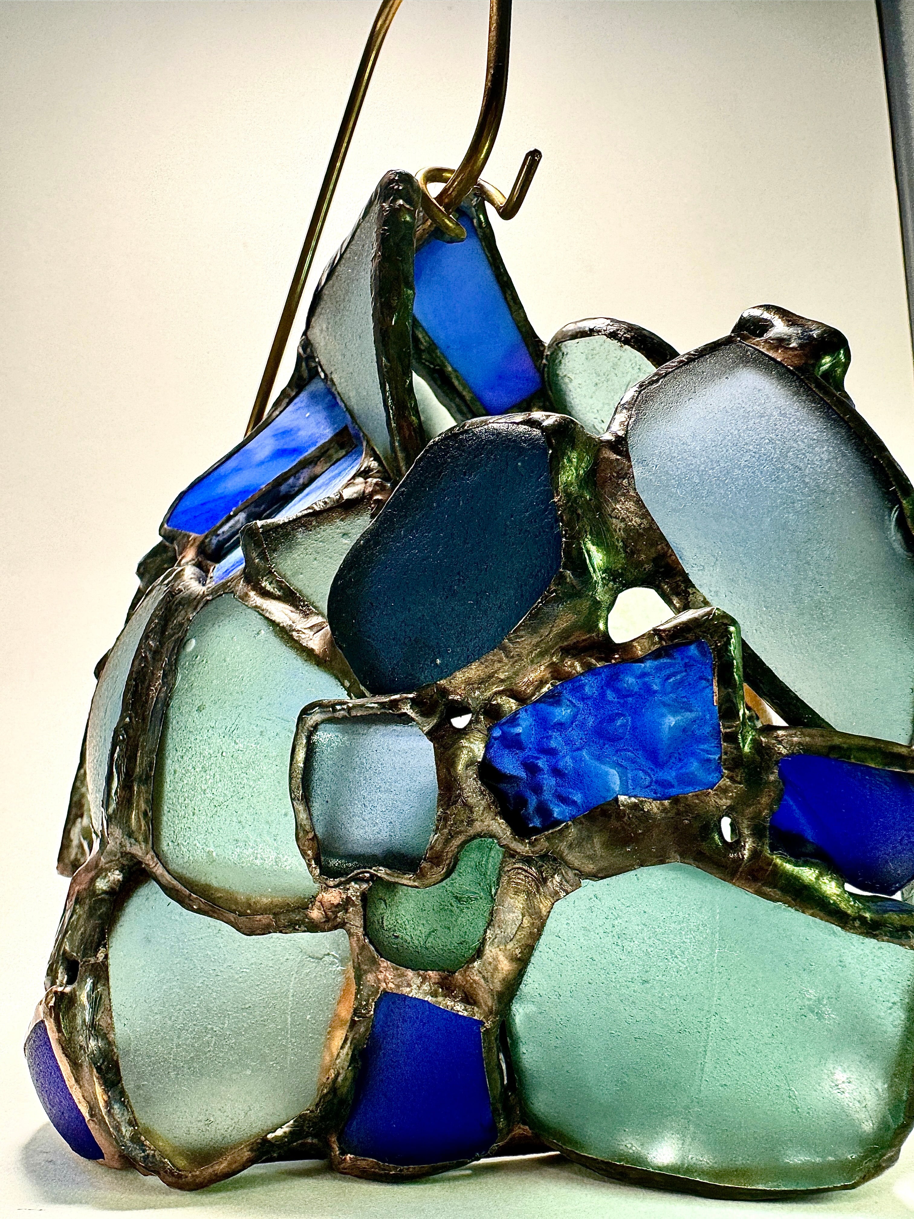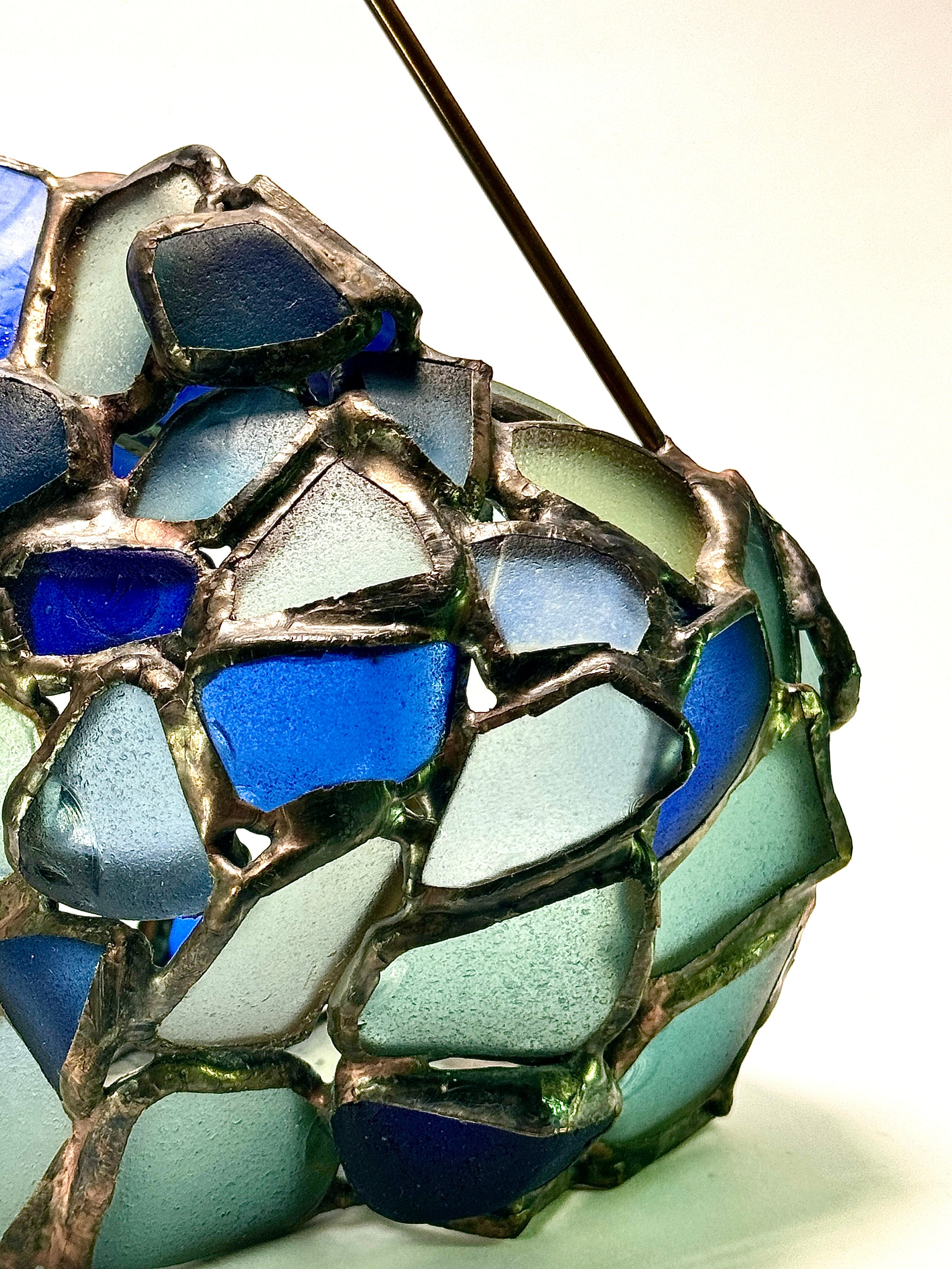 ブルー・アクア系のシーグラスを使ったステンドグラスのシェードです。
