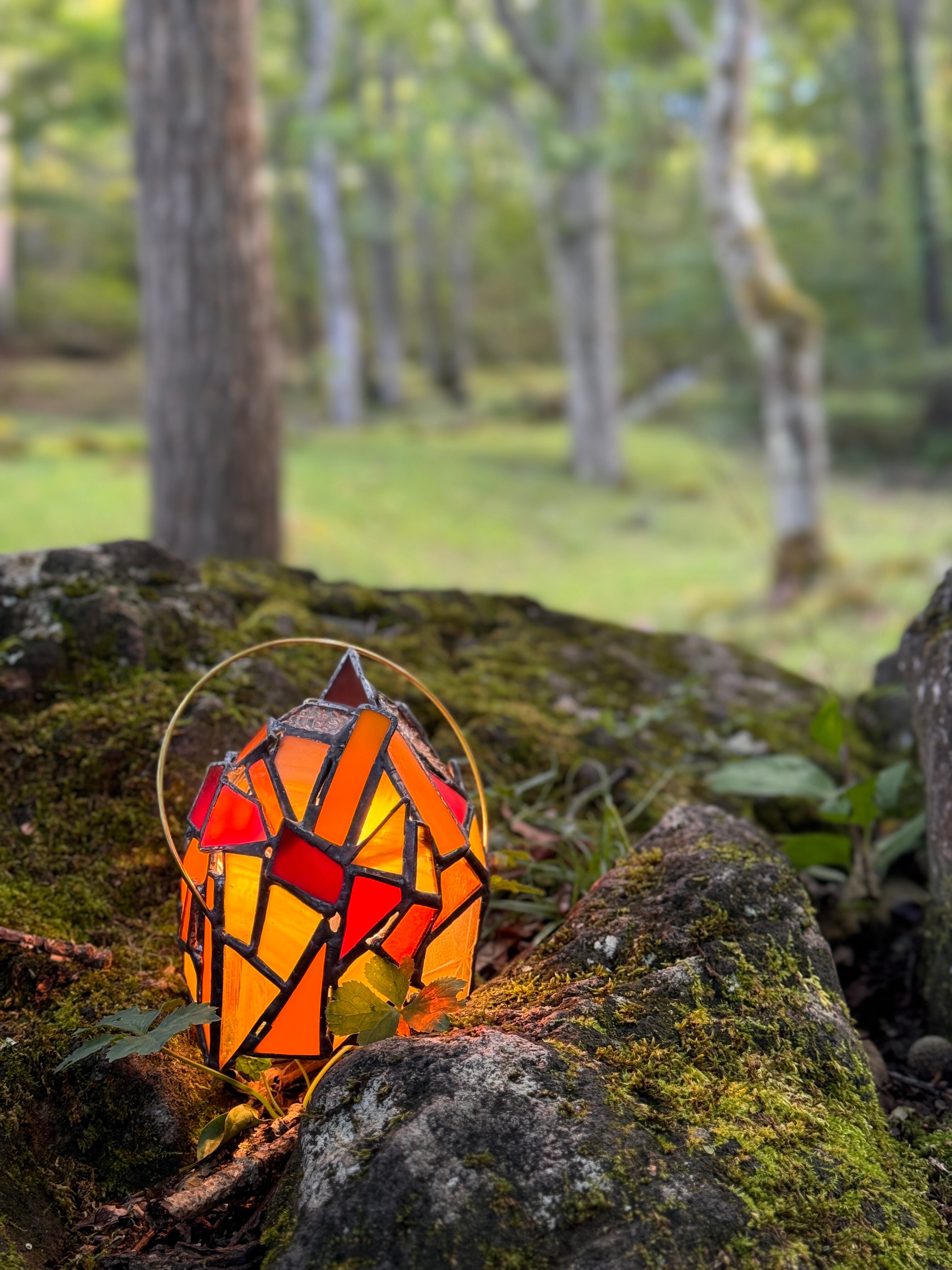 ハンダ部分は時間の経過と共に色が褪せてきます。艶出し・錆止めも含め、専用のポリワックス(jujo ステンドグラス仕上げ用ポリワックス)で定期的にメンテナンスをお願いいたします。