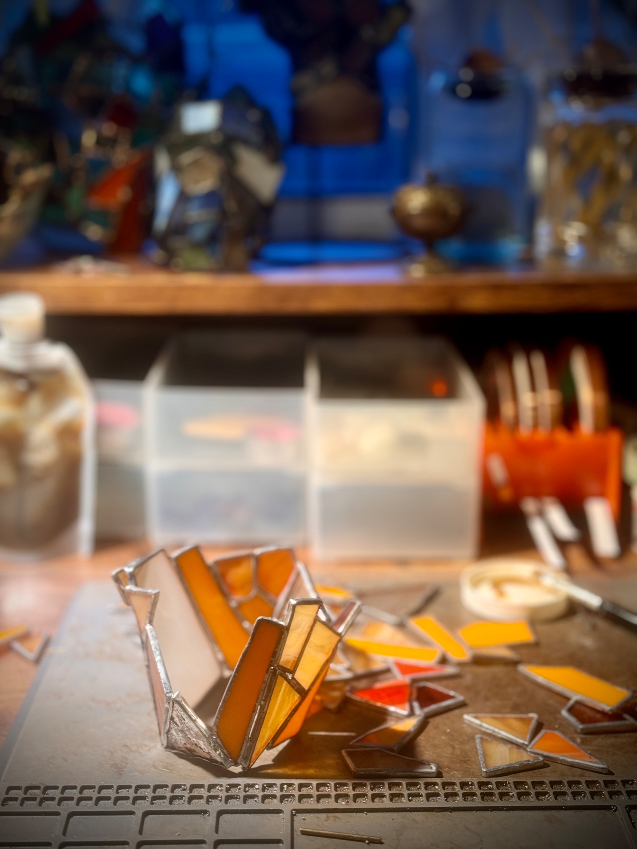 ステンドグラスは、ステンドグラス専用のハンダを使って制作しております。