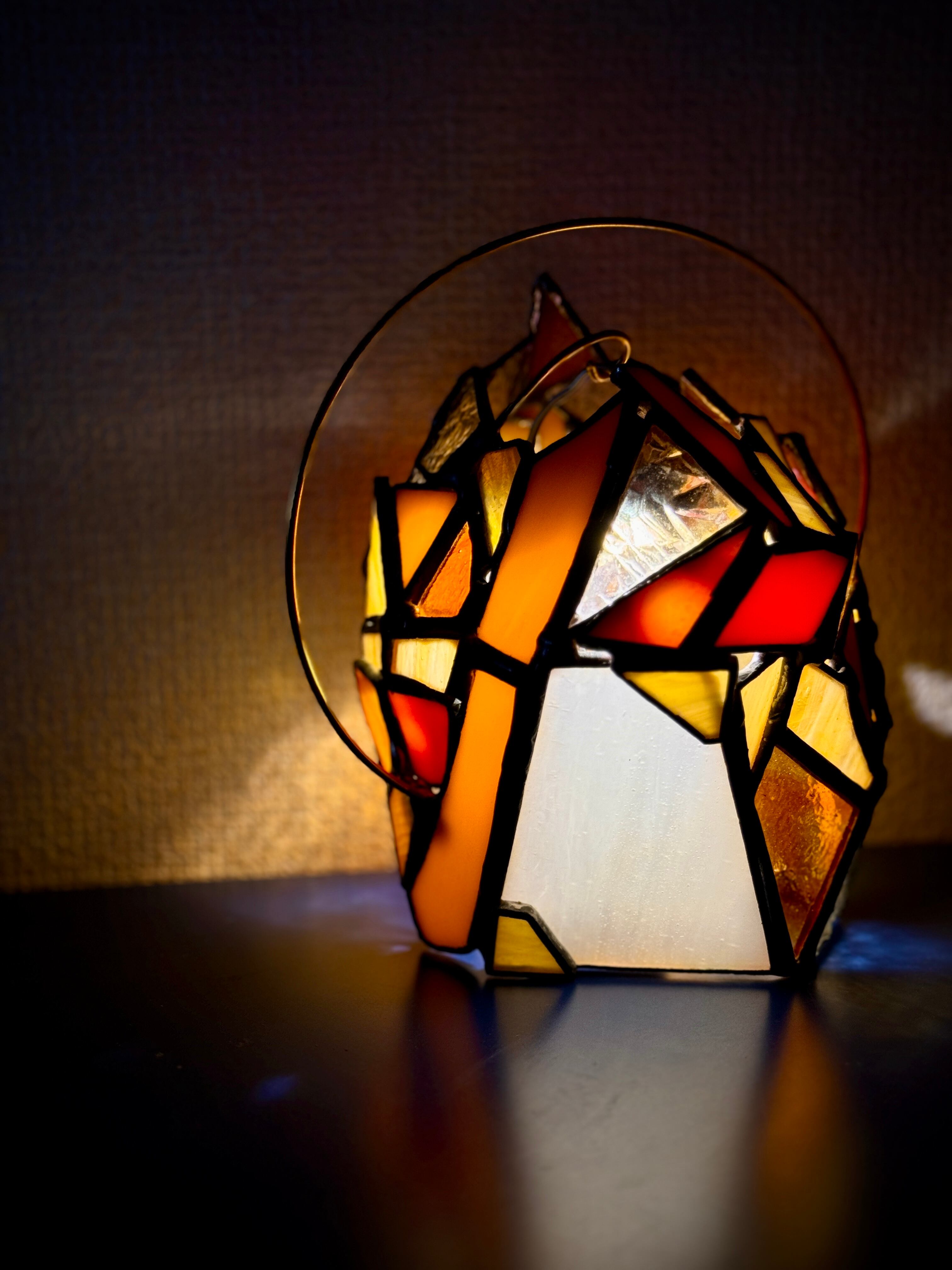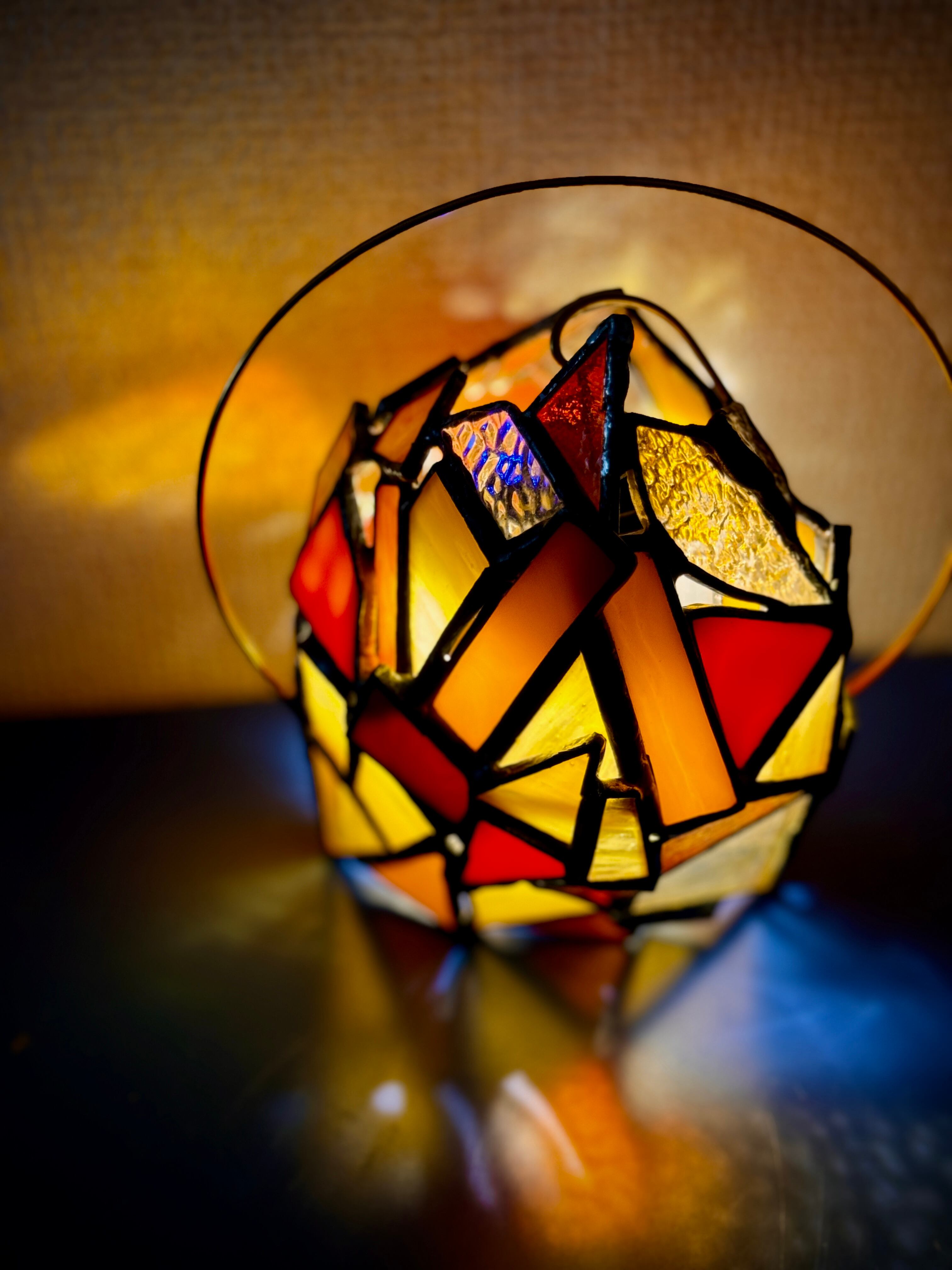 グレープフルーツくらいのサイズ感のステンドグラスシェードです。