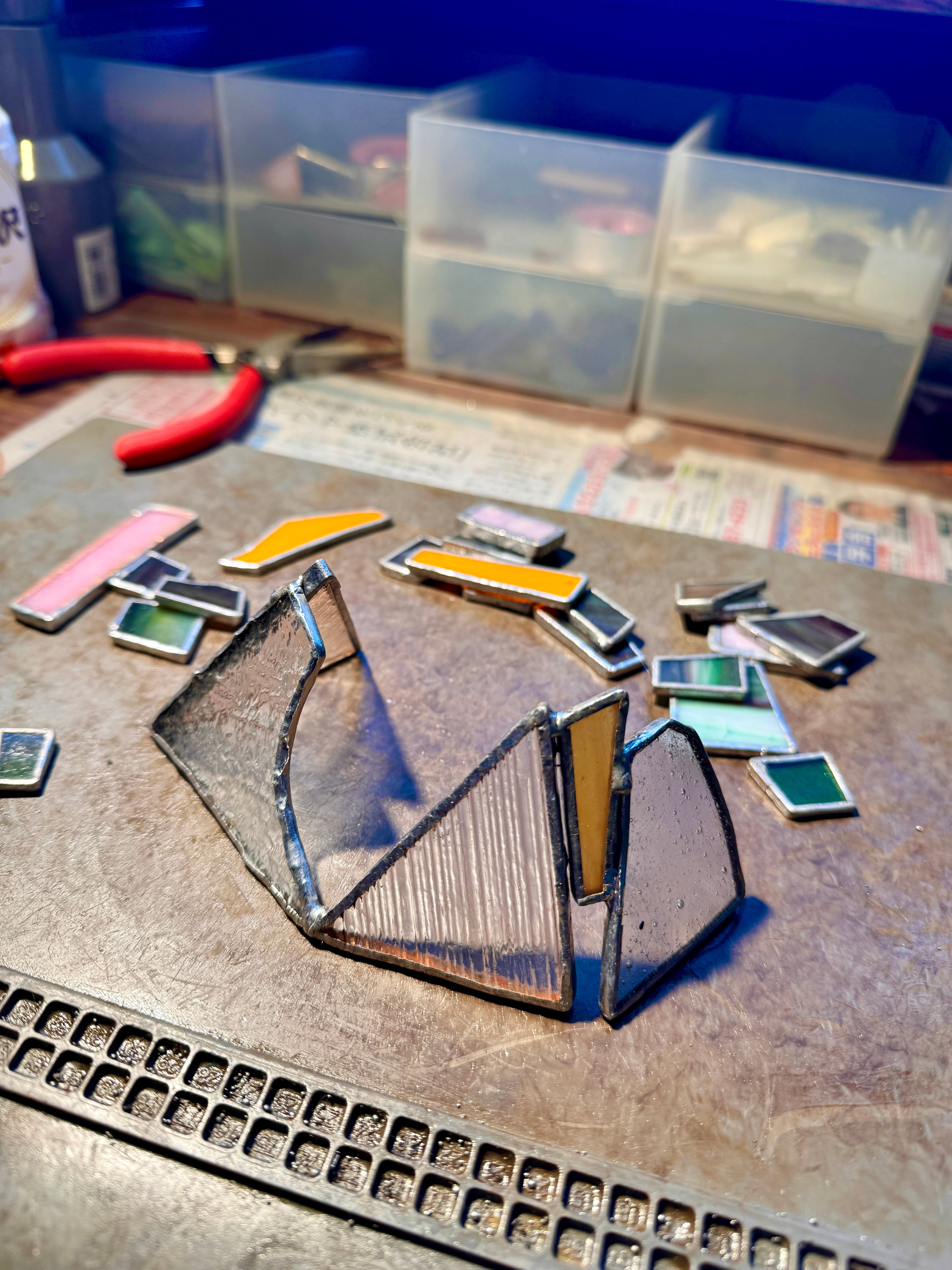ステンドグラスは、ステンドグラス専用のハンダを使って制作しております。