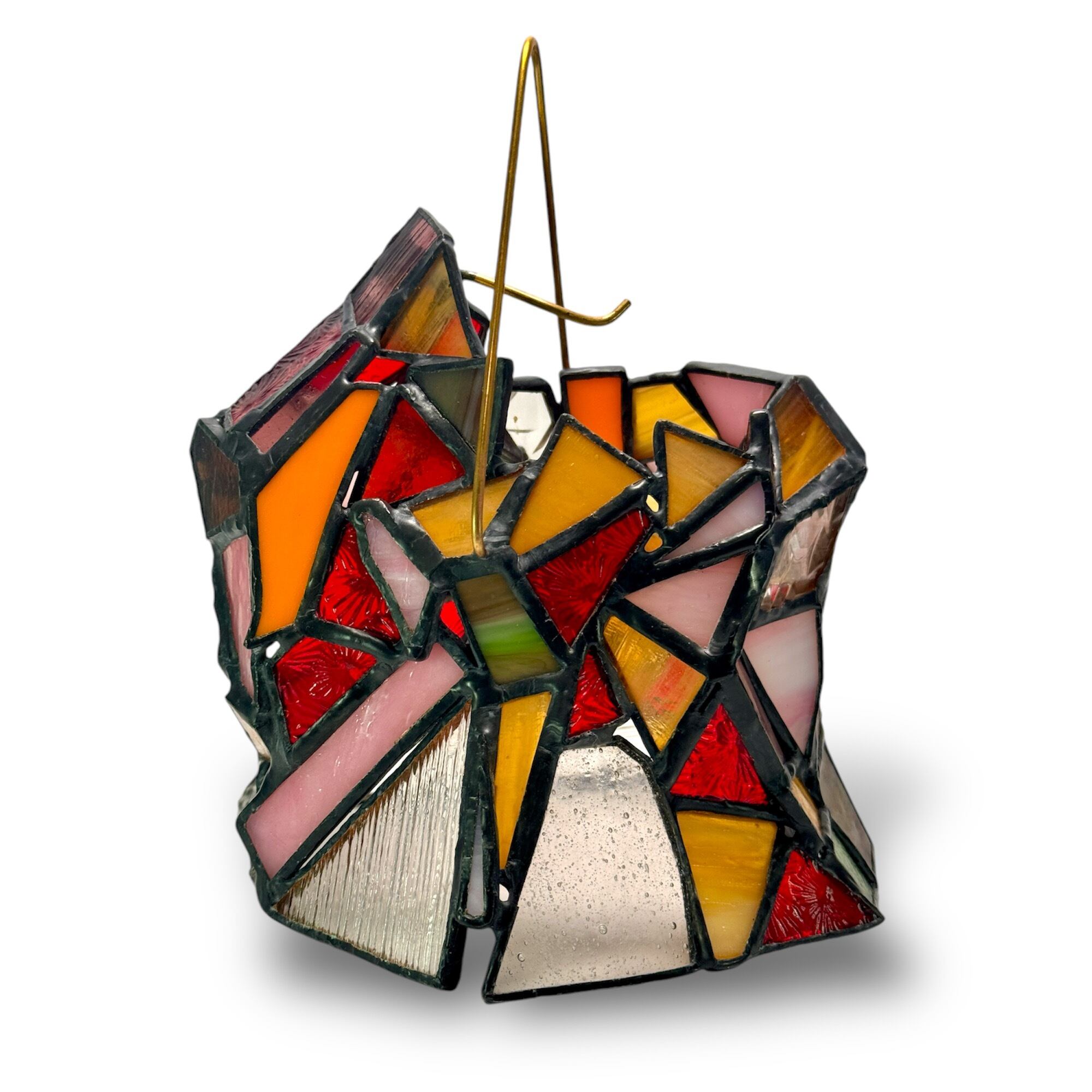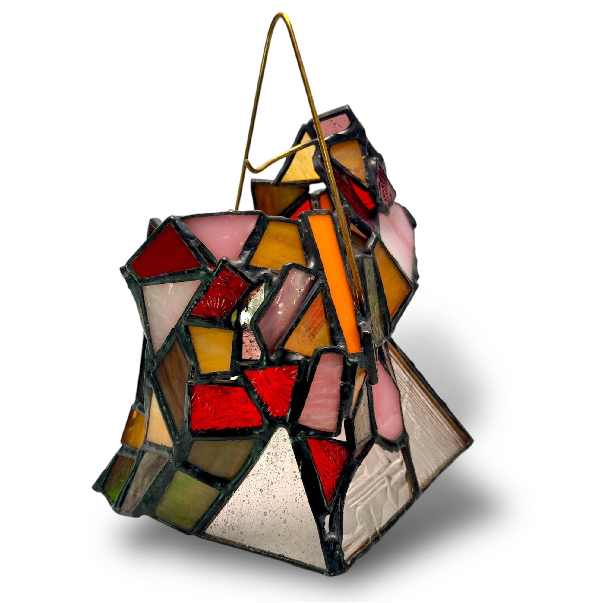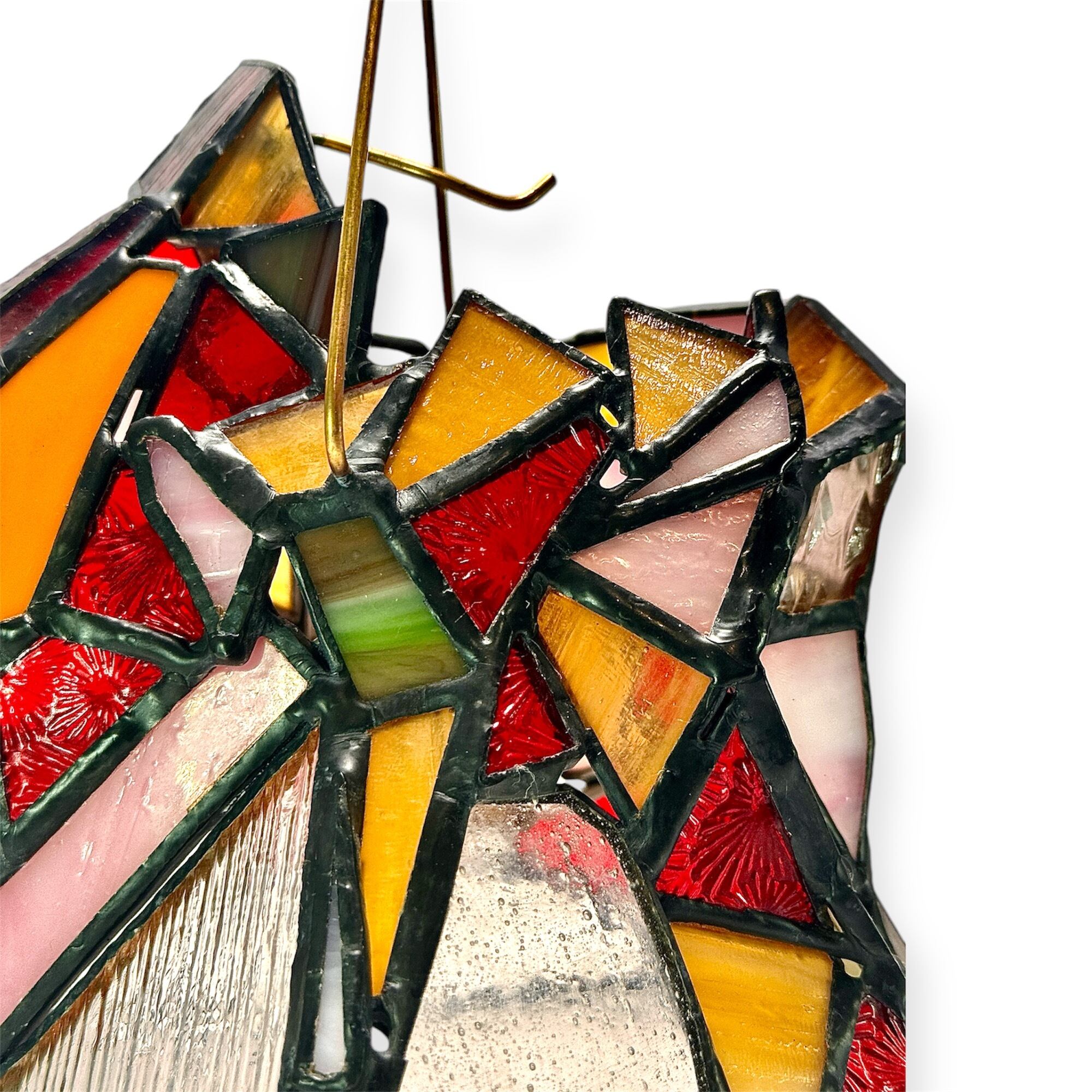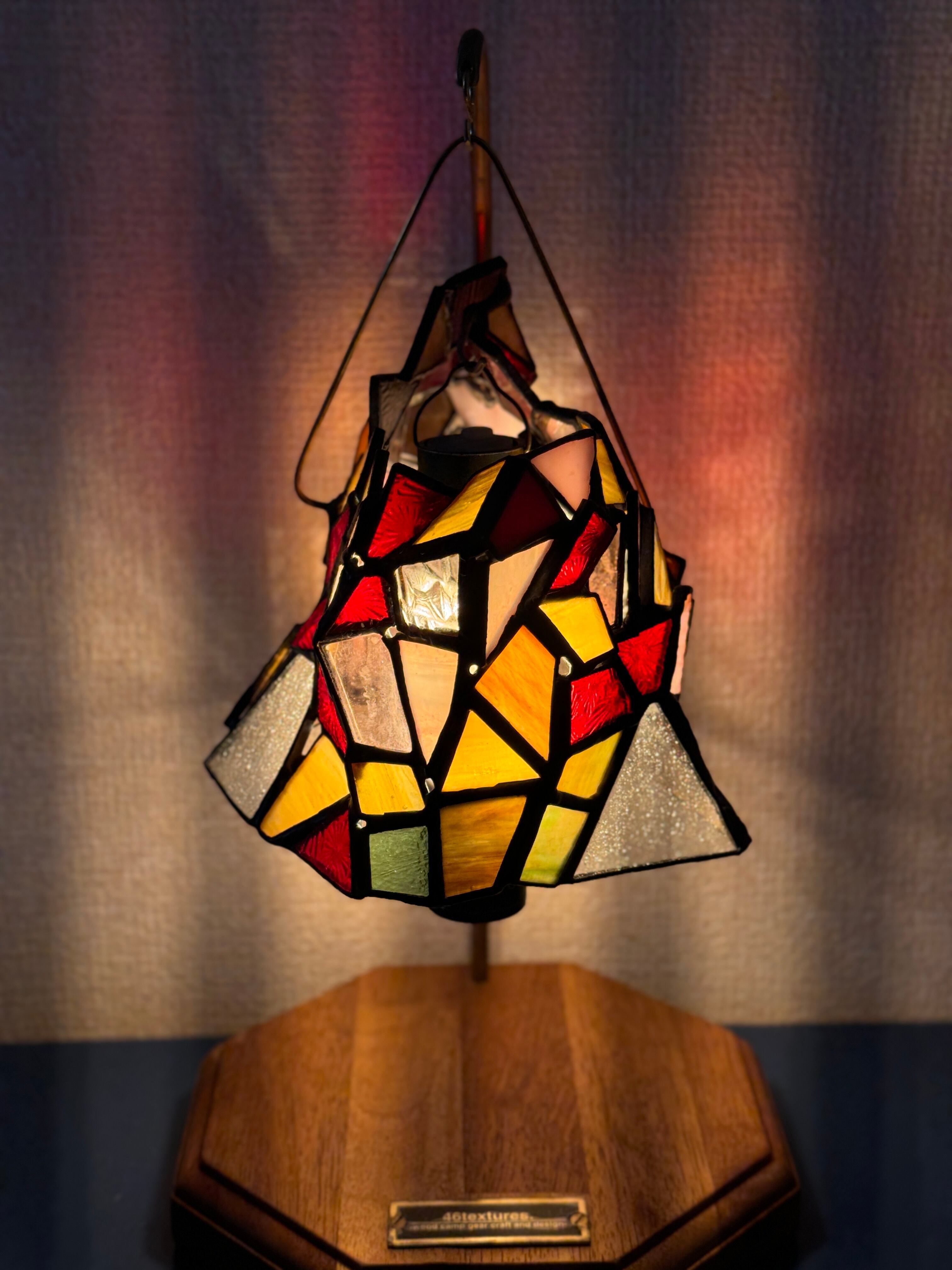 それならと、ザ・ステンドグラスという感じでハンダも黒のパティーナで力強く仕上げました。はんなり灯る和な雰囲気のシェードをぜひ優しい夜に灯してみてください。