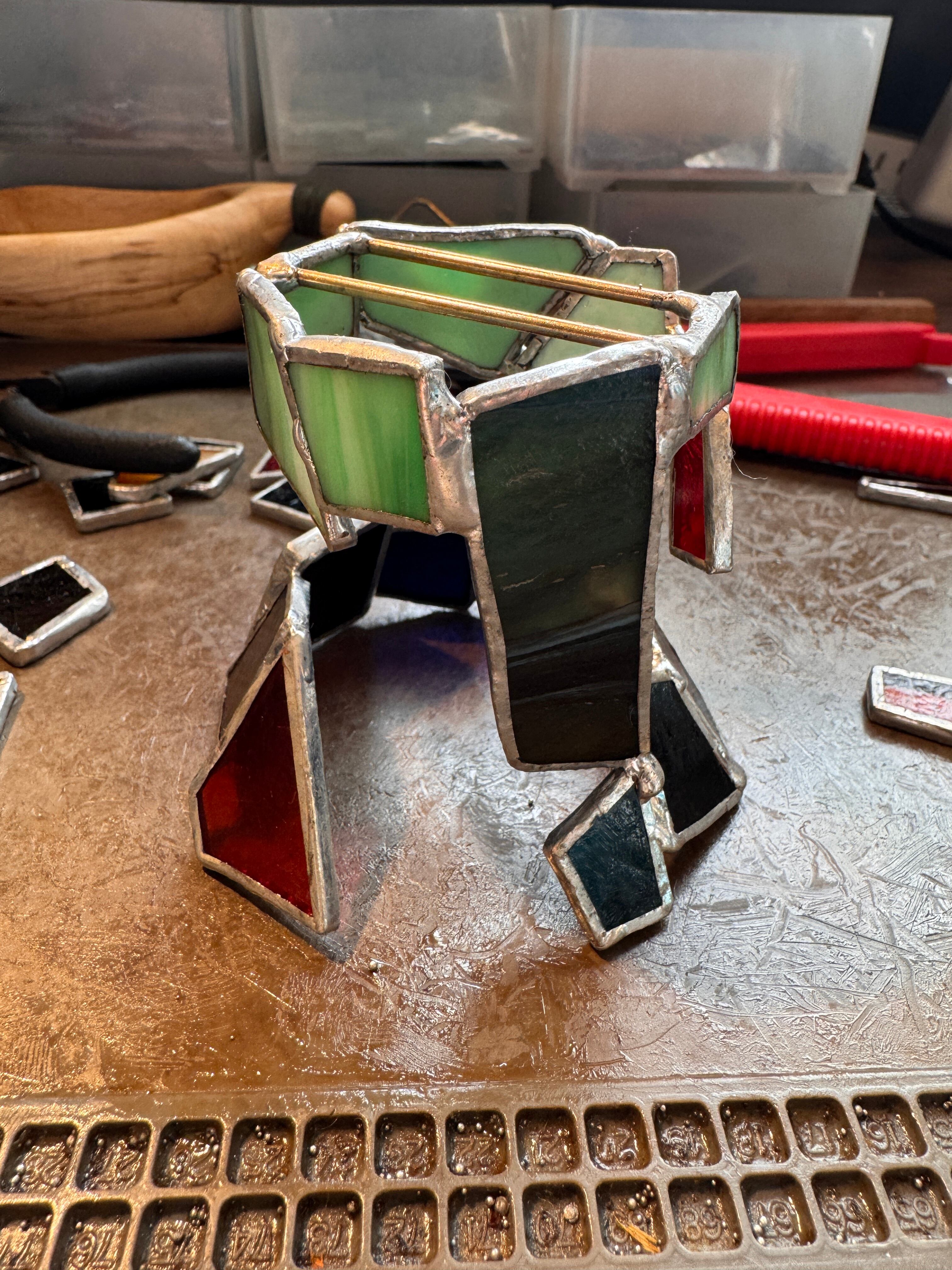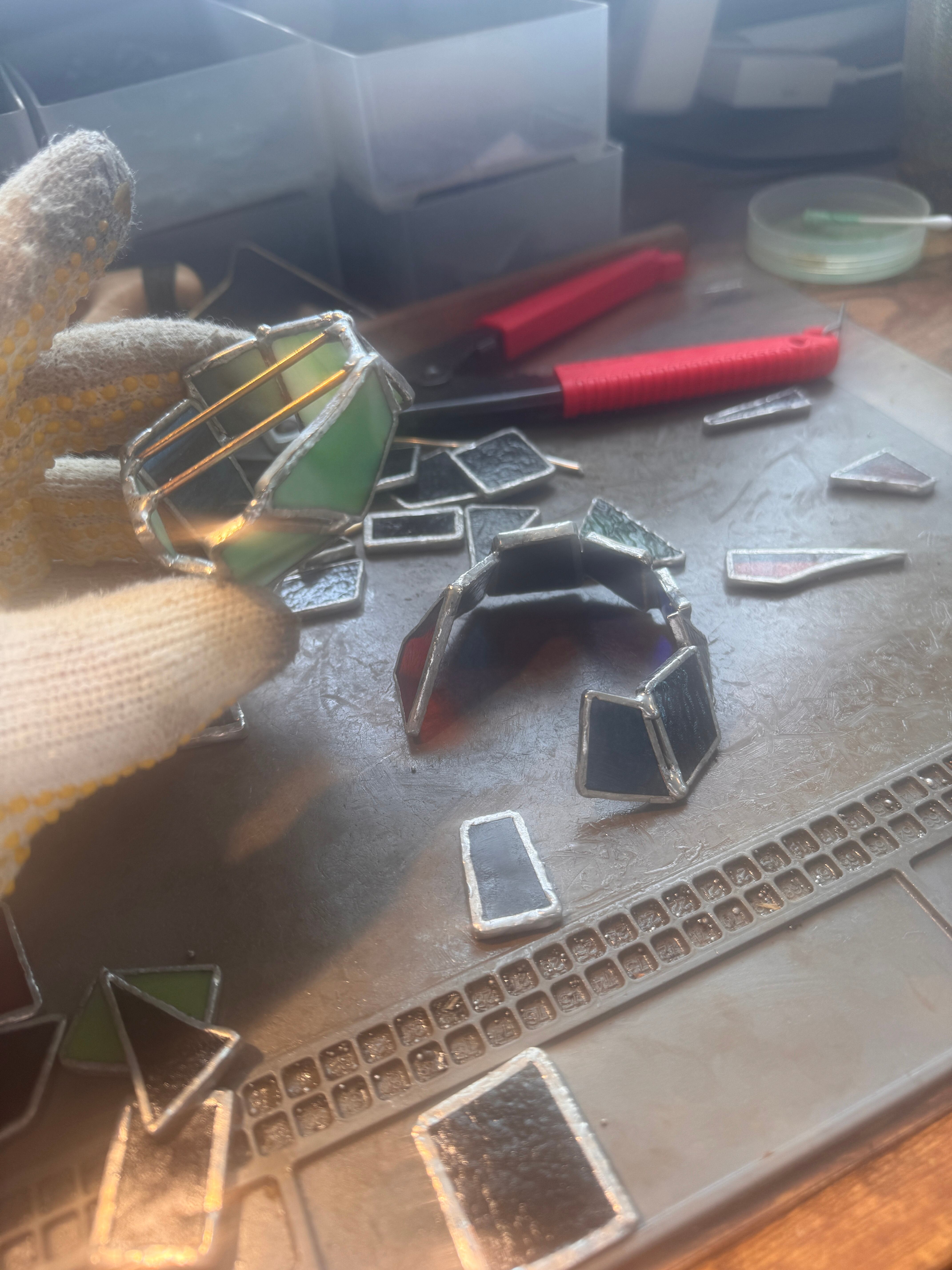 ステンドグラスは、ステンドグラス専用のハンダを使って制作しております。