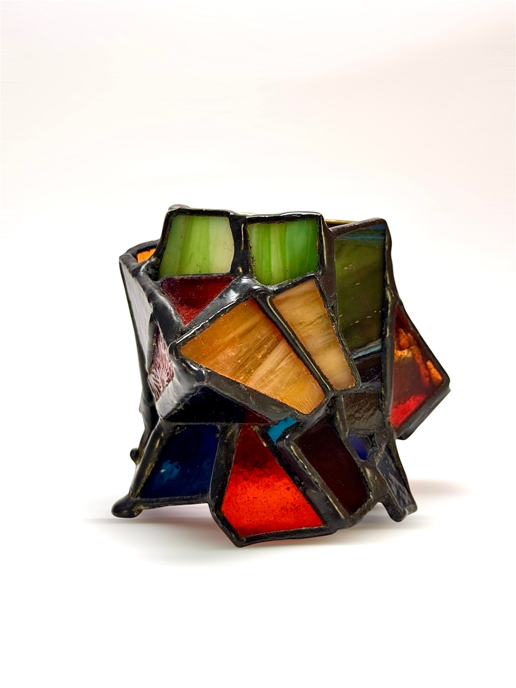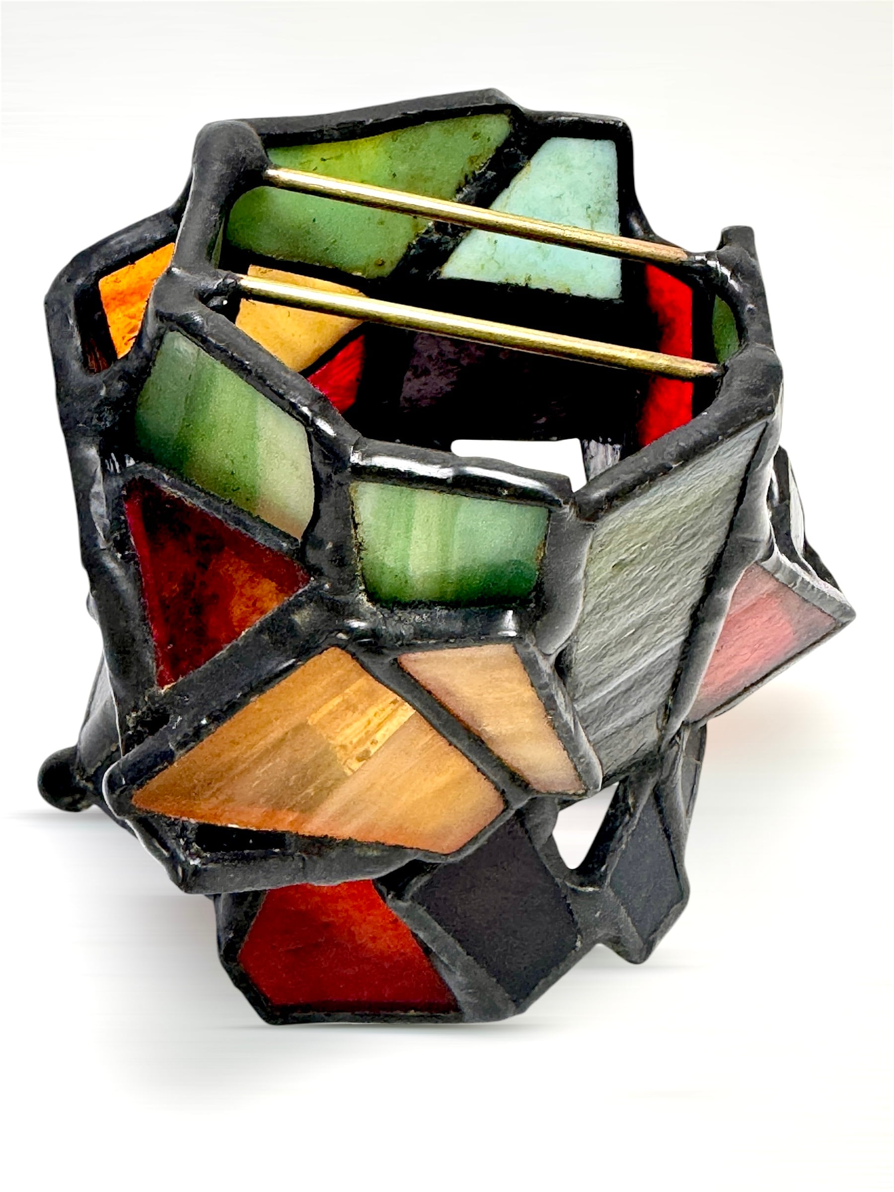 ハンダ部分は時間の経過と共に色が褪せてきます。艶出し・錆止めも含め、専用のポリワックス(jujo ステンドグラス仕上げ用ポリワックス)で定期的にメンテナンスをお願いいたします。